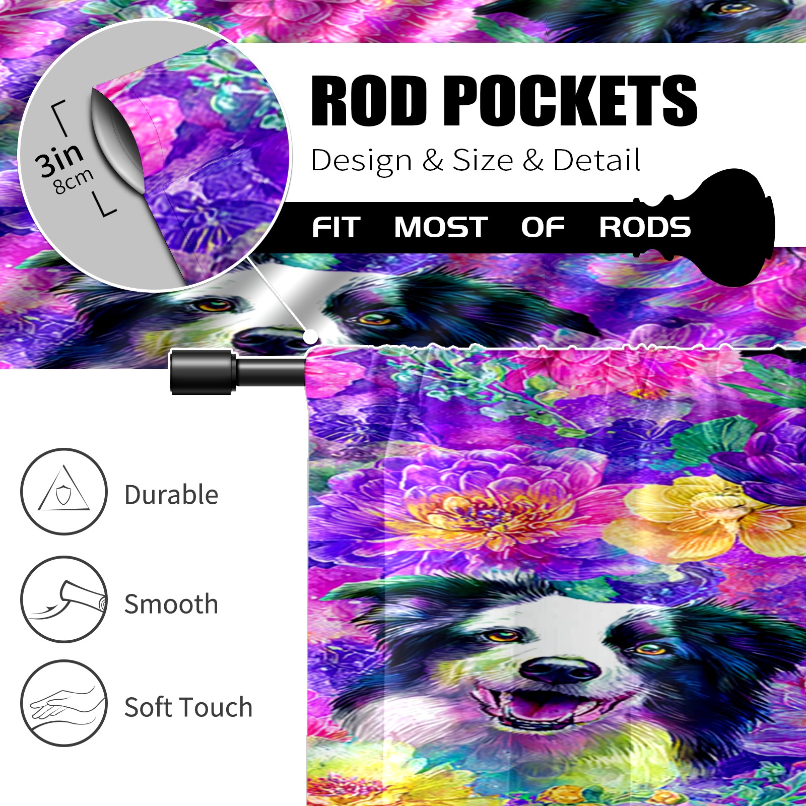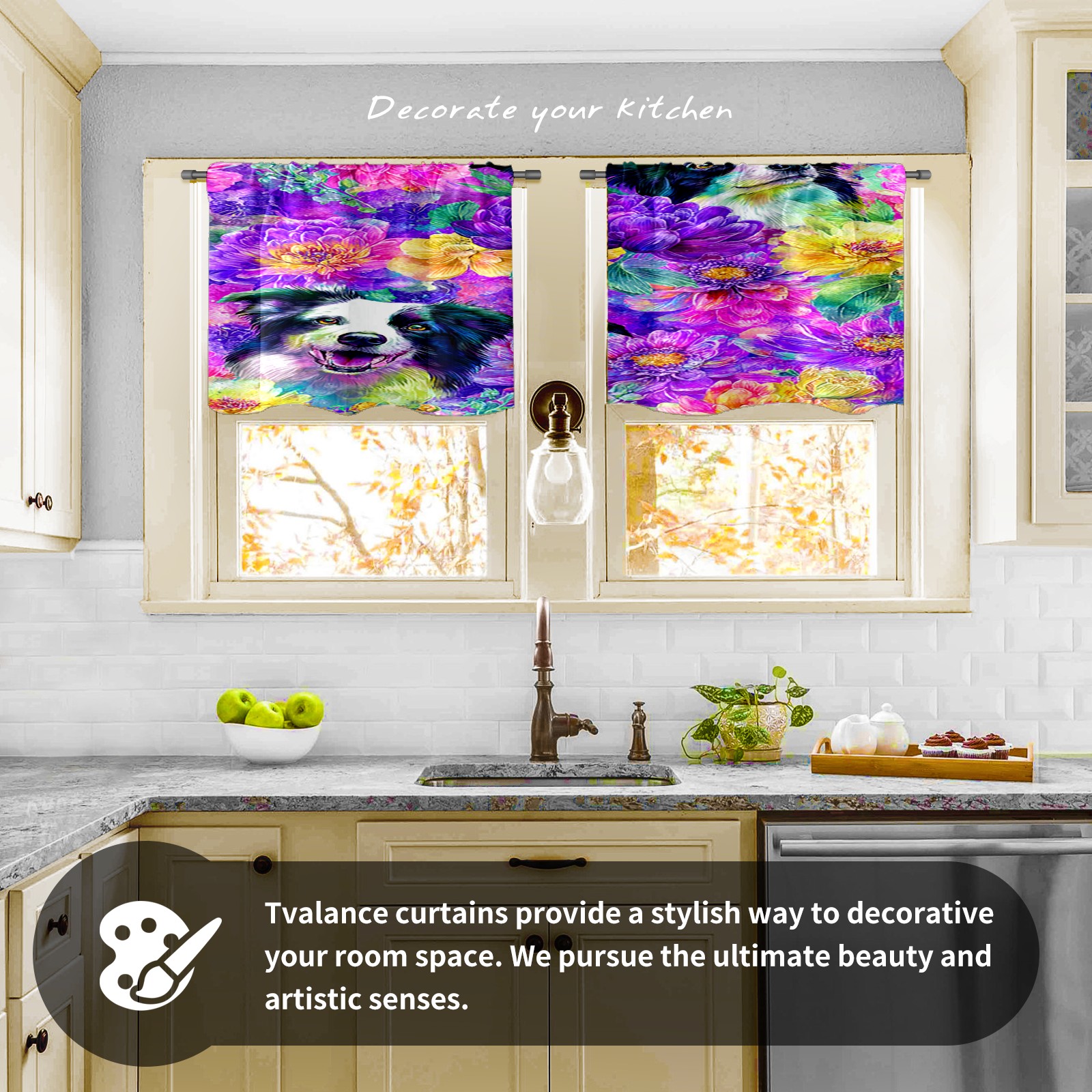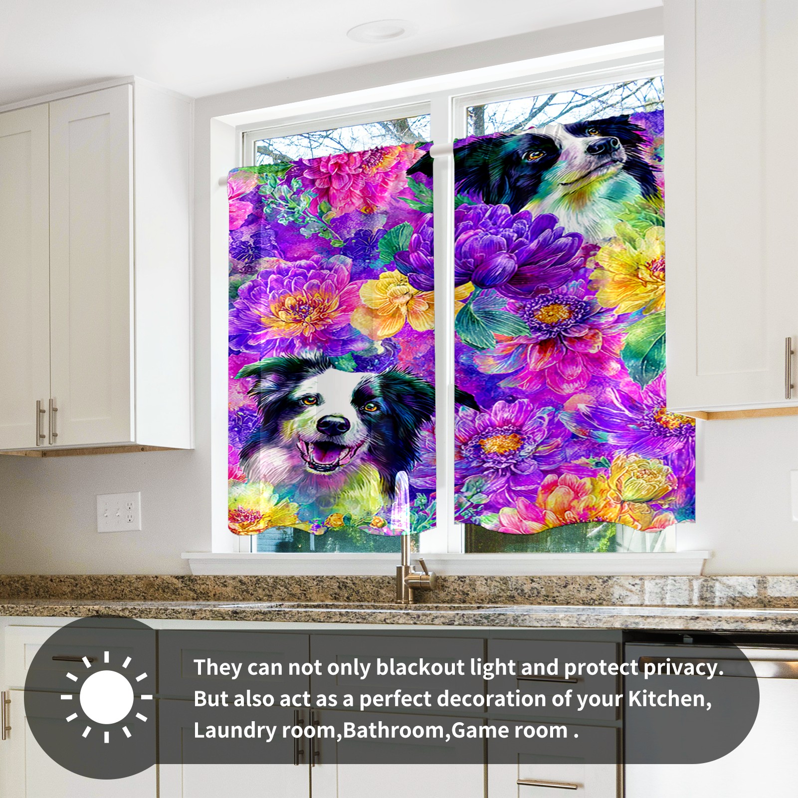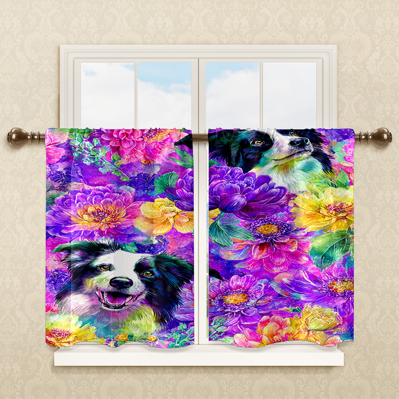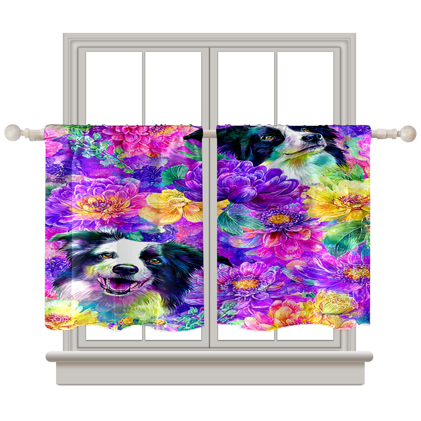 Шторы-панно для дома, декоративные драпировки для гостиной и спальни, легкие и прочные, Dog Flower Multicolor