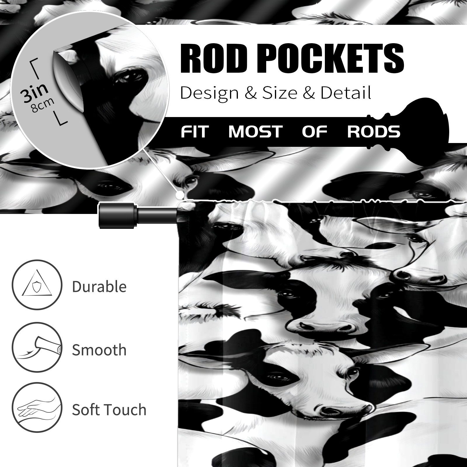 Шторы-панно для дома, декоративные драпировки для гостиной и спальни, легкие и прочные, Trendy Black White Cow