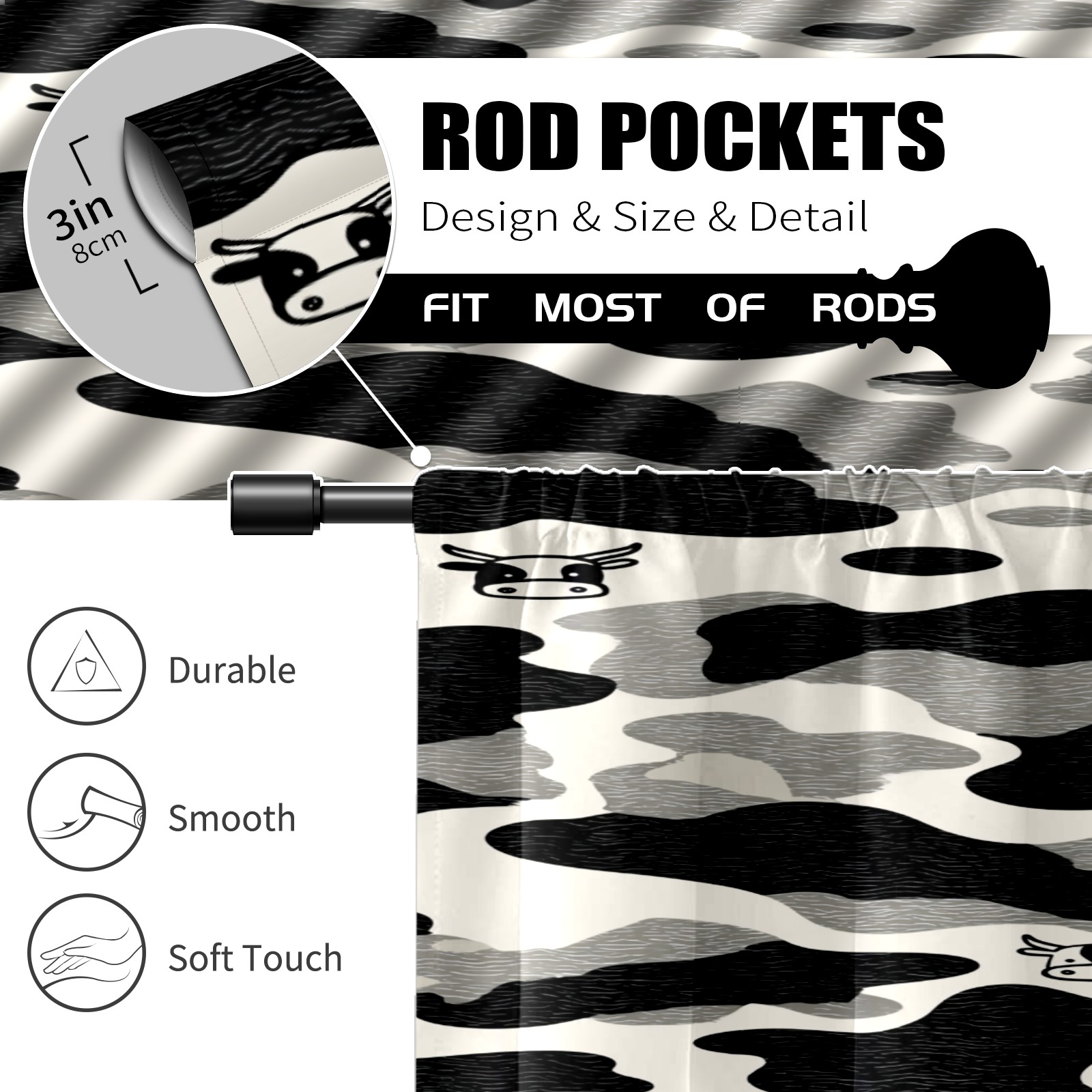 Шторы-панно для дома, декоративные драпировки для гостиной и спальни, легкие и прочные, Stylish Camo Cow