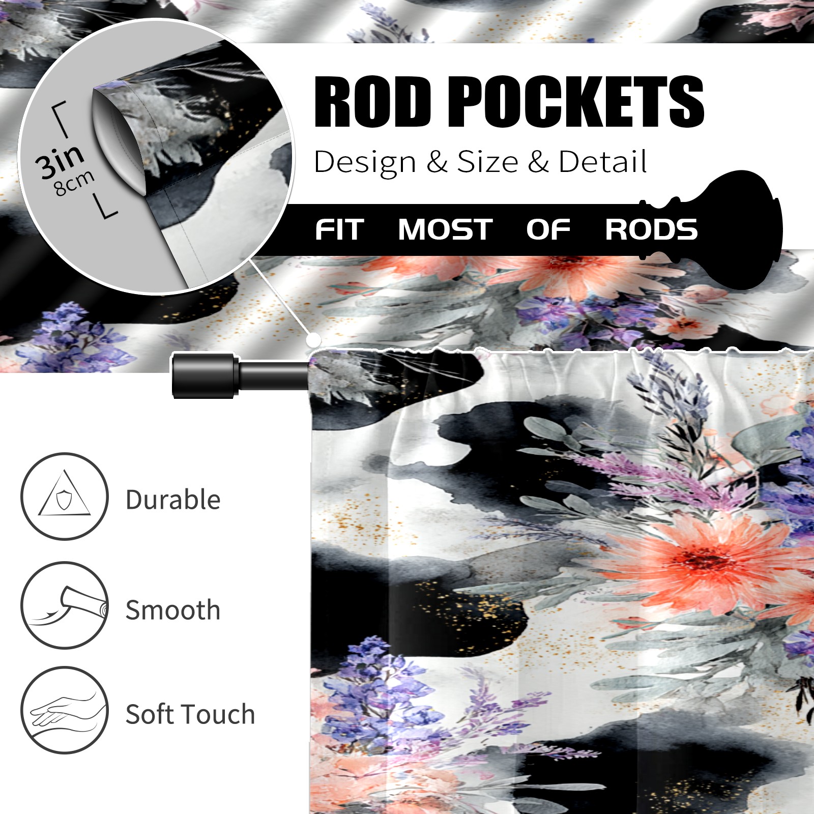 Шторы-панно для дома, декоративные драпировки для гостиной и спальни, легкие и прочные, CatFlower Black