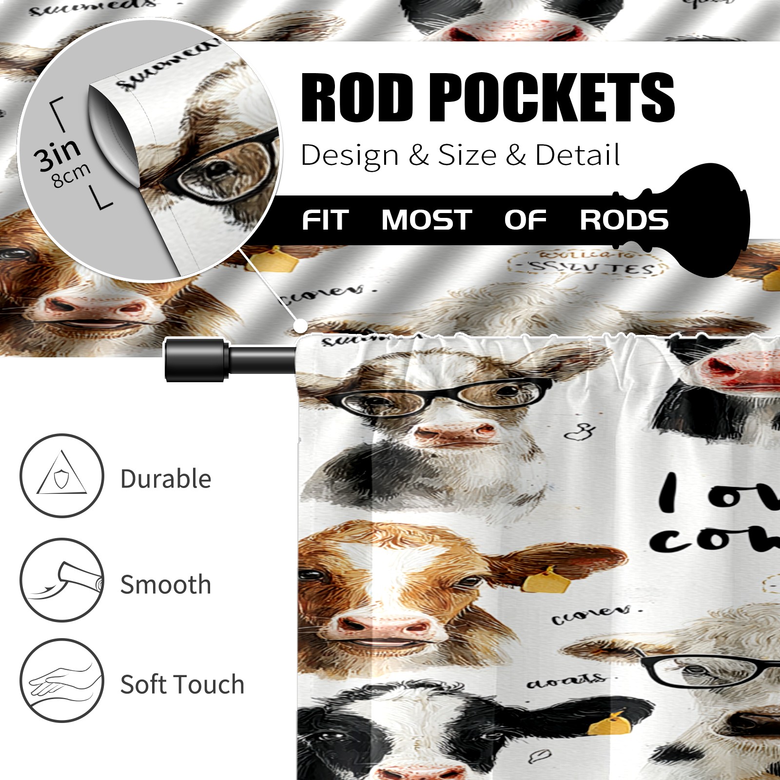 Шторы-панно для дома, декоративные драпировки для гостиной и спальни, легкие и прочные, Cute Cow White