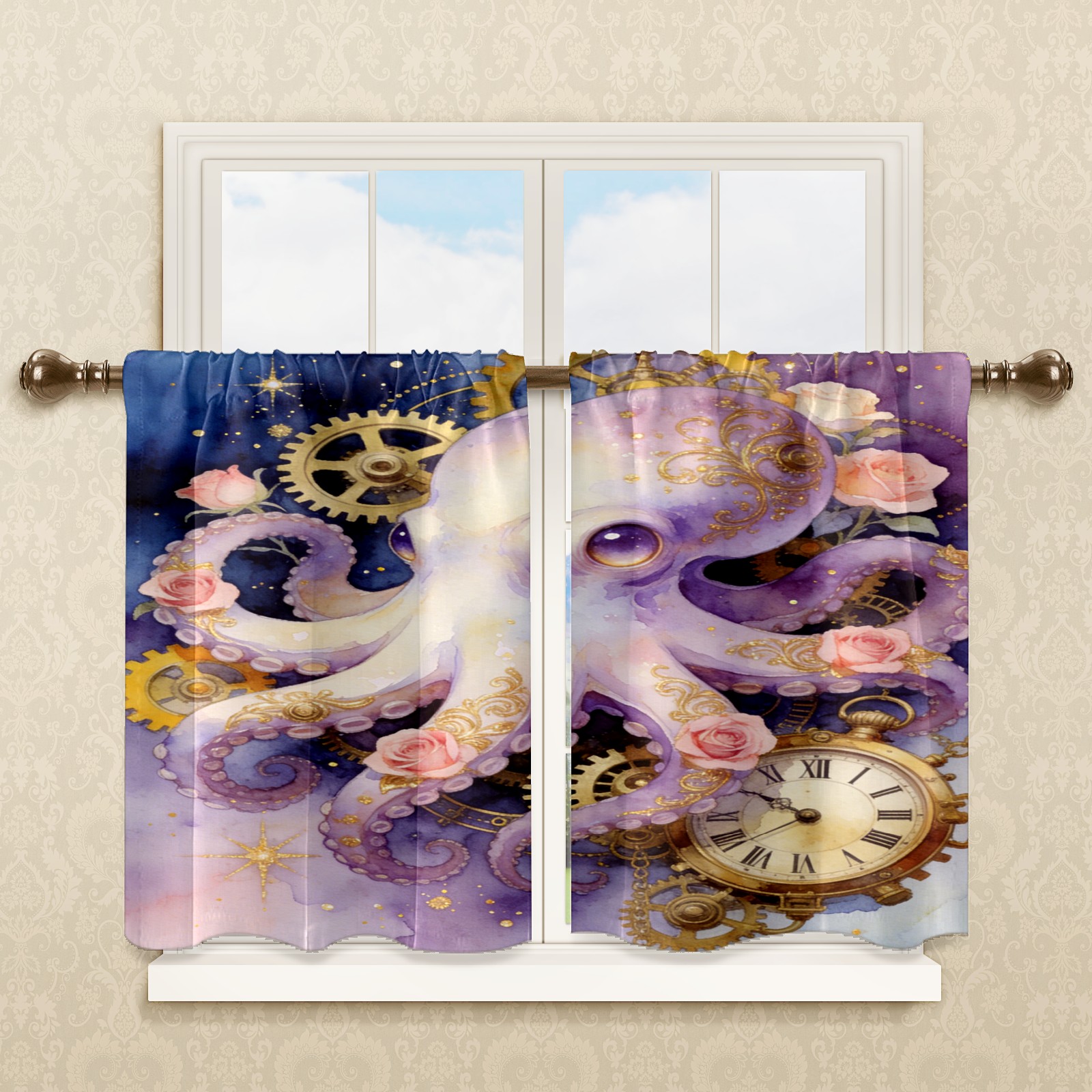 Шторы-панно для дома, декоративные драпировки для гостиной и спальни, легкие и прочные, Steampunk Octopus 1