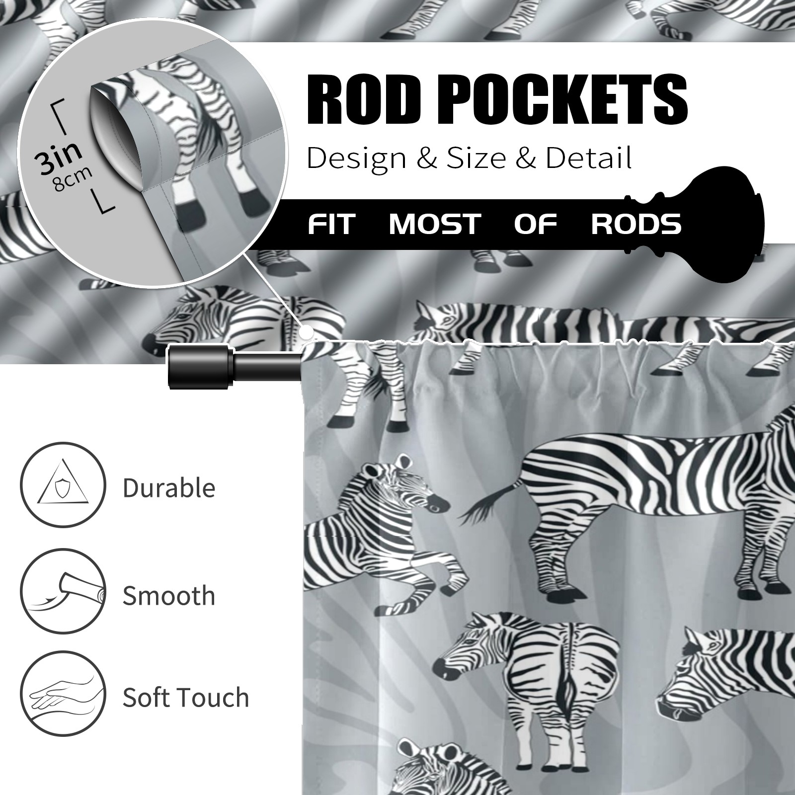 Шторы-панно для дома, декоративные драпировки для гостиной и спальни, легкие и прочные, Gray Zebra