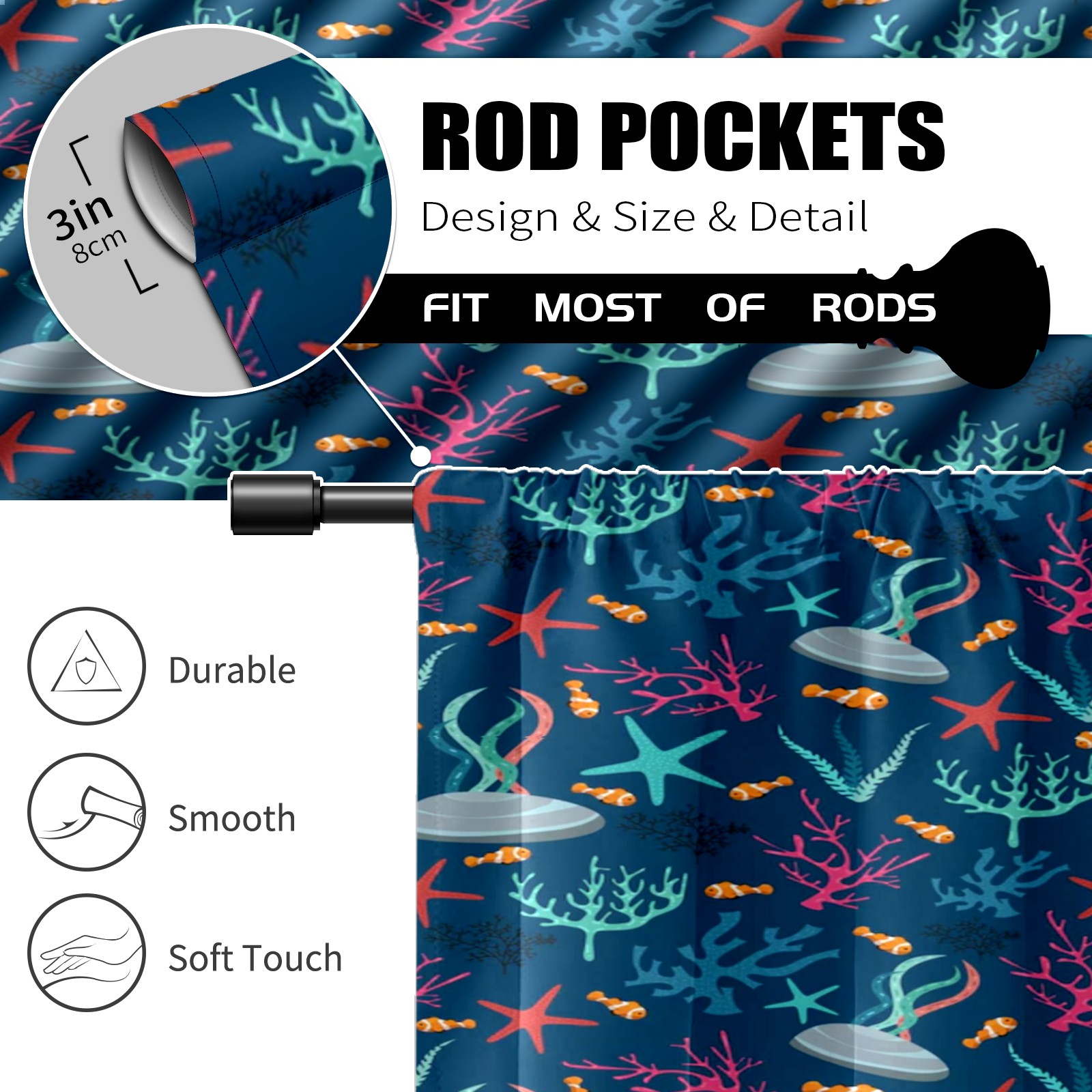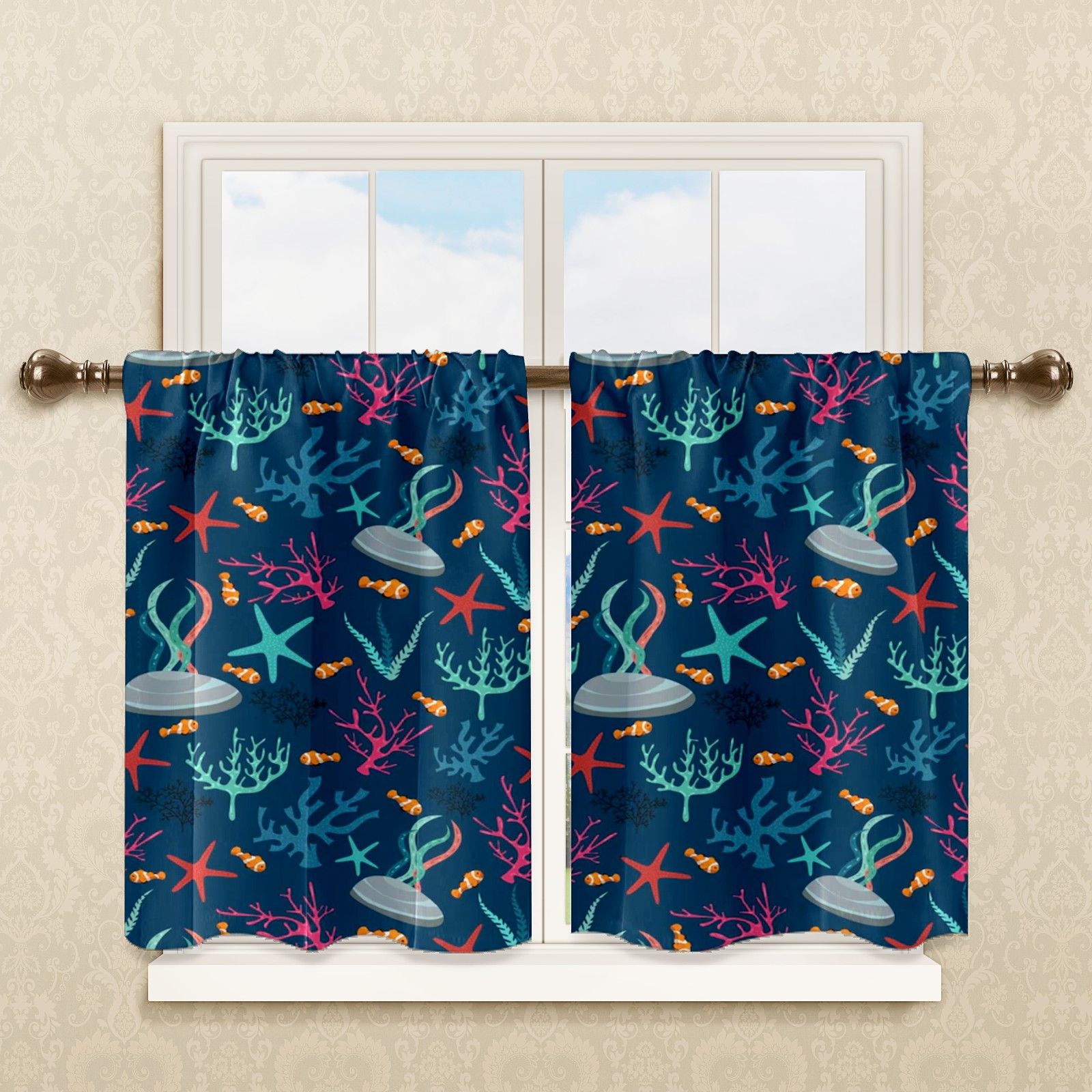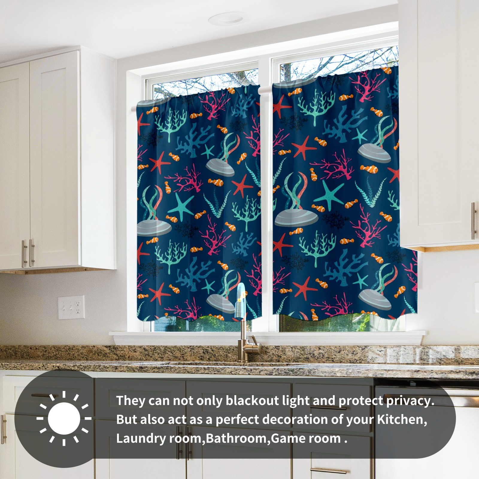 Шторы-панно для дома, декоративные драпировки для гостиной и спальни, легкие и прочные, Dark Blue Ocean Fishes