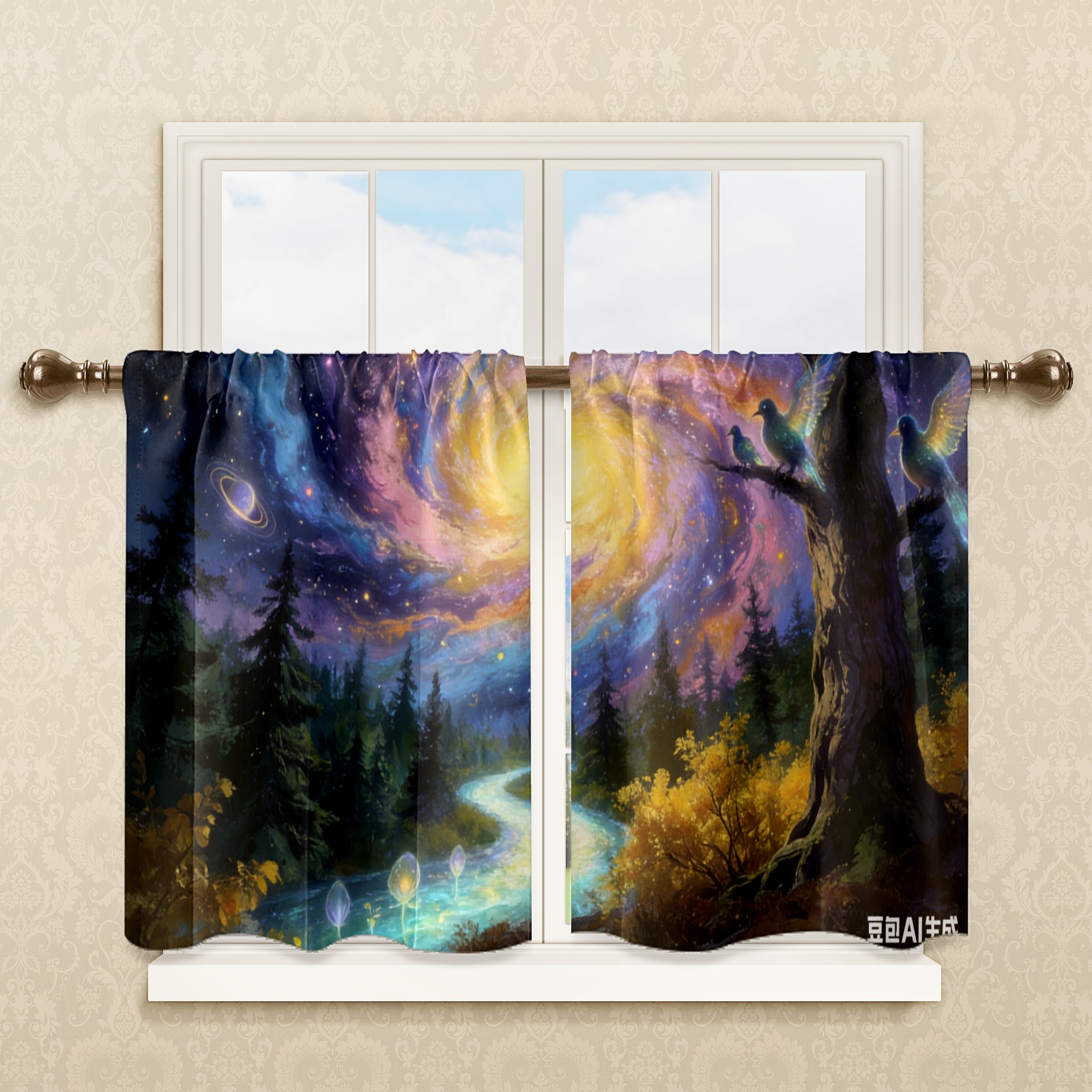 Шторы-панно для дома, декоративные драпировки для гостиной и спальни, легкие и прочные, Fantasy Starry Sky Forest