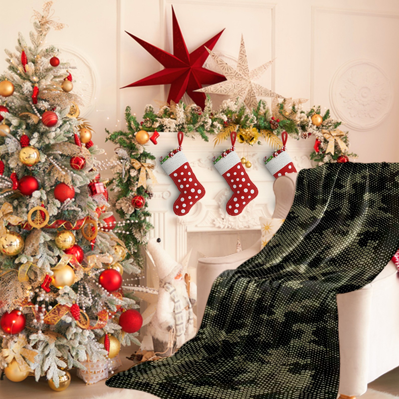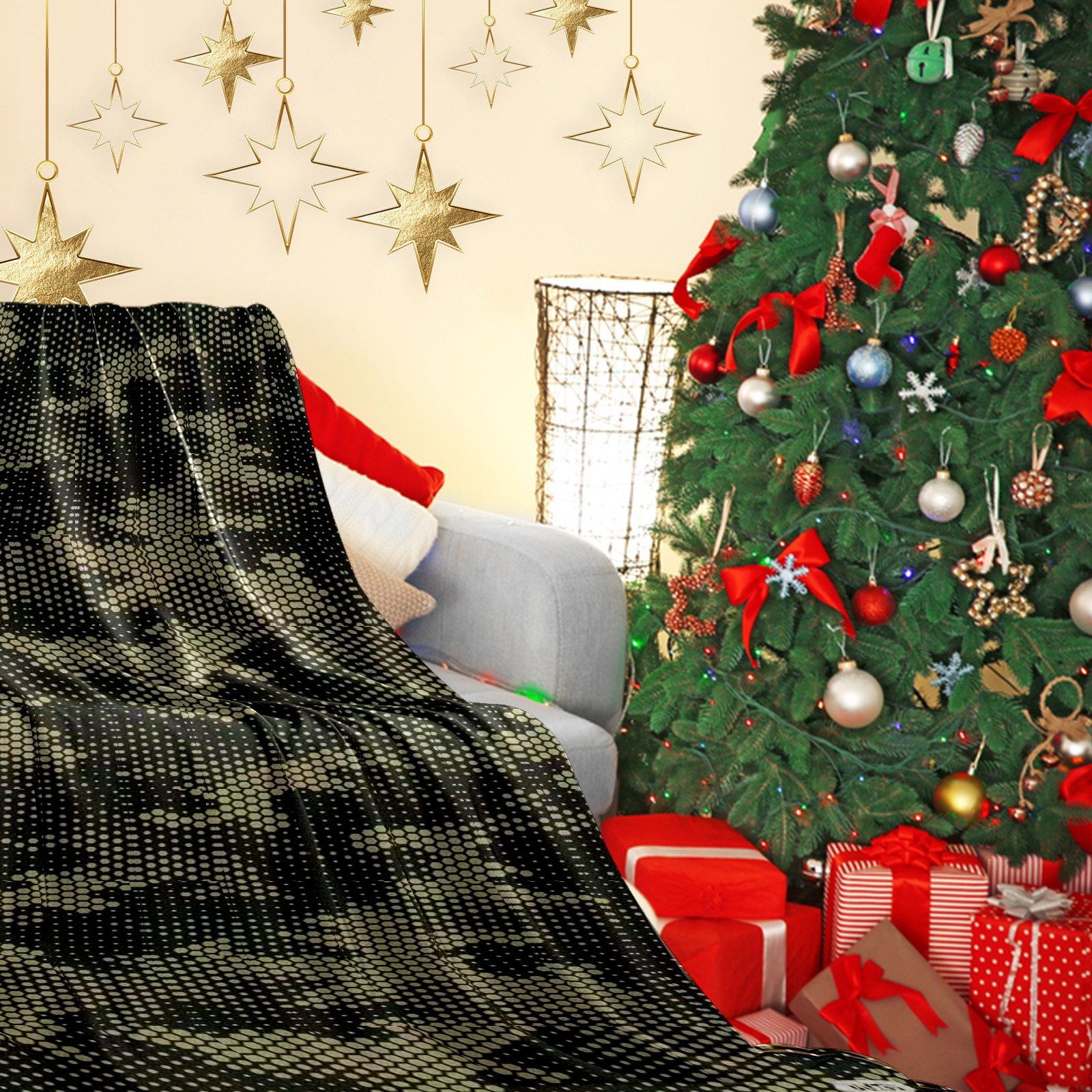 Премиальная фланелевая одеяло Camouflage Mosaic