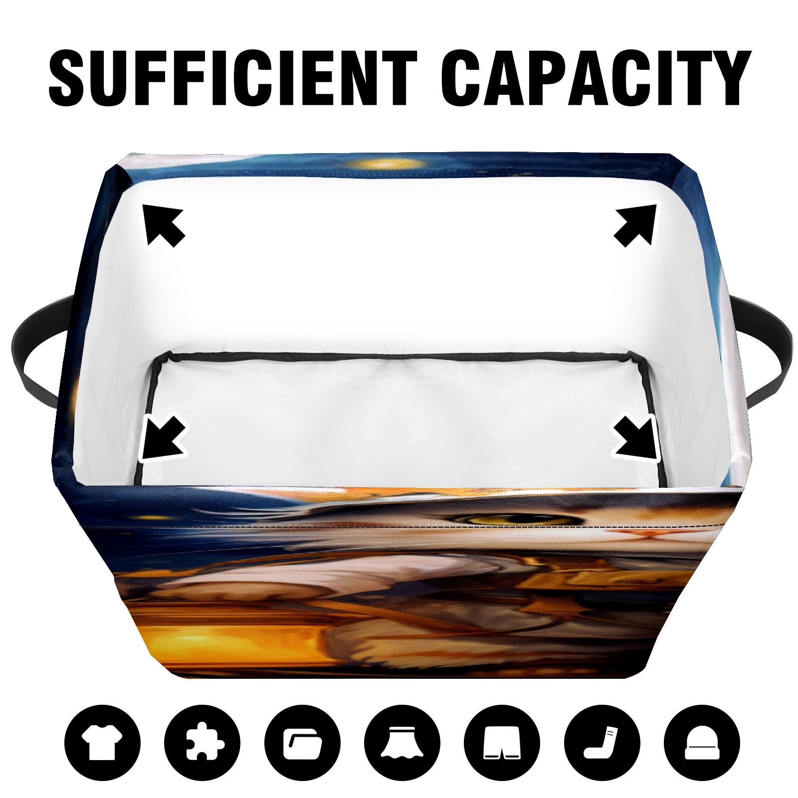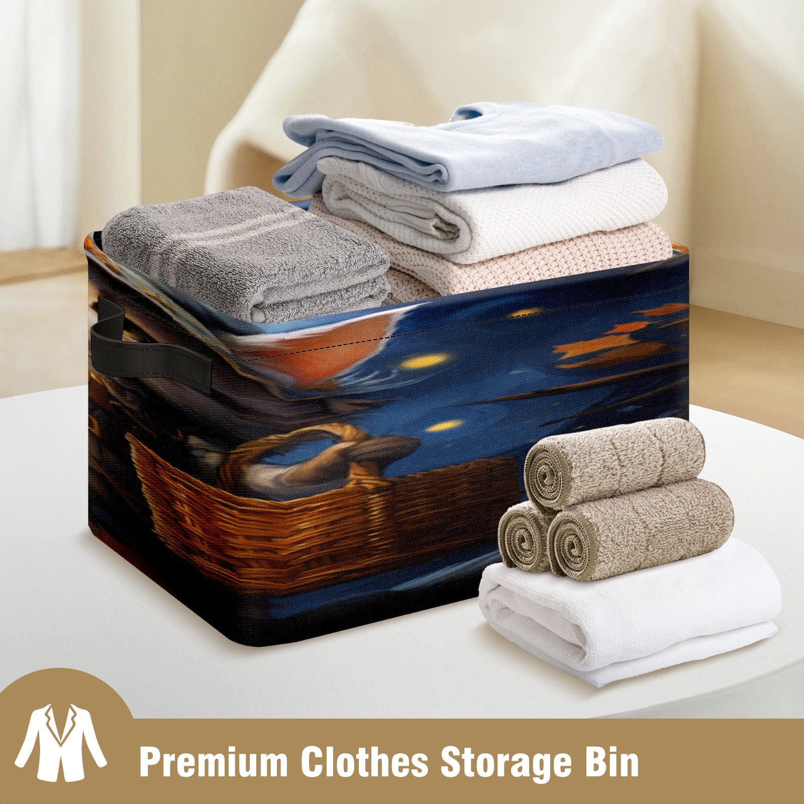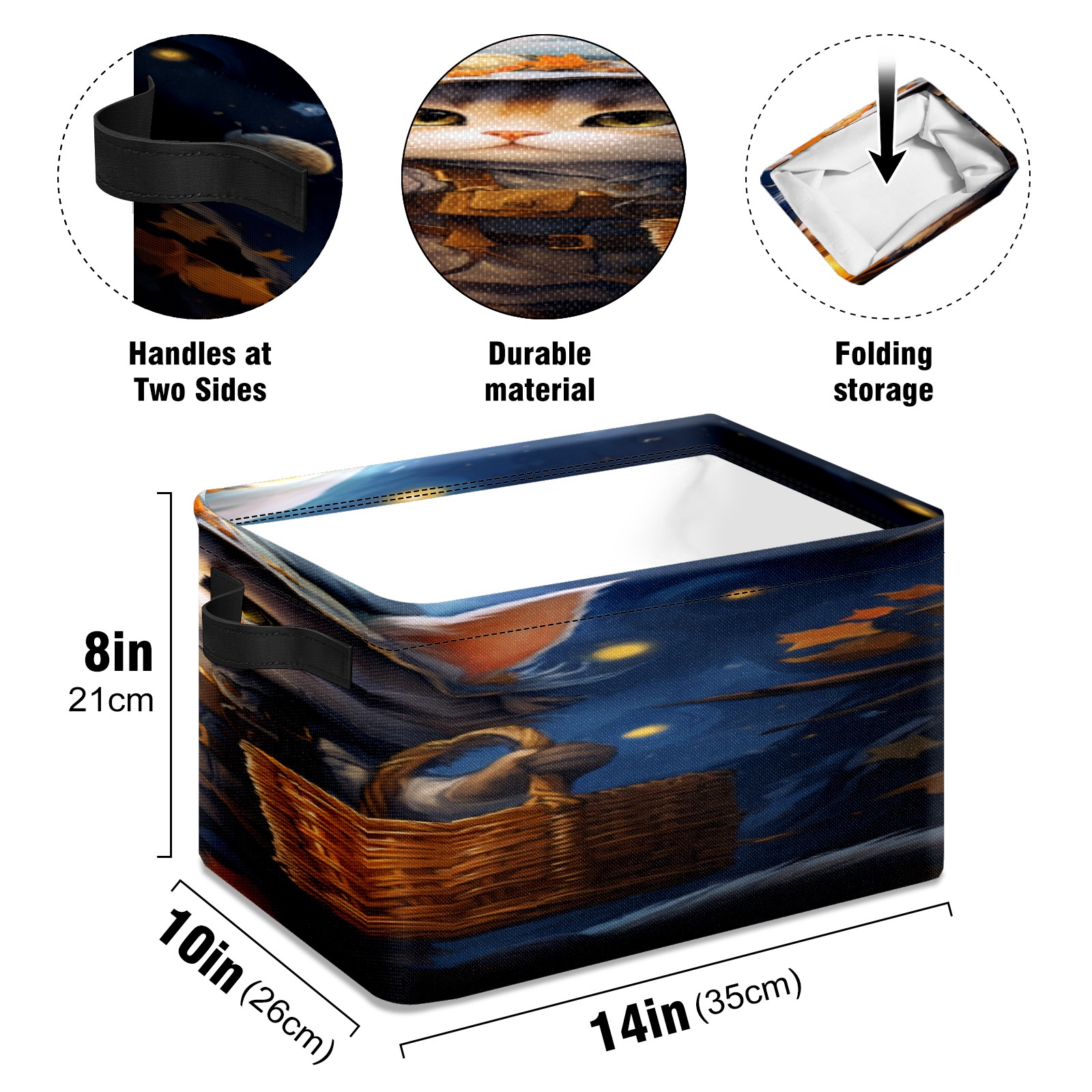 Collapsible 600D Oxford Storage Basket with Cartoon Cat Cute Kitten - Metal Frame 10"x14"x8" Reinforced Handles, Multi-Purpose Organizer