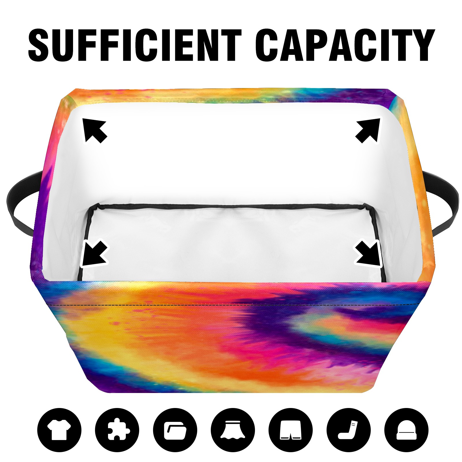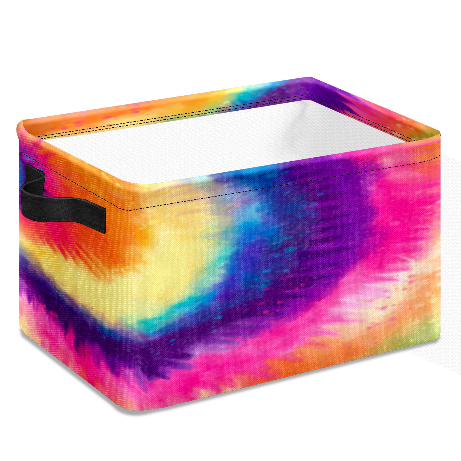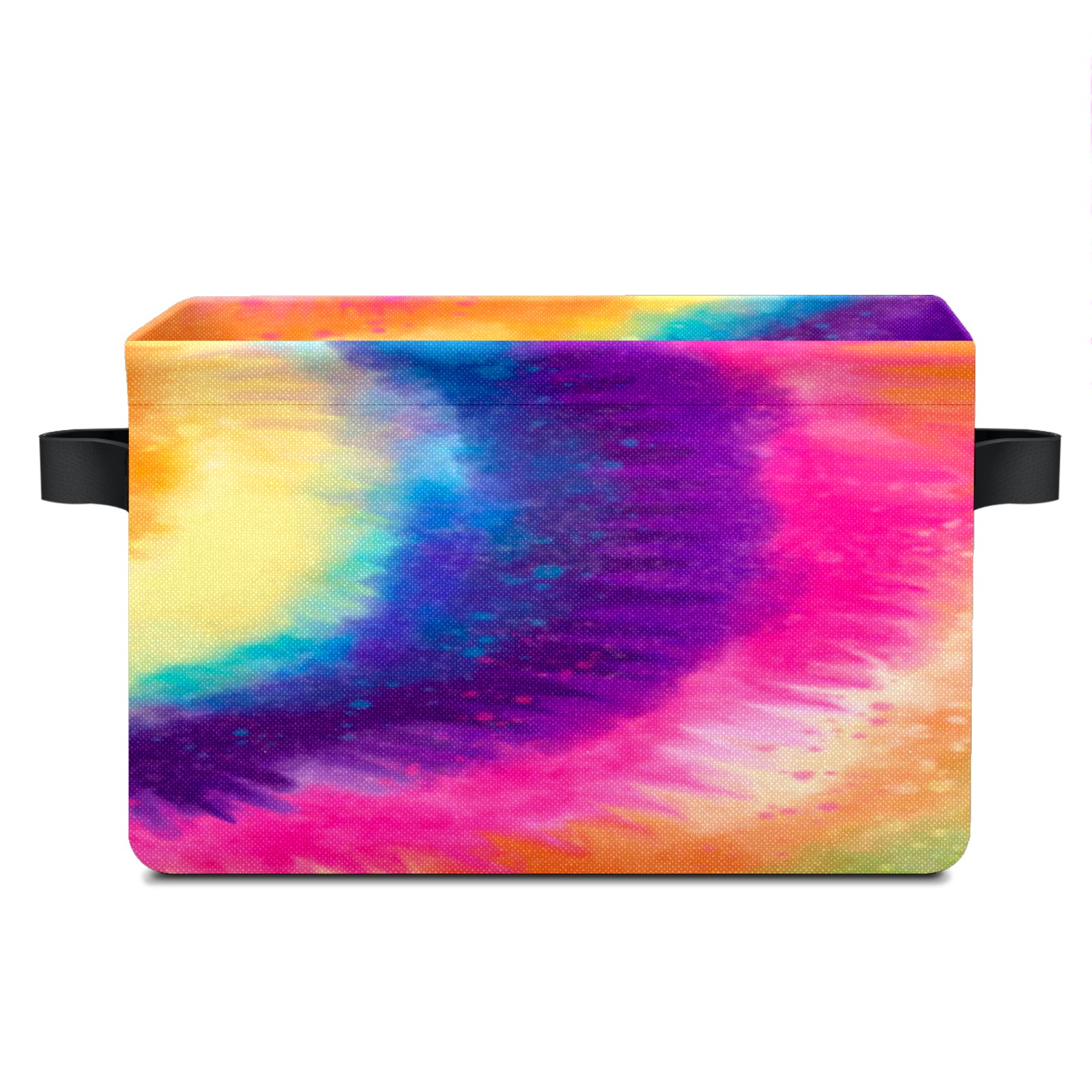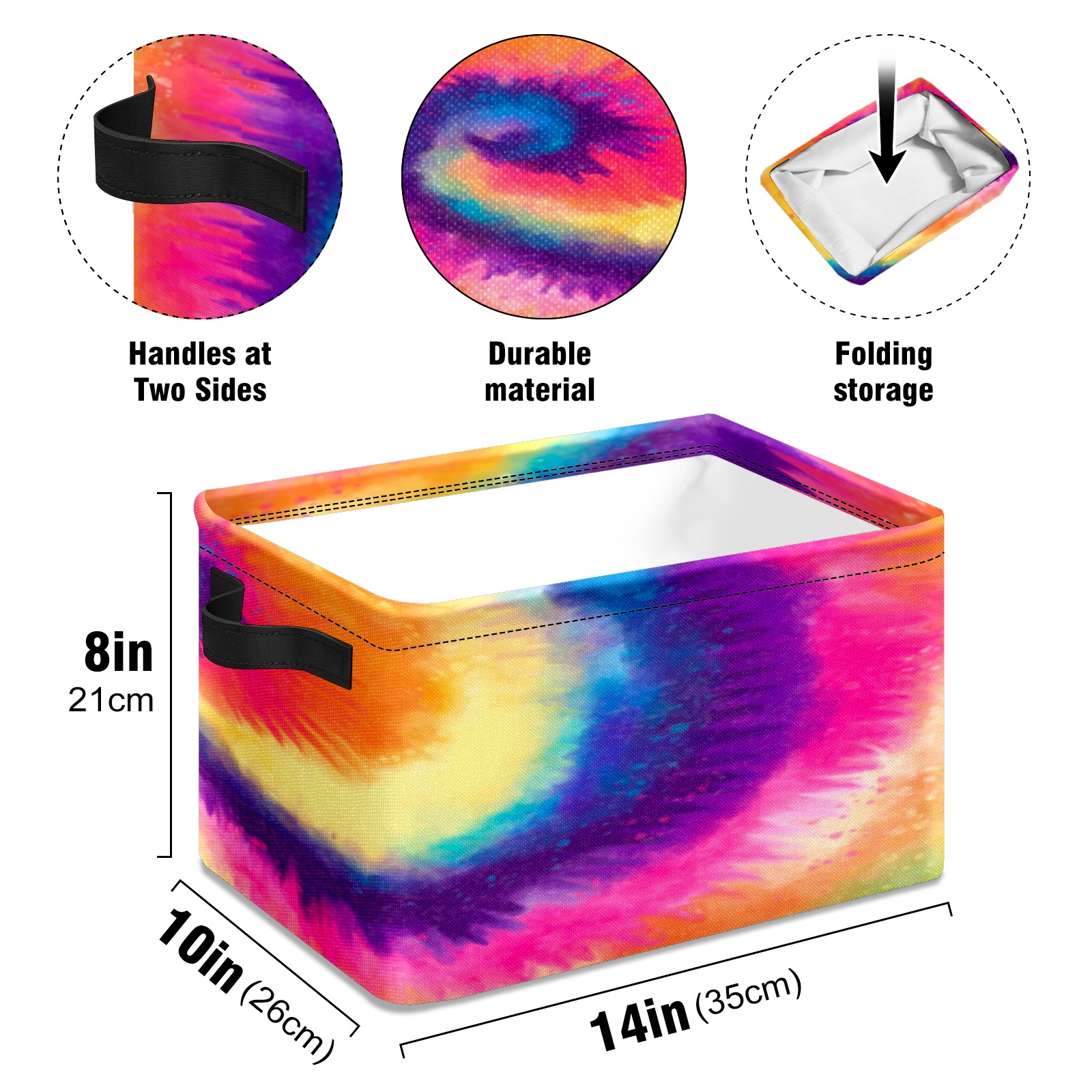 Collapsible 600D Oxford Storage Basket with Rainbow Tie Dye Style - Metal Frame 10"x14"x8" Reinforced Handles, Multi-Purpose Organizer