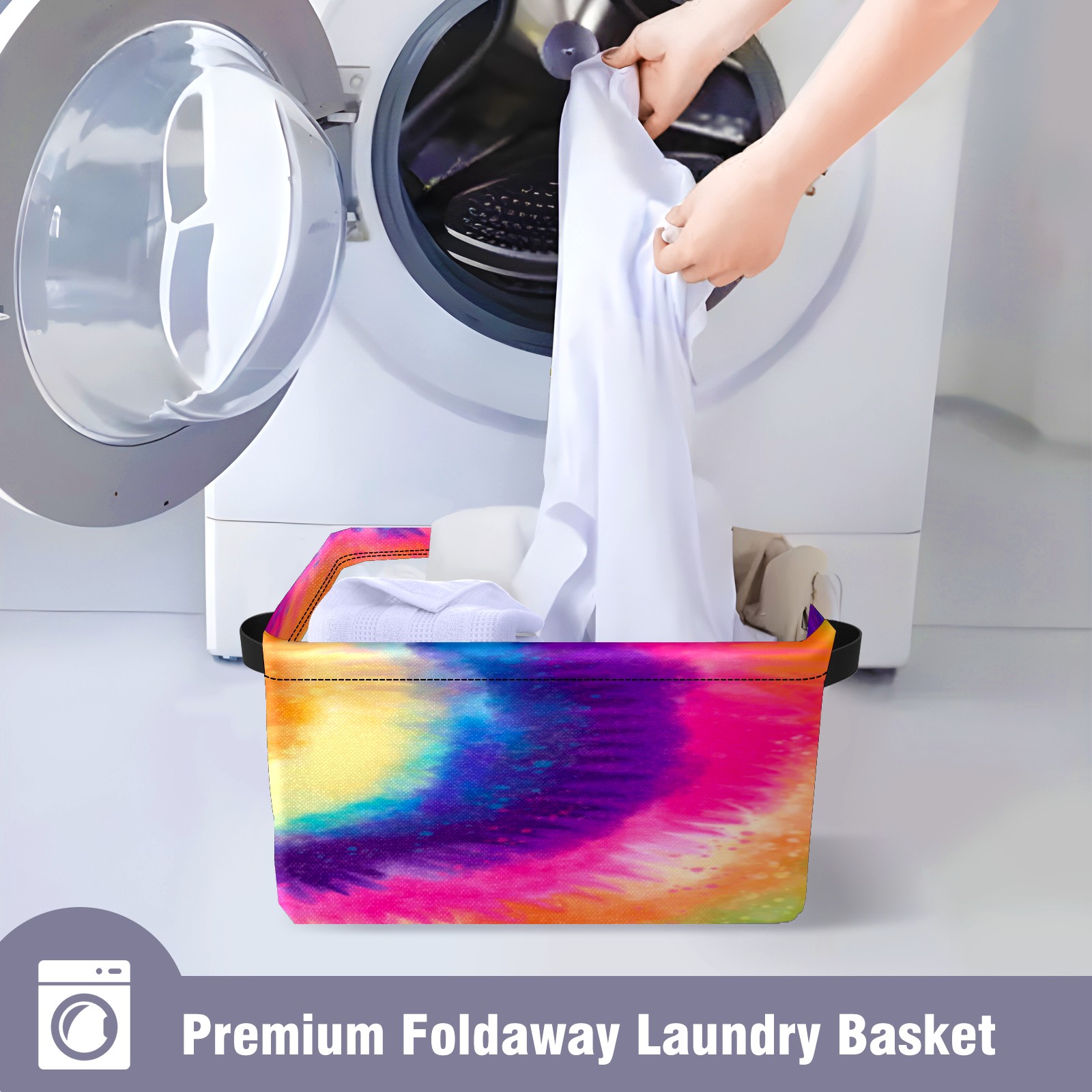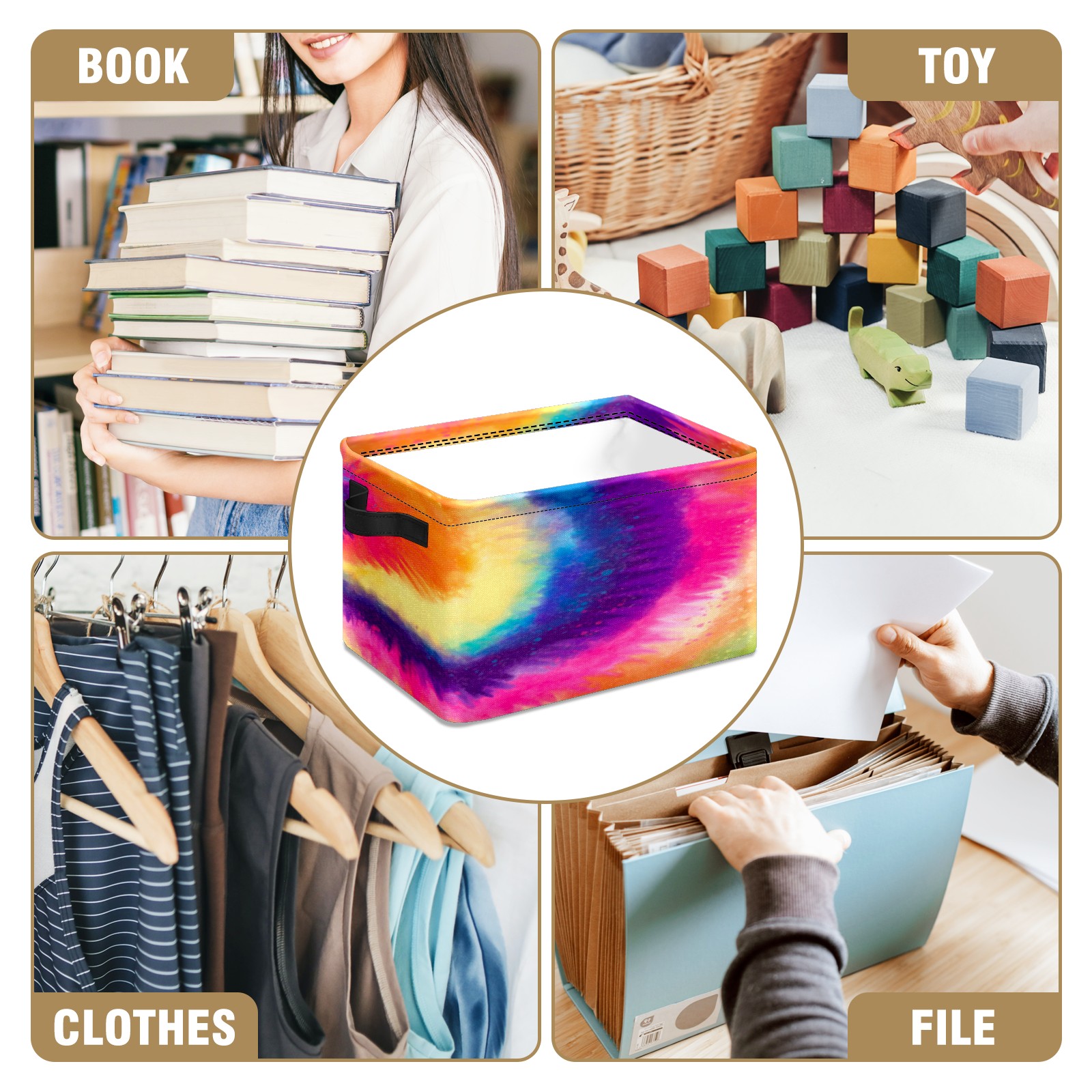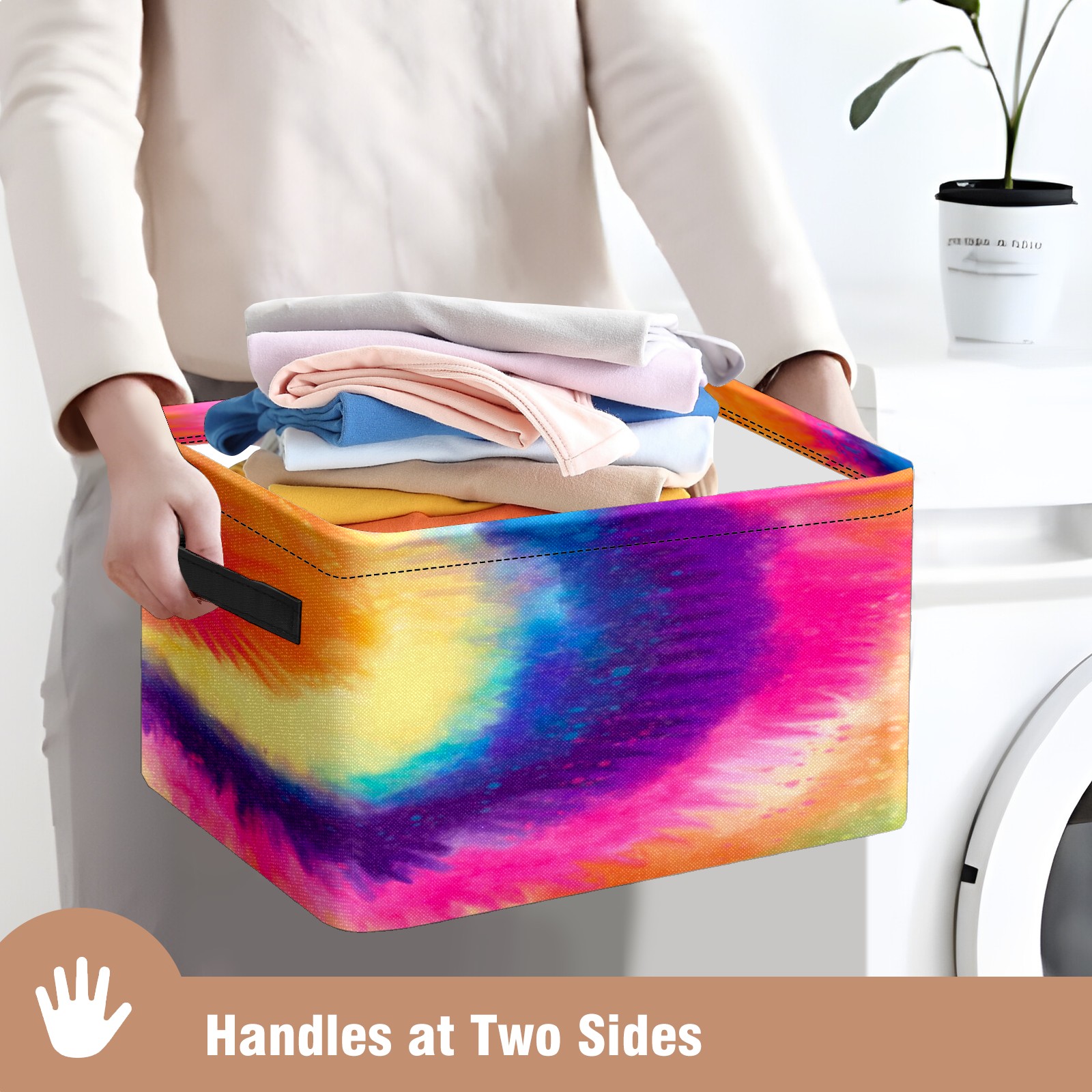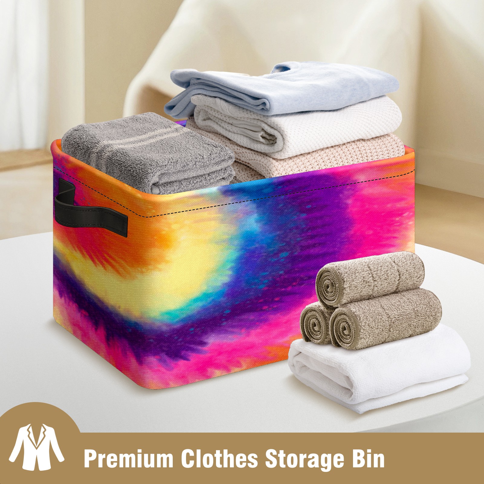 Collapsible 600D Oxford Storage Basket with Rainbow Tie Dye Style - Metal Frame 10"x14"x8" Reinforced Handles, Multi-Purpose Organizer