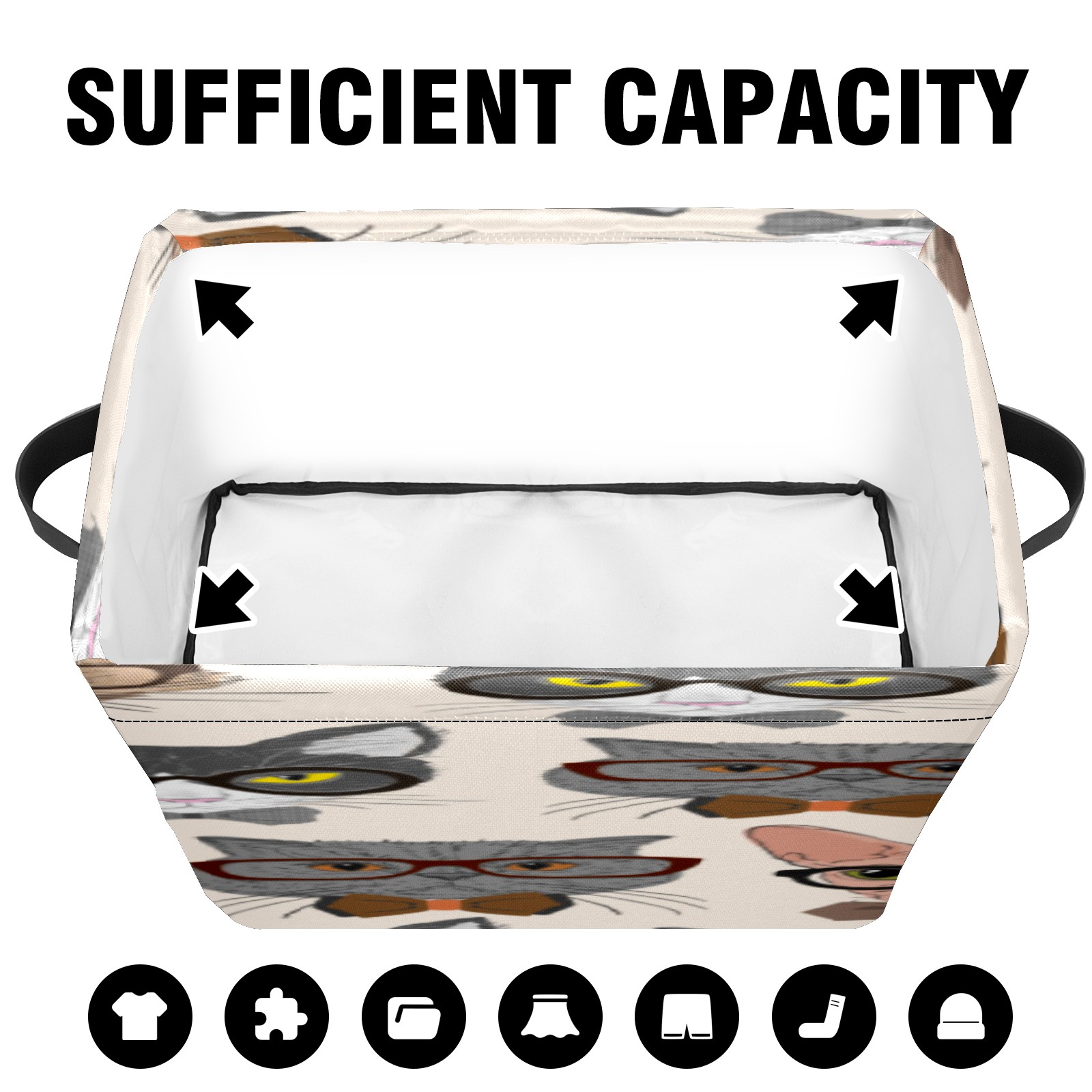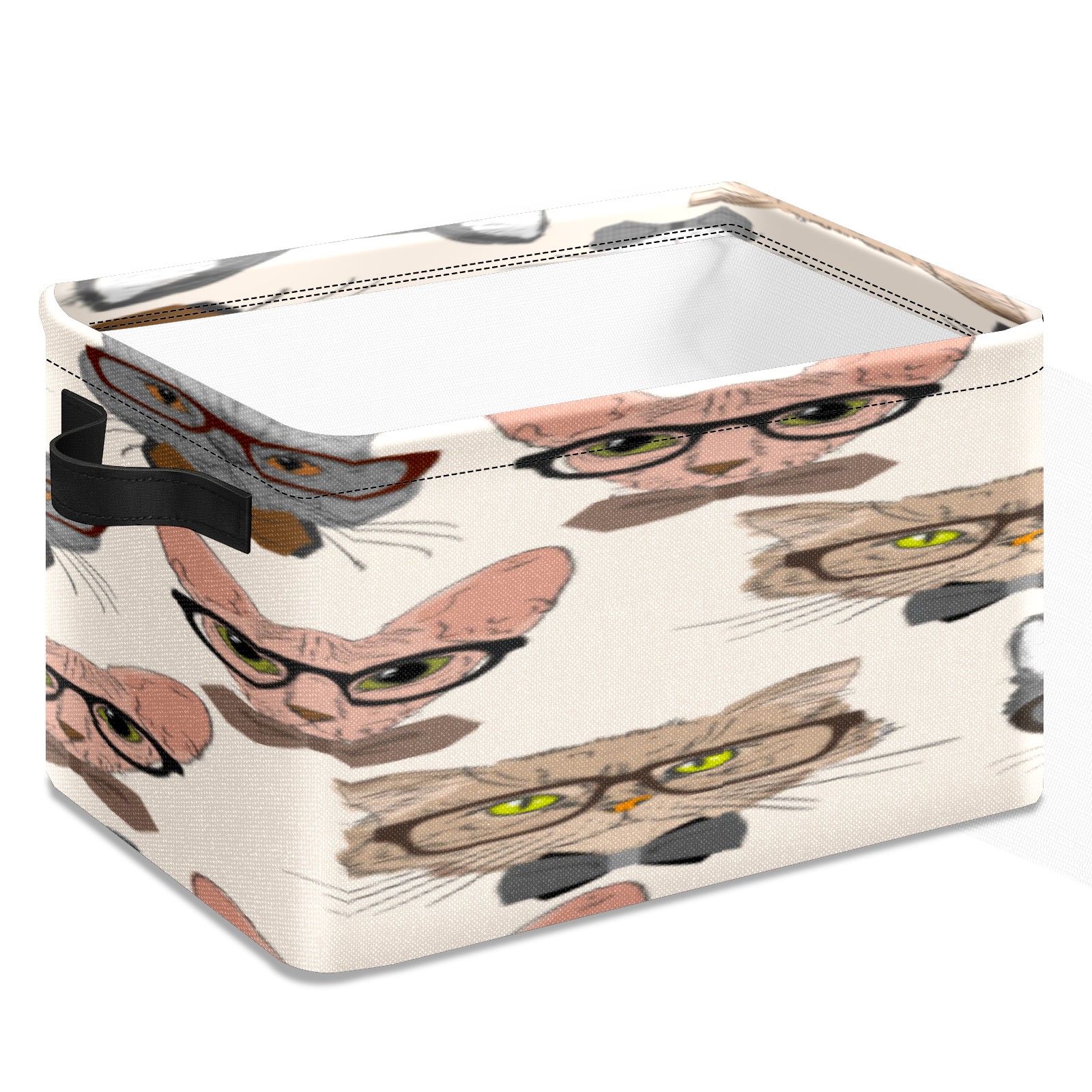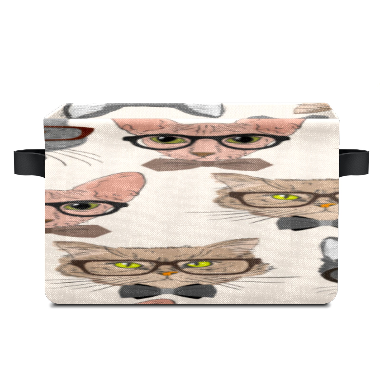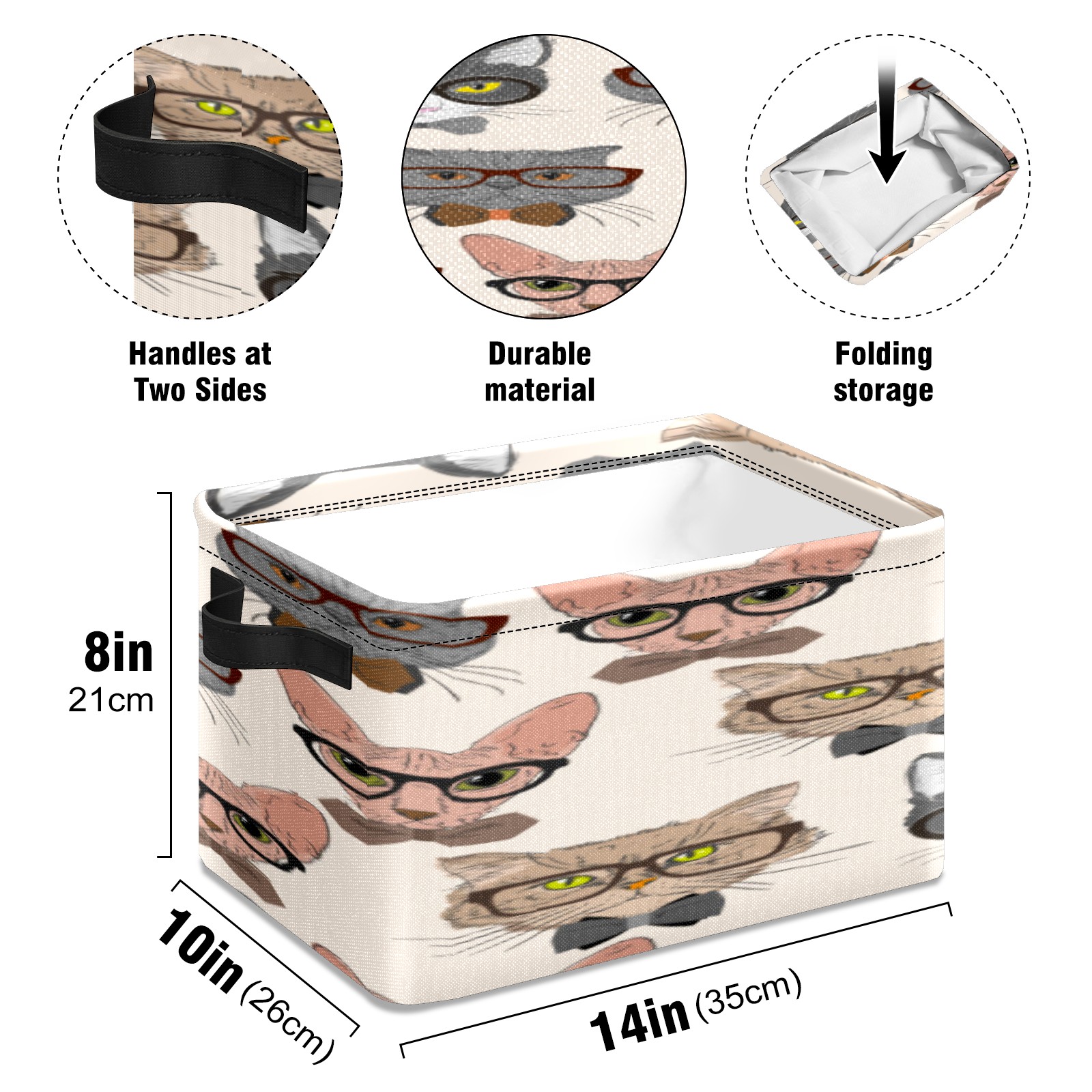 Collapsible 600D Oxford Storage Basket with Cartoon Cats - Metal Frame 10"x14"x8" Reinforced Handles, Multi-Purpose Organizer