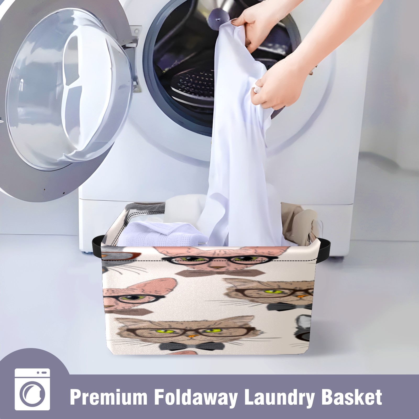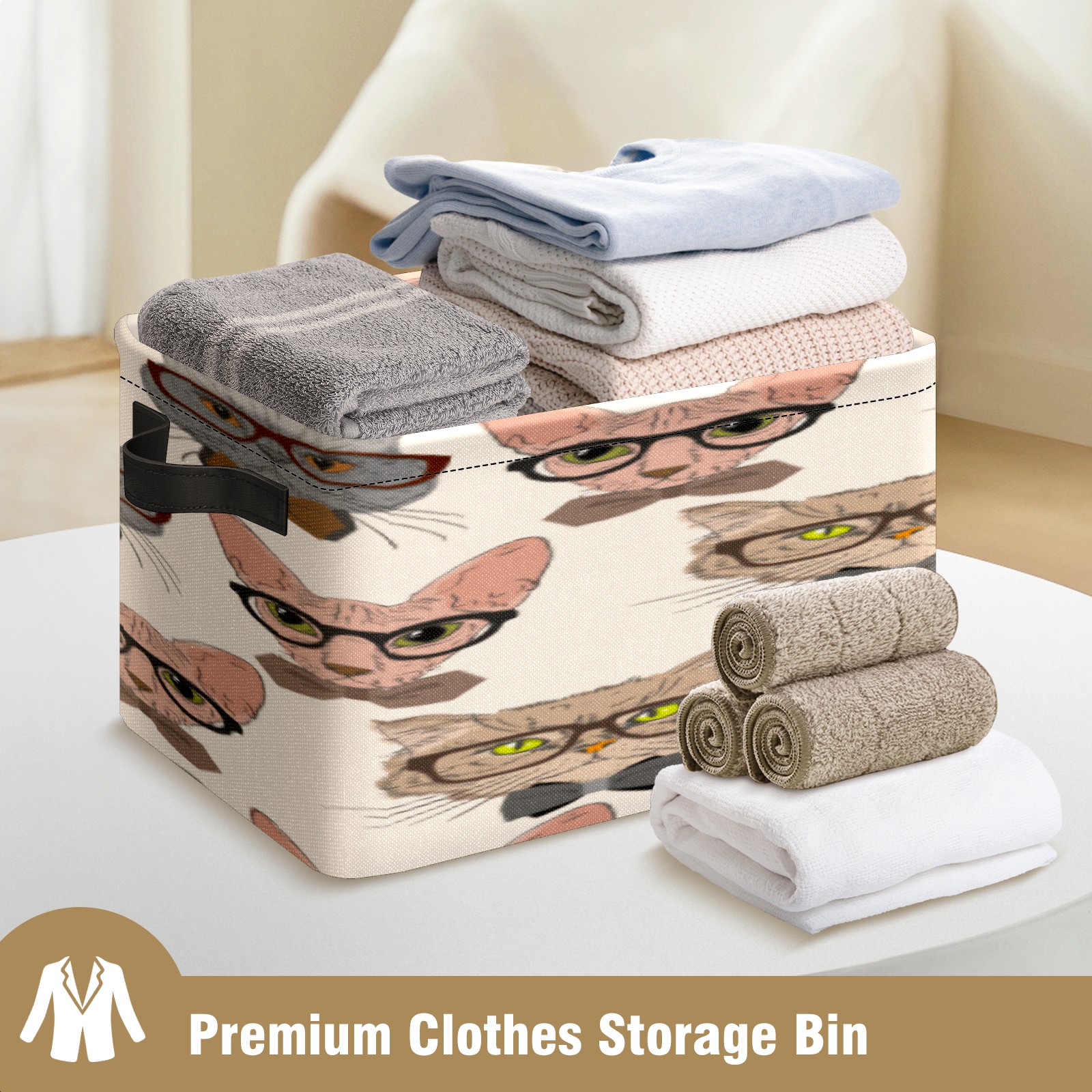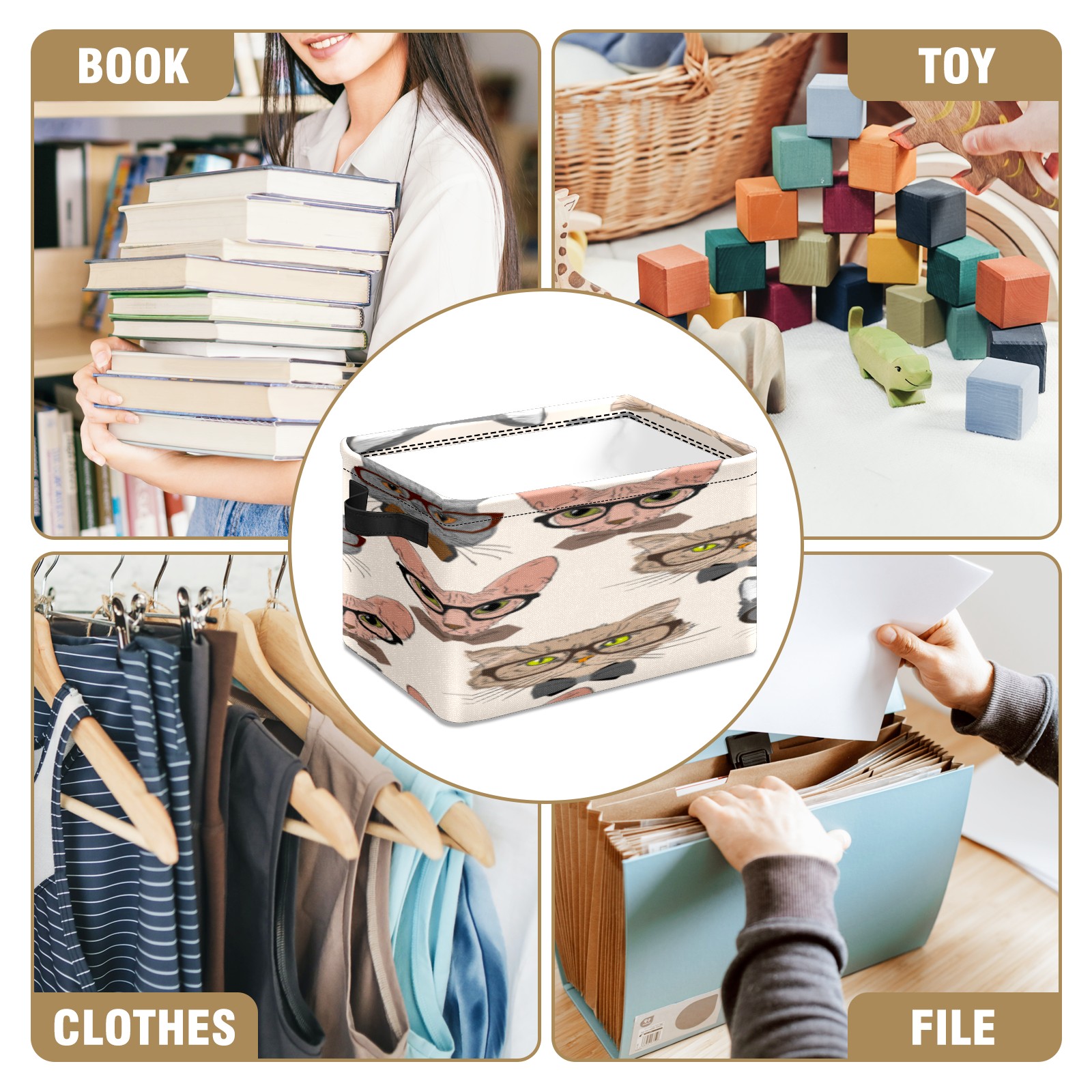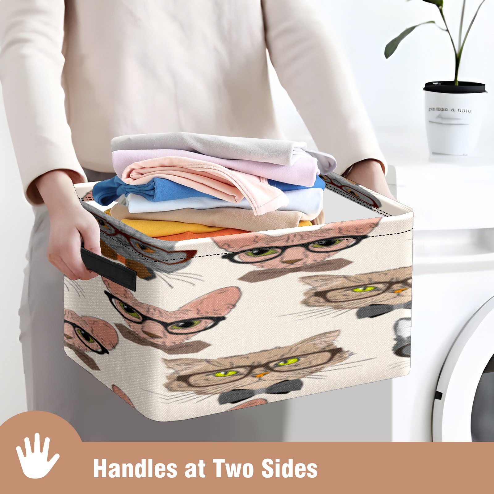 Collapsible 600D Oxford Storage Basket with Cartoon Cats - Metal Frame 10"x14"x8" Reinforced Handles, Multi-Purpose Organizer