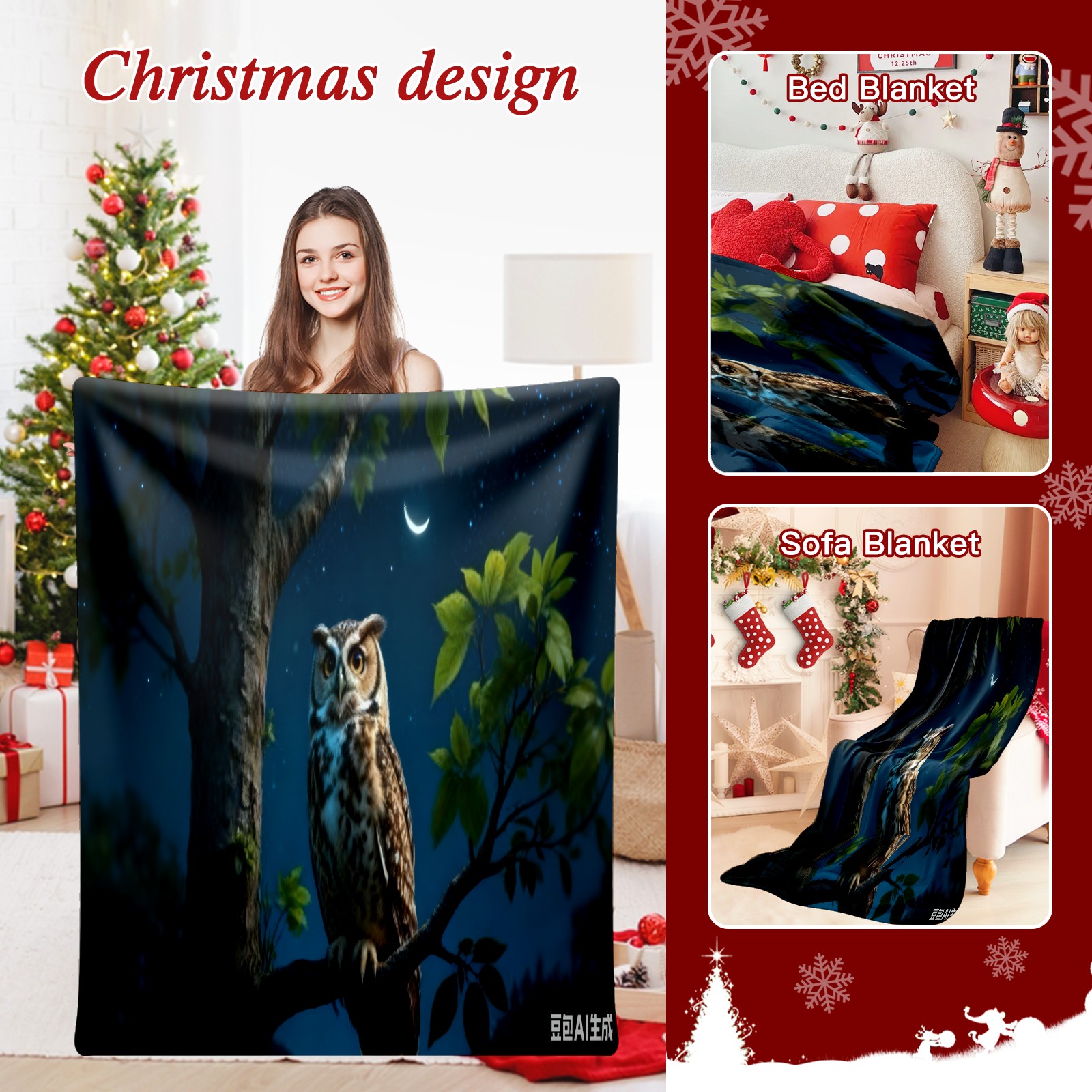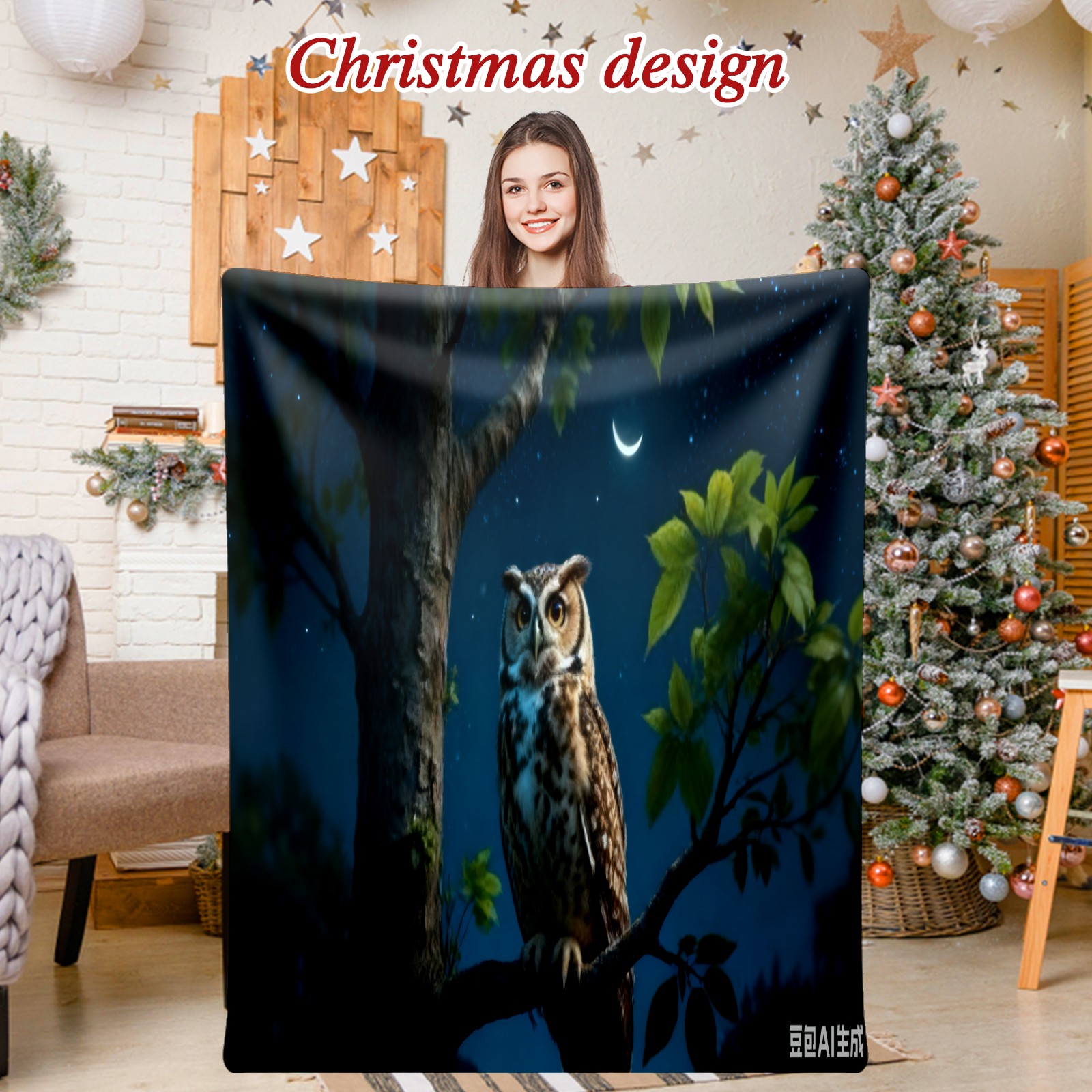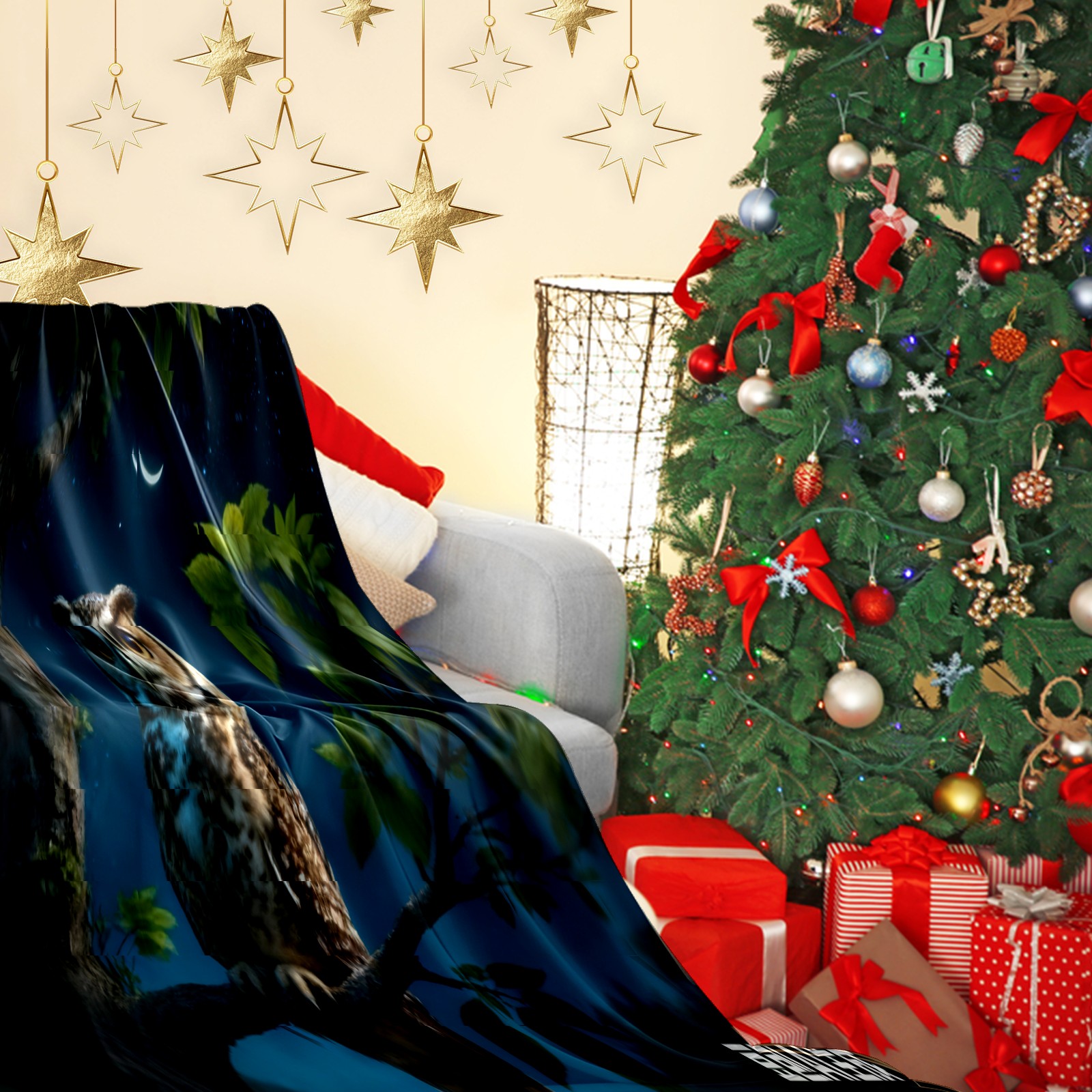 Премиальная фланелевая одеяло Moonlight Owl