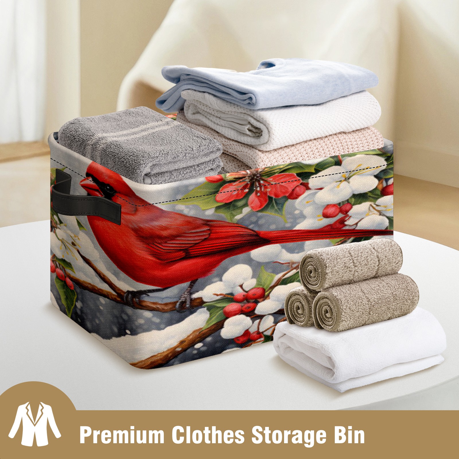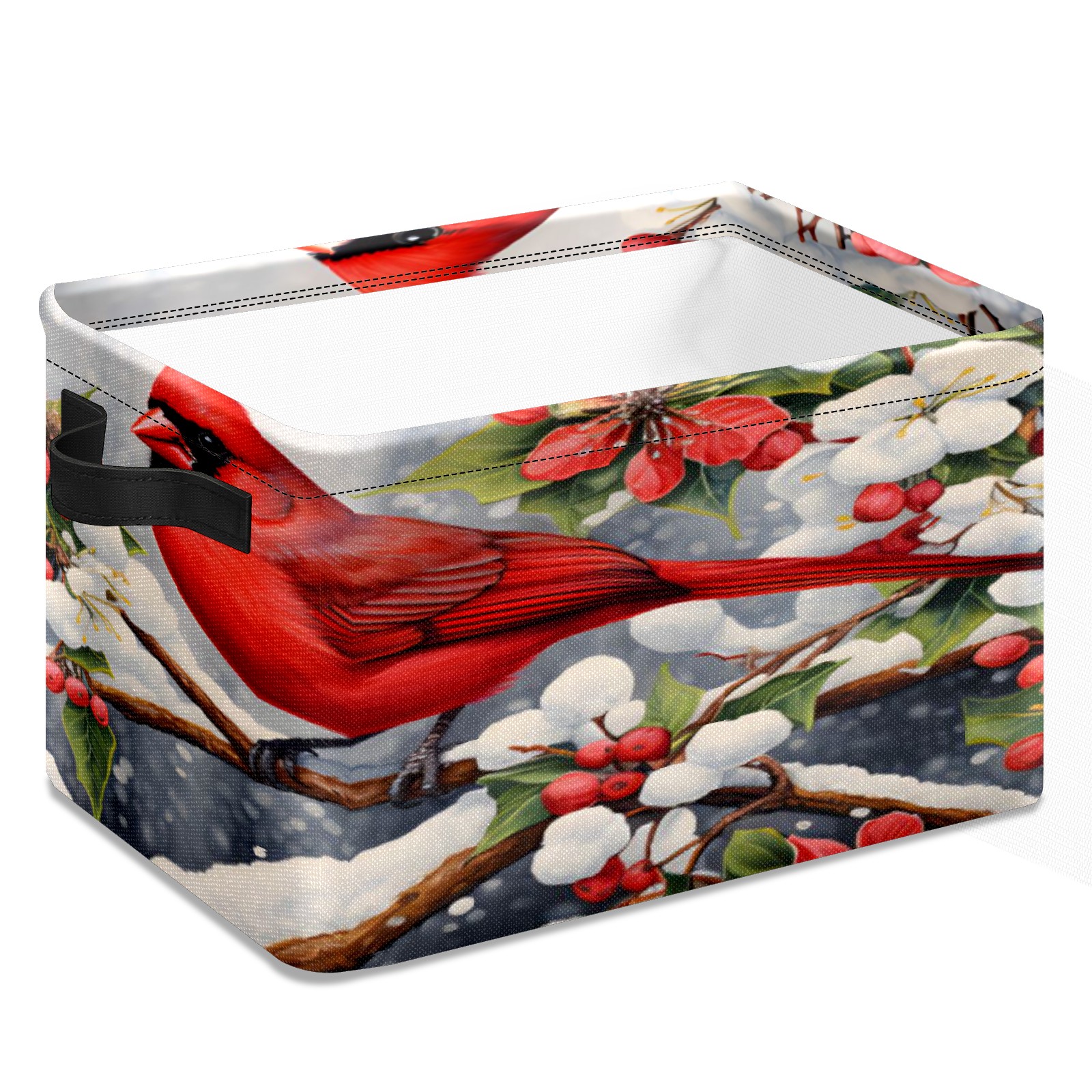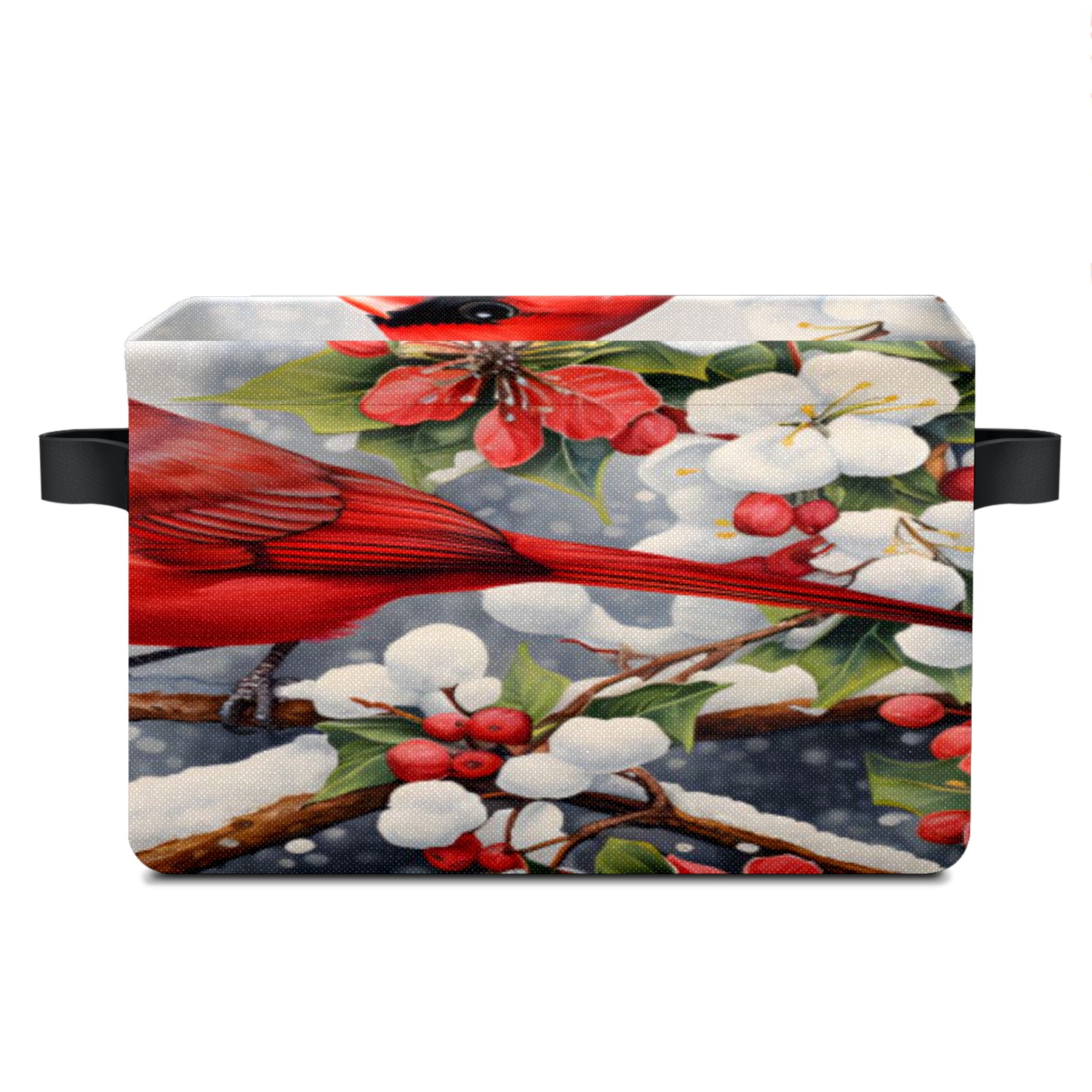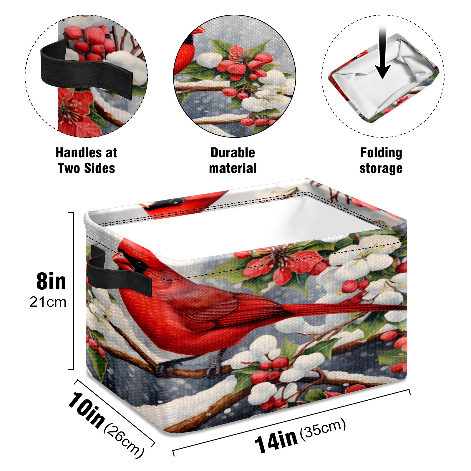 Collapsible 600D Oxford Storage Basket with Christmas Cardinal - Metal Frame 10"x14"x8" Reinforced Handles, Multi-Purpose Organizer