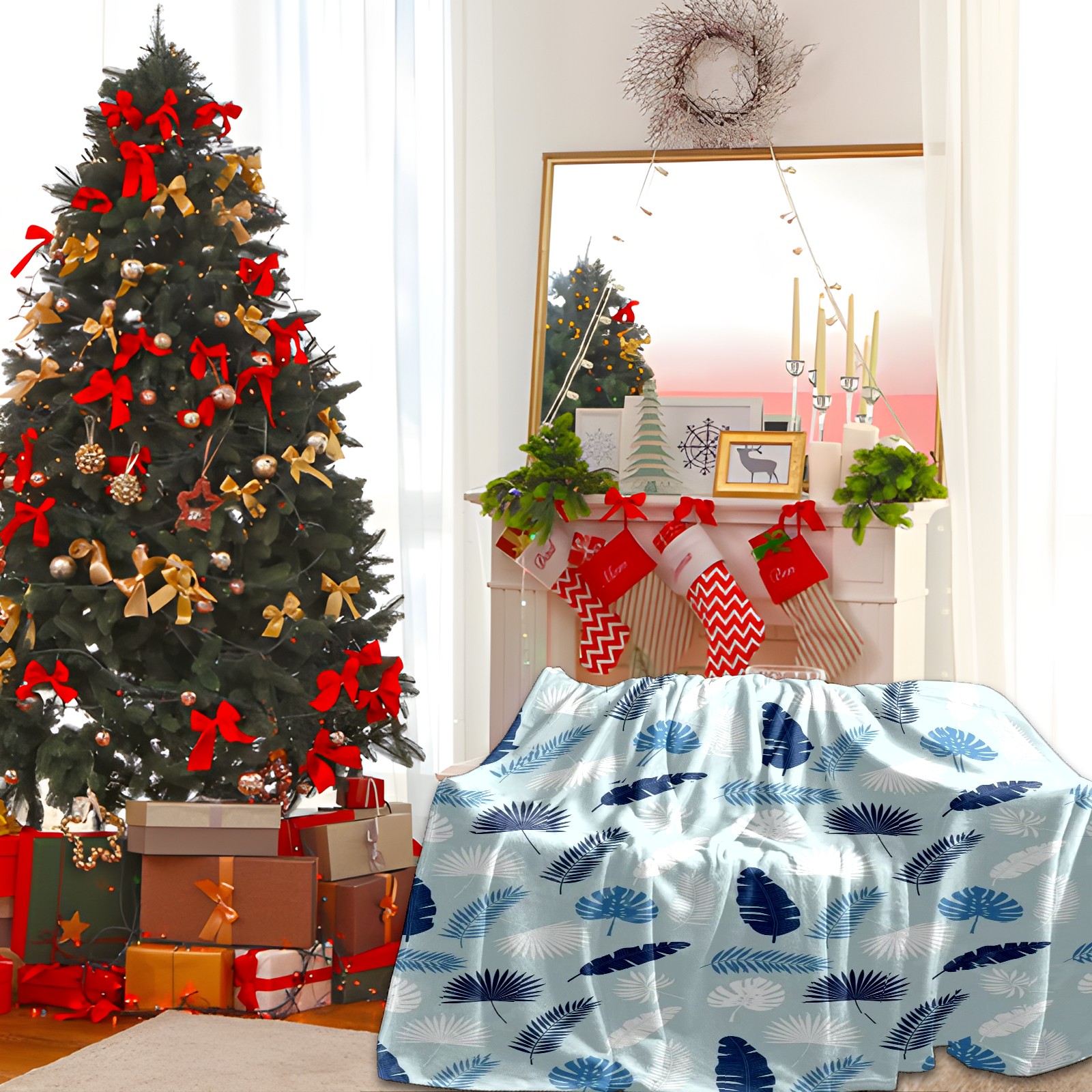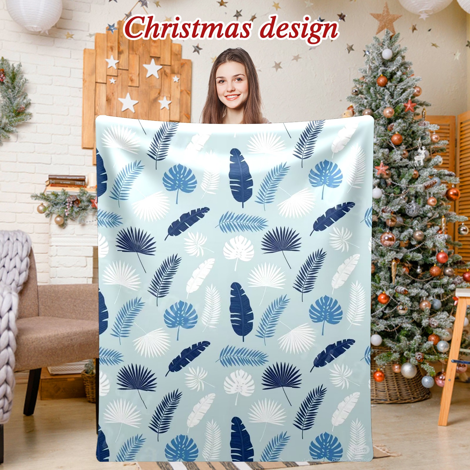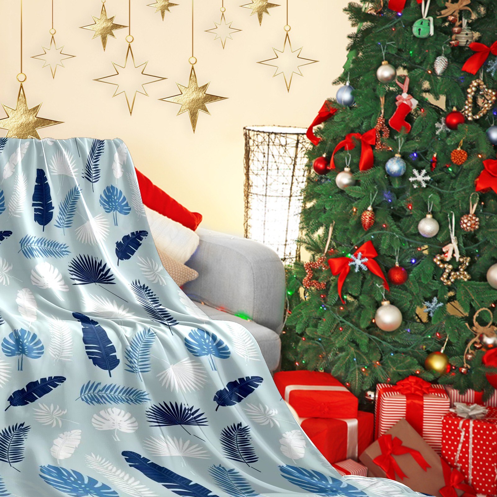 Премиальная фланелевая одеяло Blue Leaf