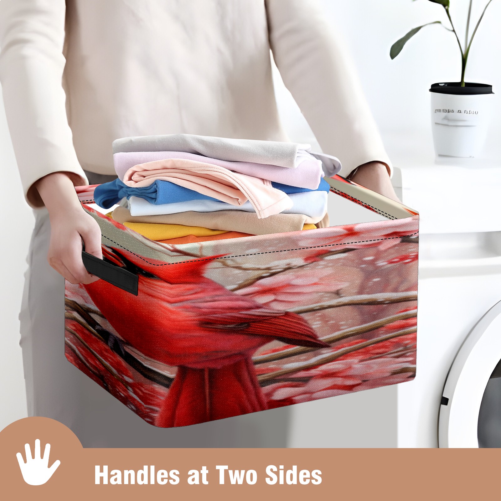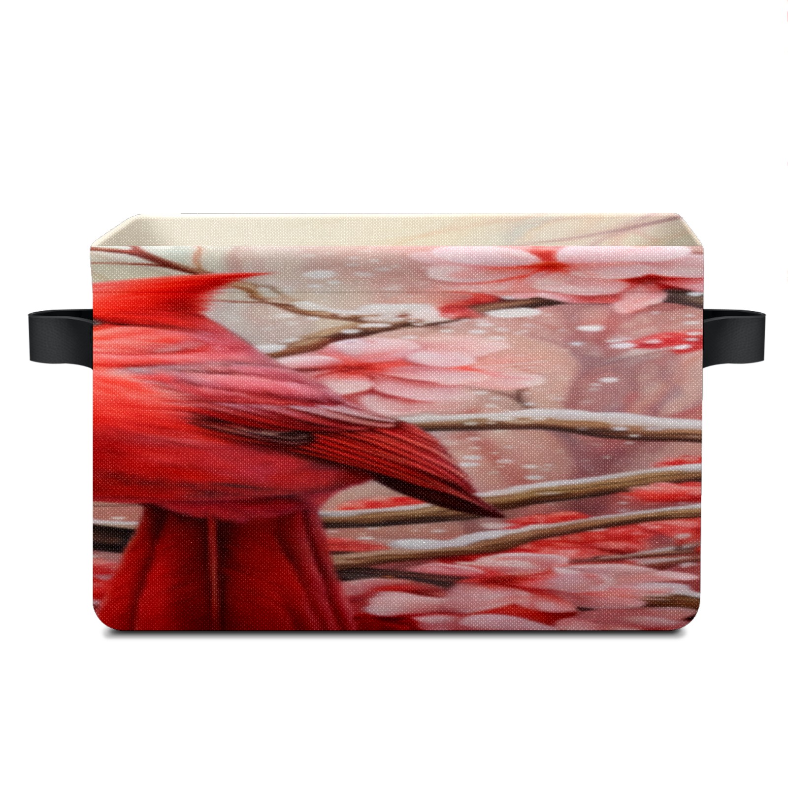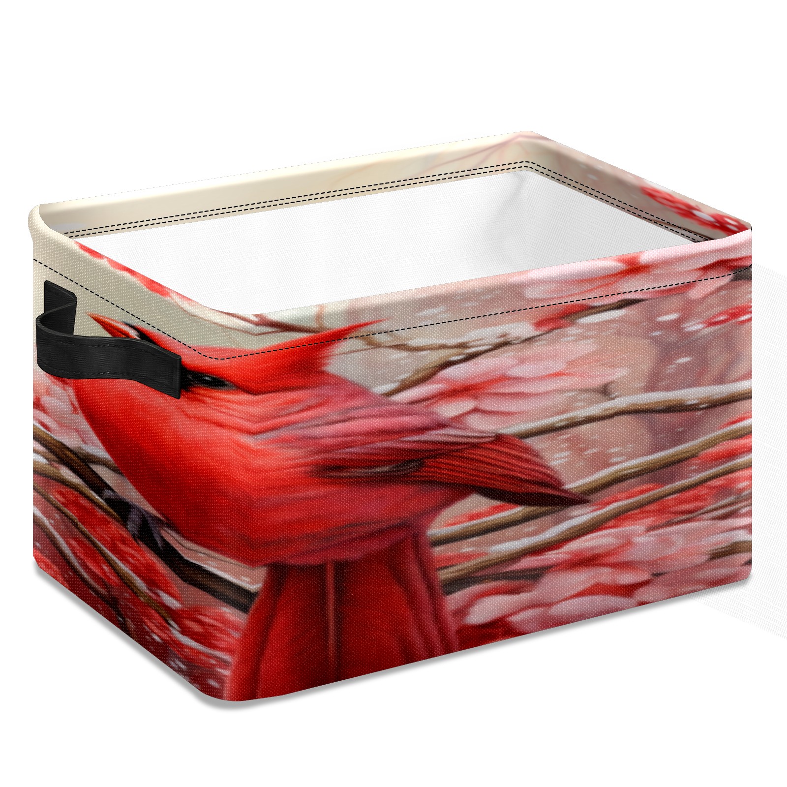 Collapsible 600D Oxford Storage Basket with Bjkj_two_Beautiful_christma_realistic_cardinal_with_red_carnat_302a4ad1-c654-4a18-935f-85b02b6eb369 - Metal Frame 10"x14"x8" Reinforced Handles, Multi-Purpose Organizer
