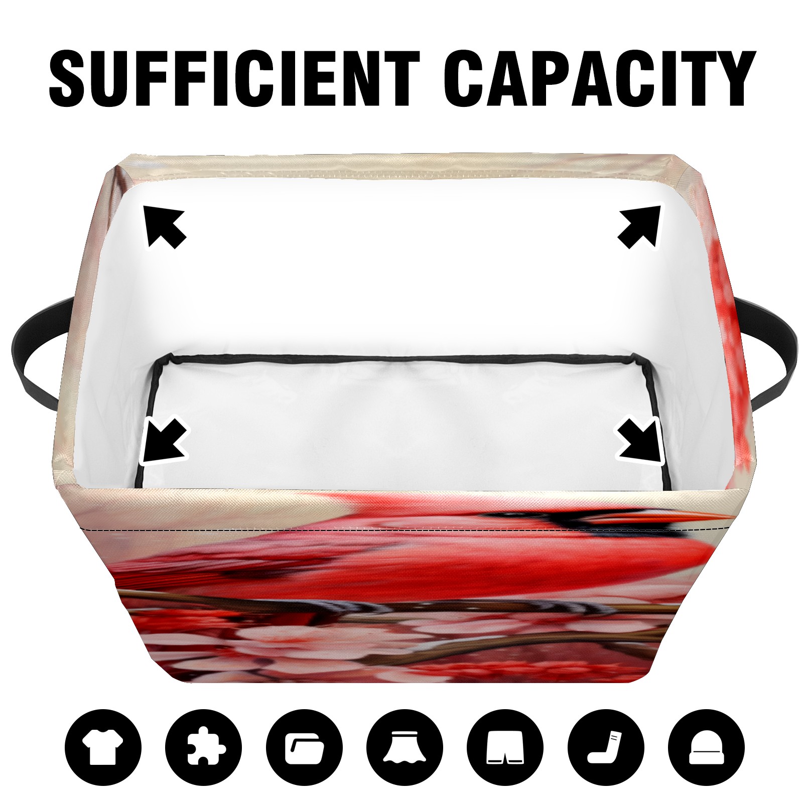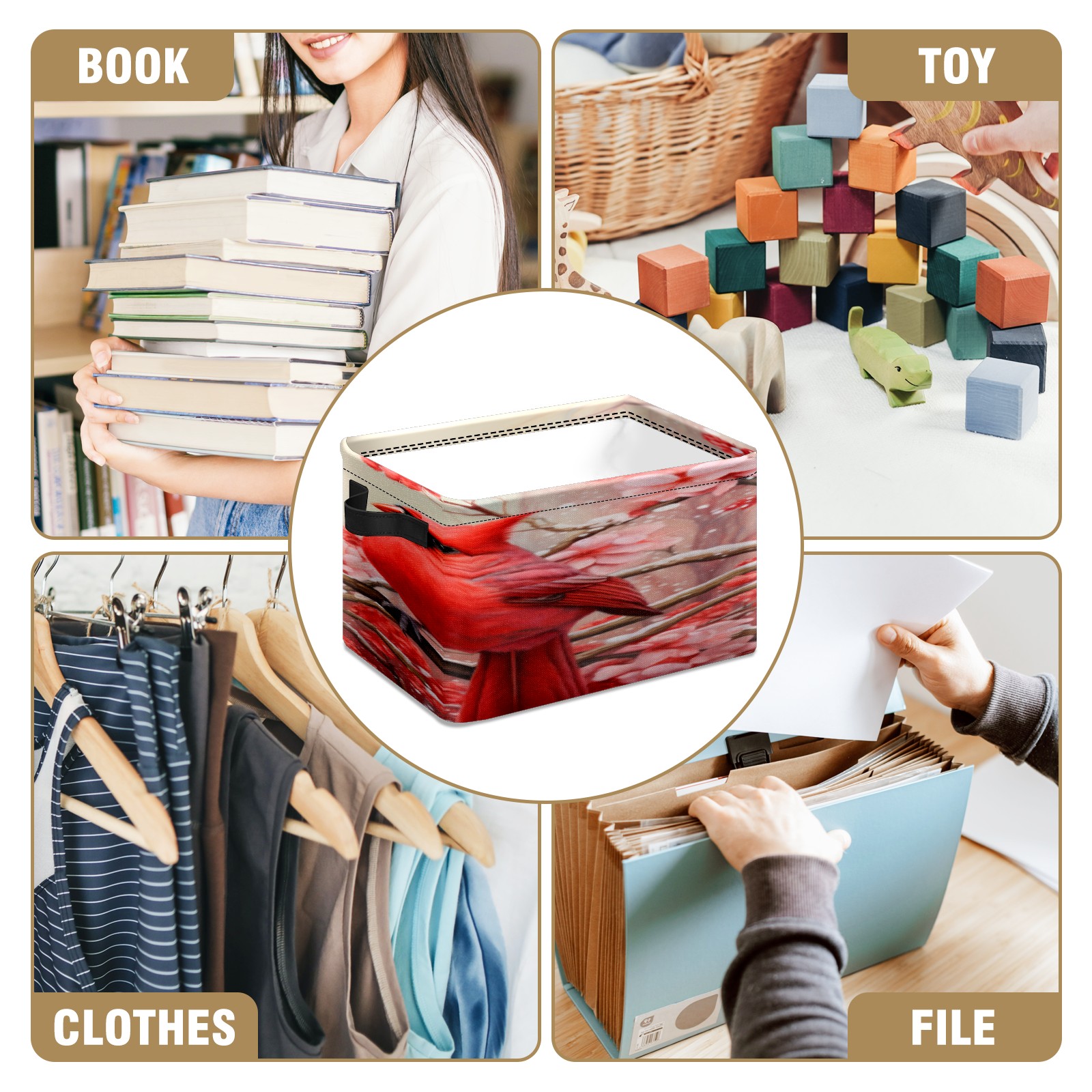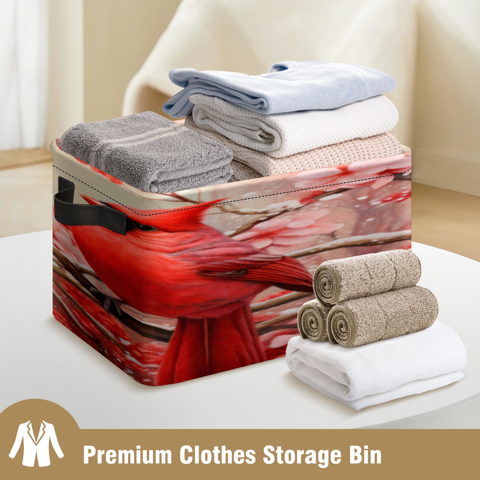 Collapsible 600D Oxford Storage Basket with Bjkj_two_Beautiful_christma_realistic_cardinal_with_red_carnat_302a4ad1-c654-4a18-935f-85b02b6eb369 - Metal Frame 10"x14"x8" Reinforced Handles, Multi-Purpose Organizer