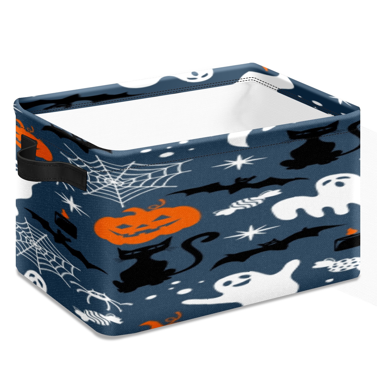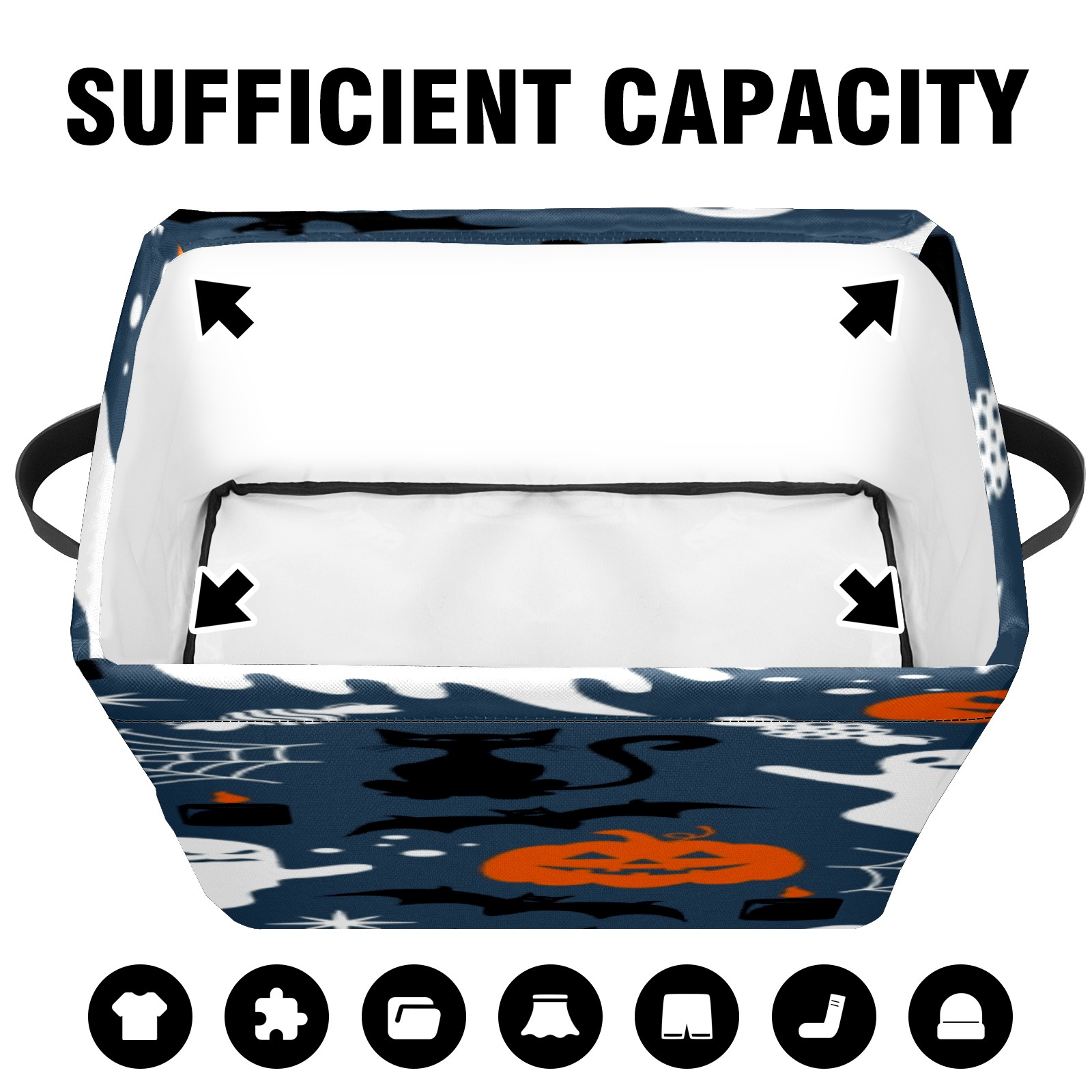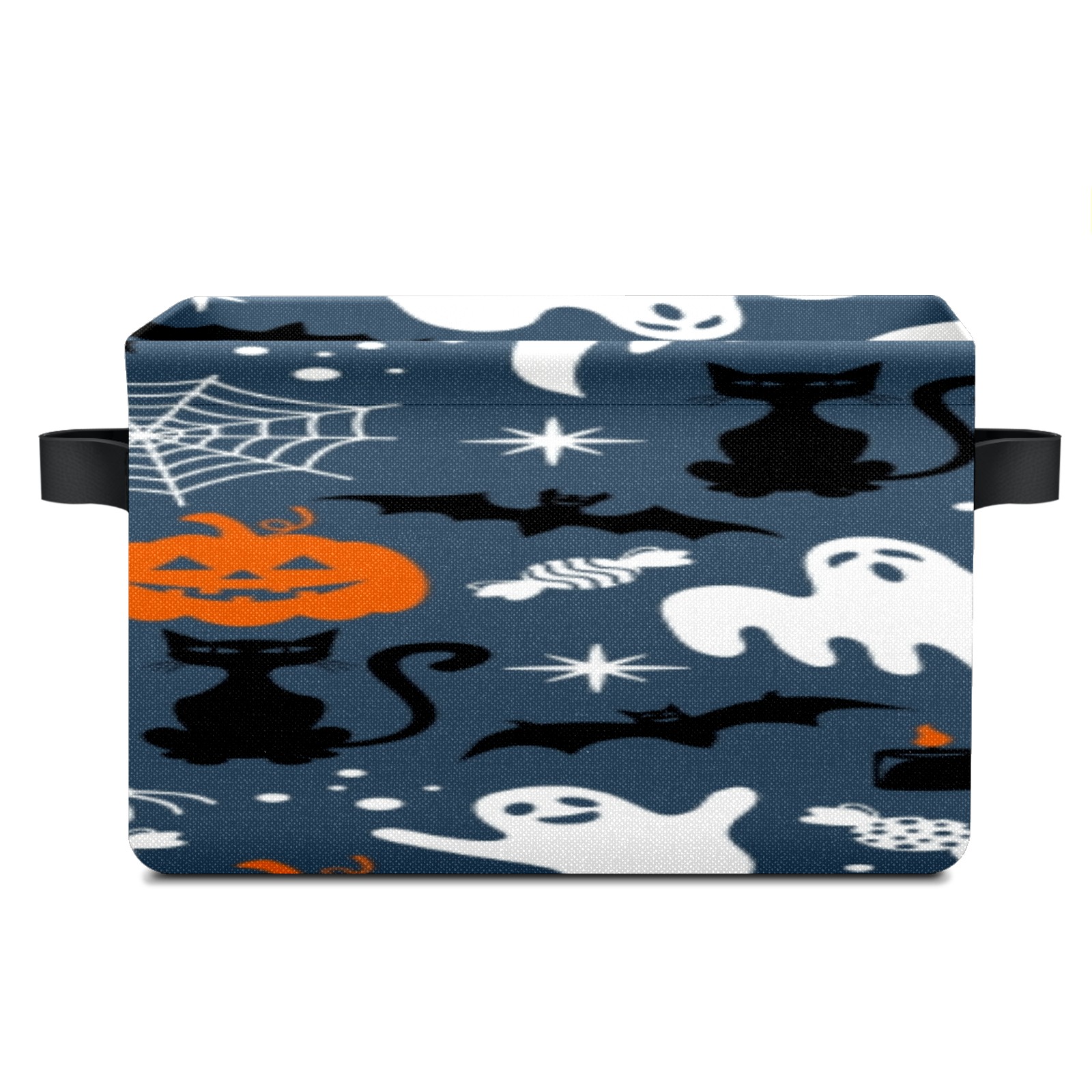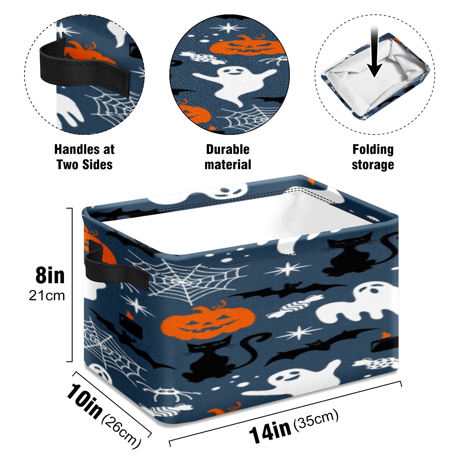 Collapsible 600D Oxford Storage Basket with Halloween Ghost Cat Pumpkin - Metal Frame 10"x14"x8" Reinforced Handles, Multi-Purpose Organizer