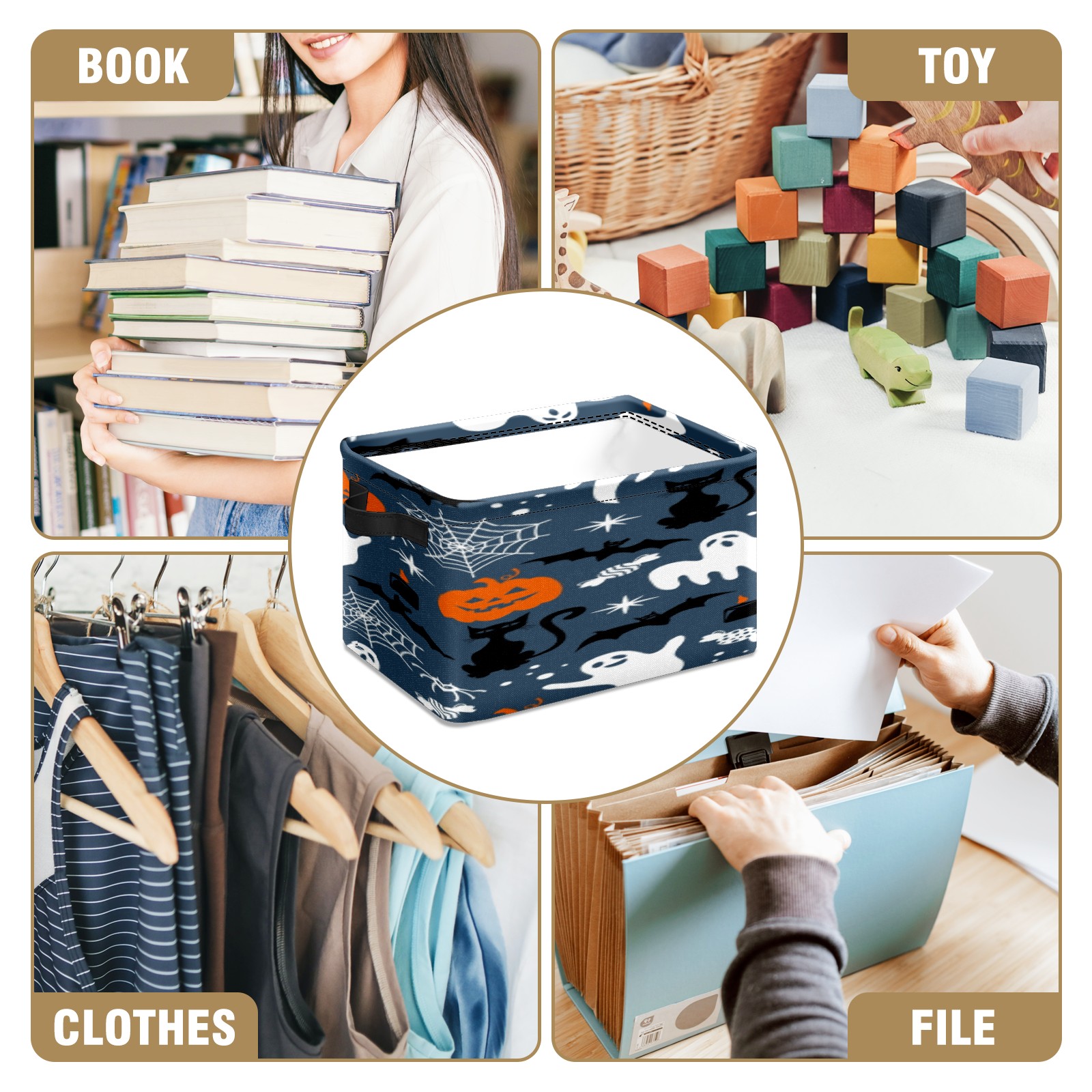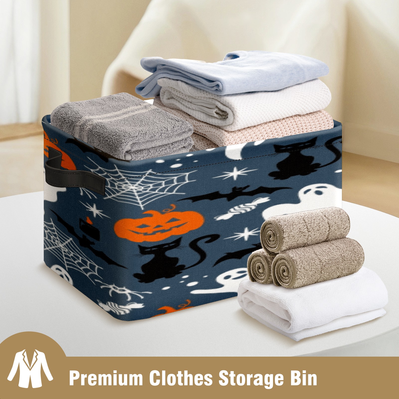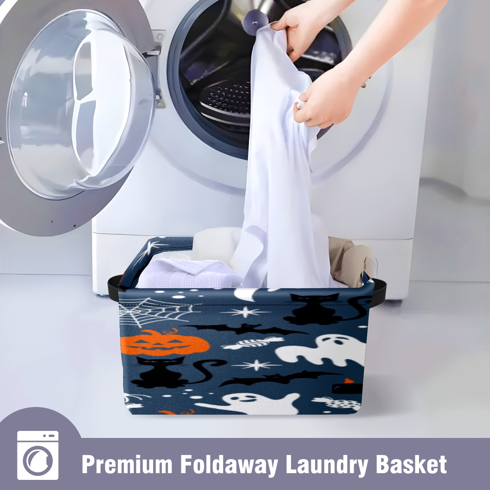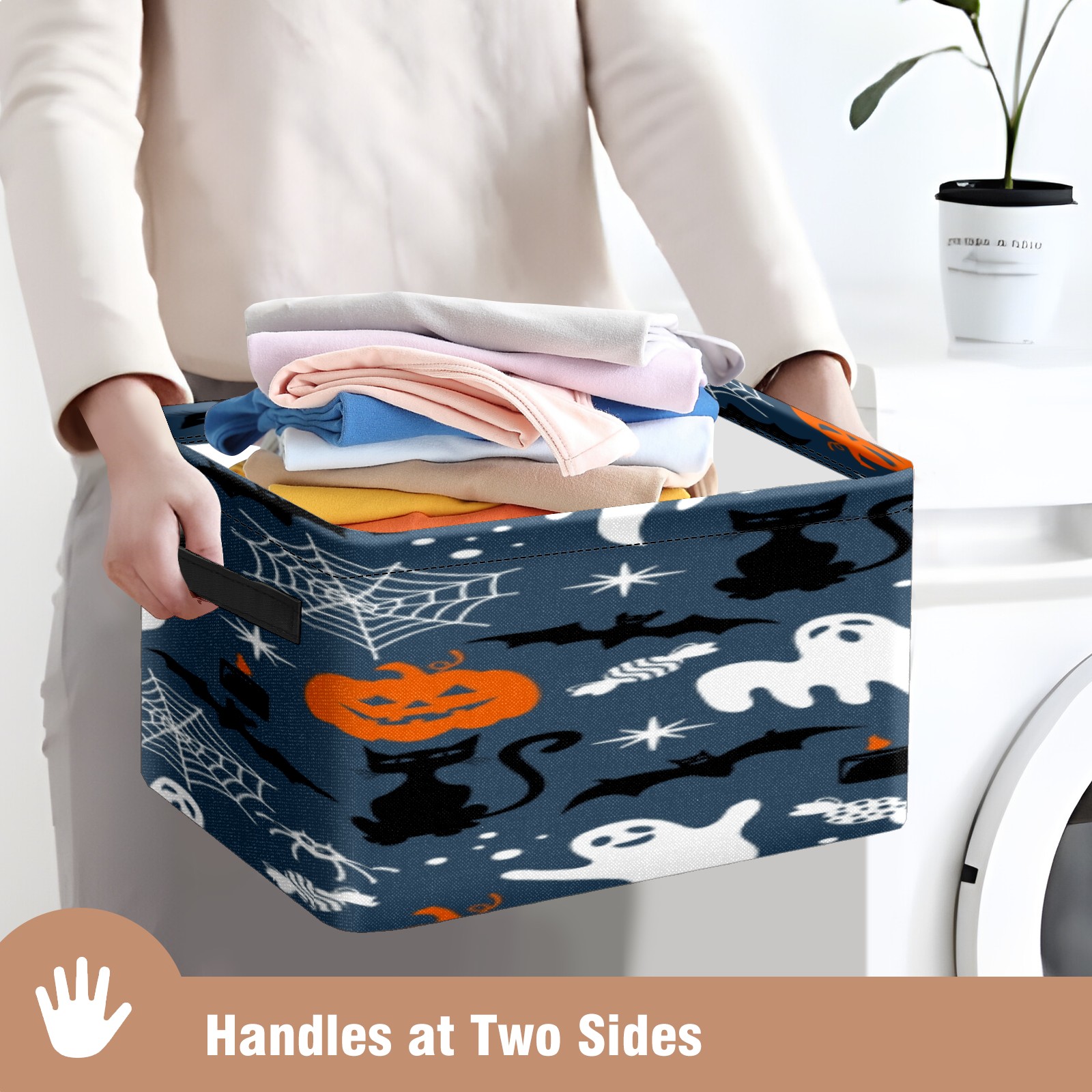 Collapsible 600D Oxford Storage Basket with Halloween Ghost Cat Pumpkin - Metal Frame 10"x14"x8" Reinforced Handles, Multi-Purpose Organizer