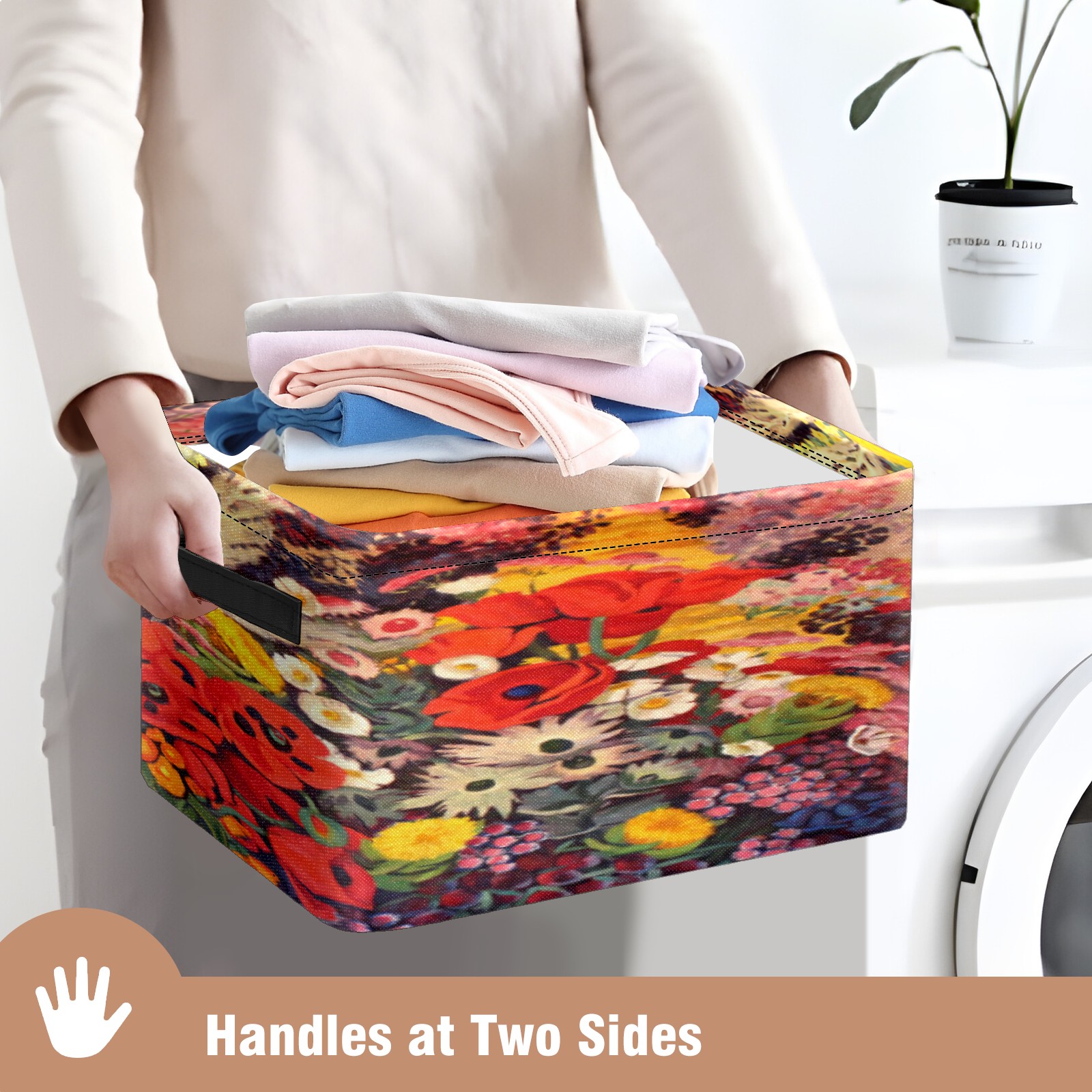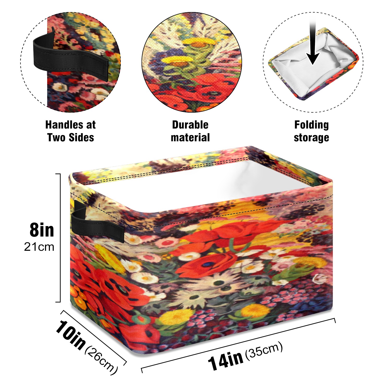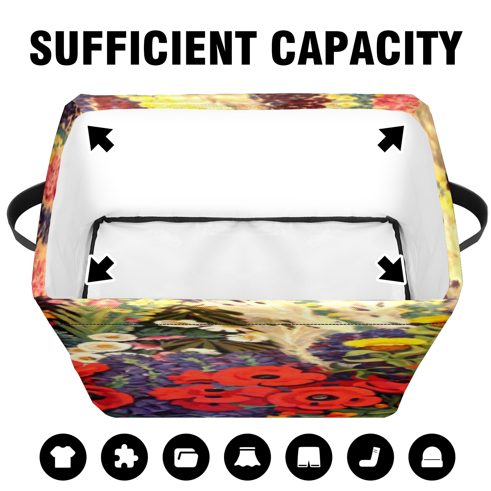 Collapsible 600D Oxford Storage Basket with Summer Garden - Metal Frame 10"x14"x8" Reinforced Handles, Multi-Purpose Organizer