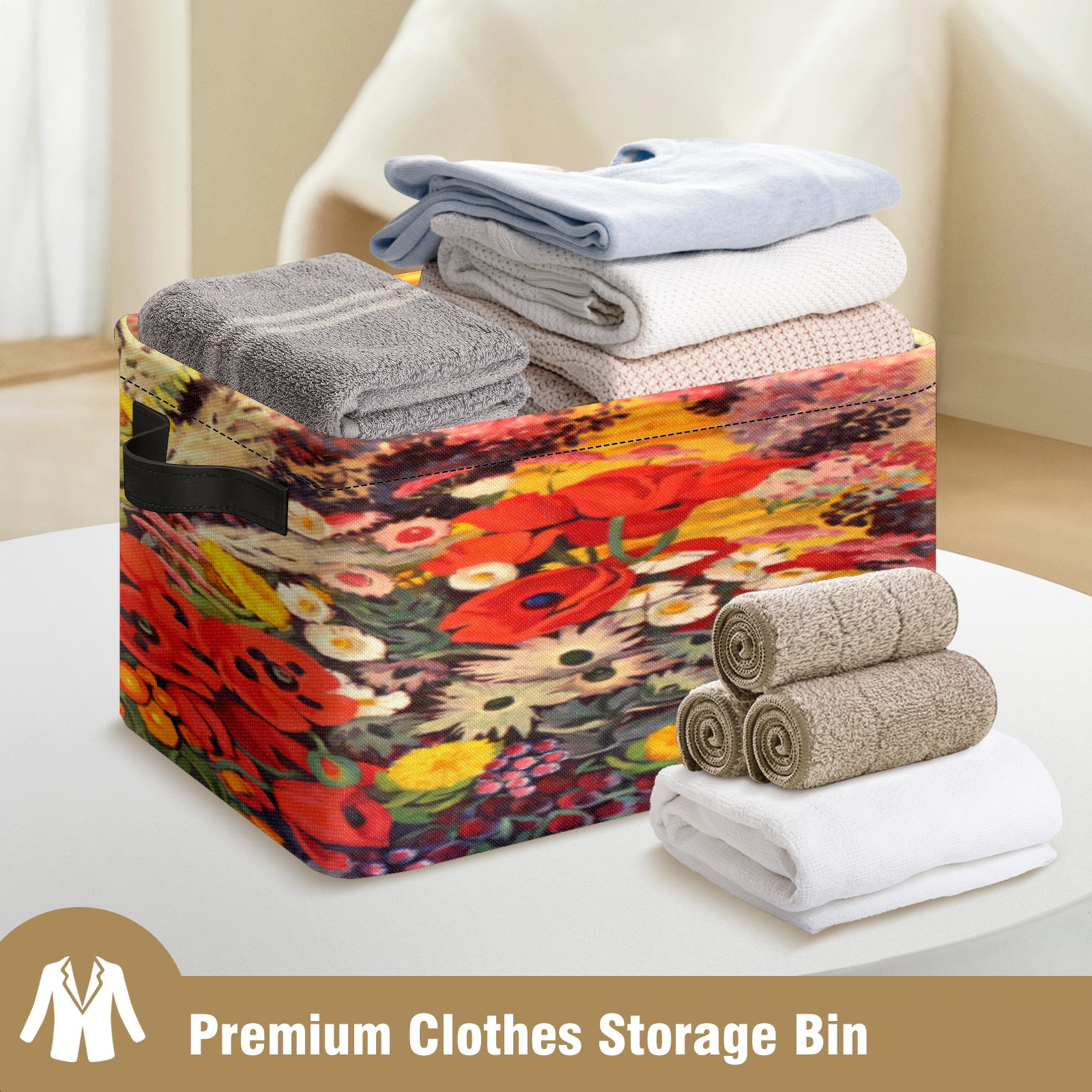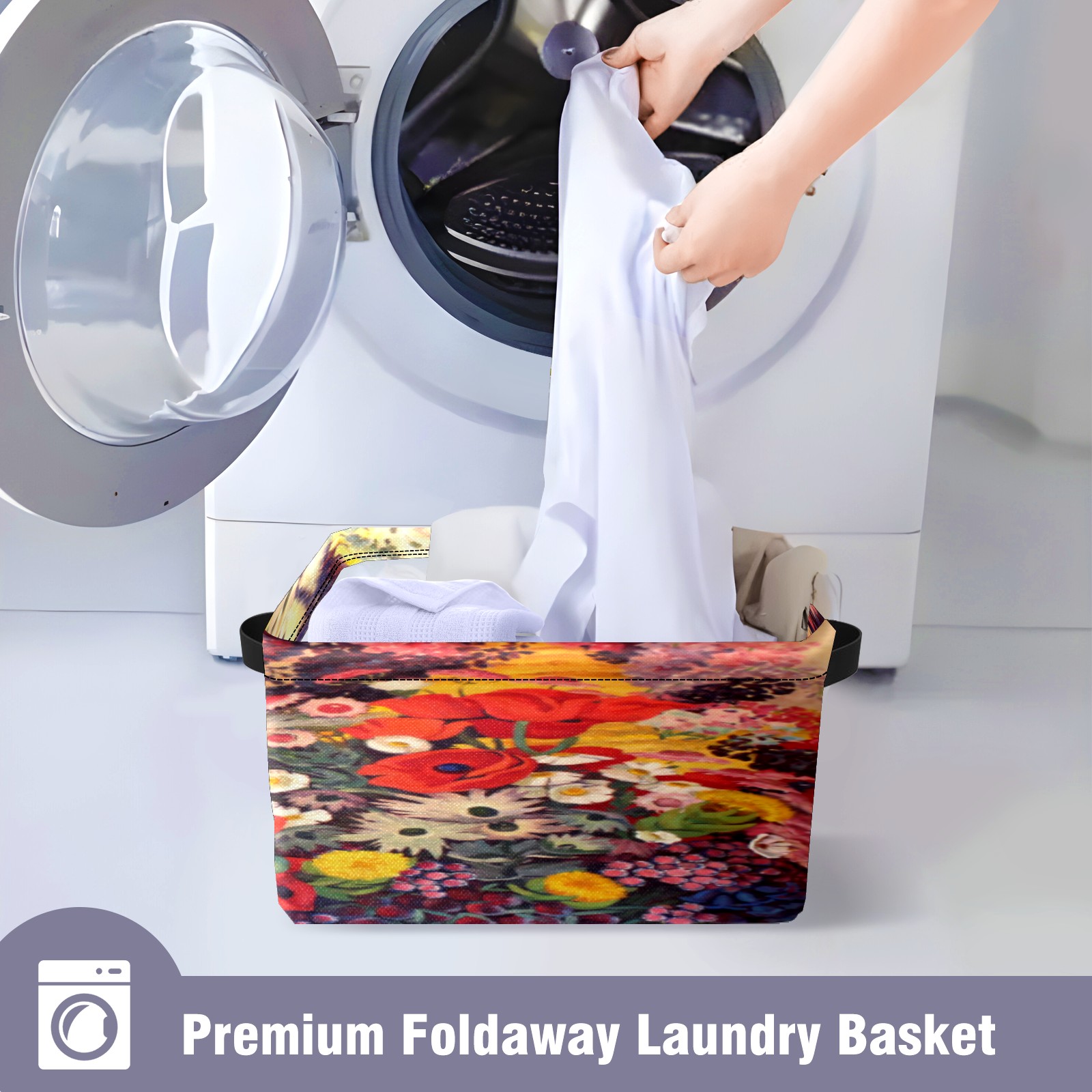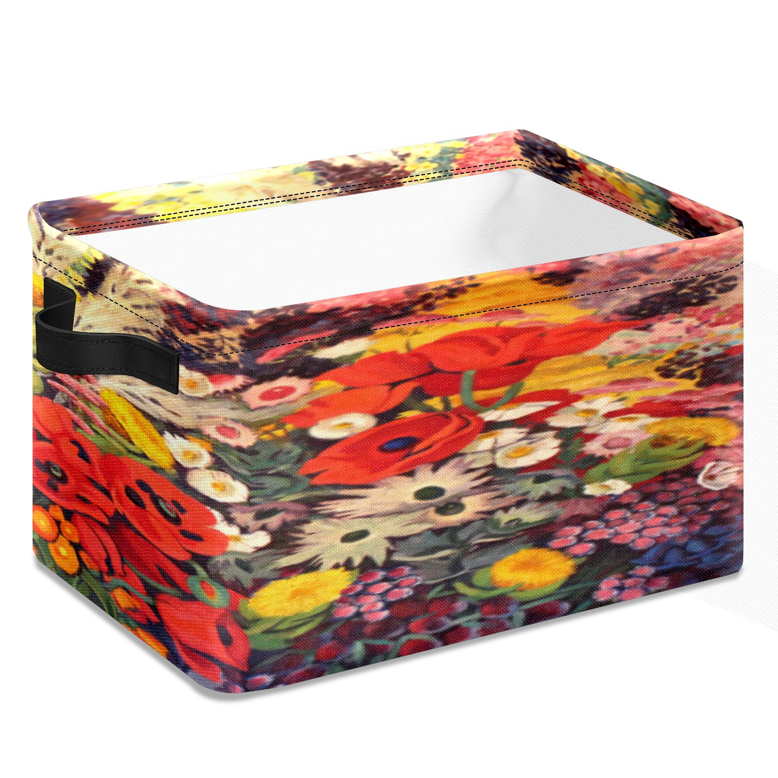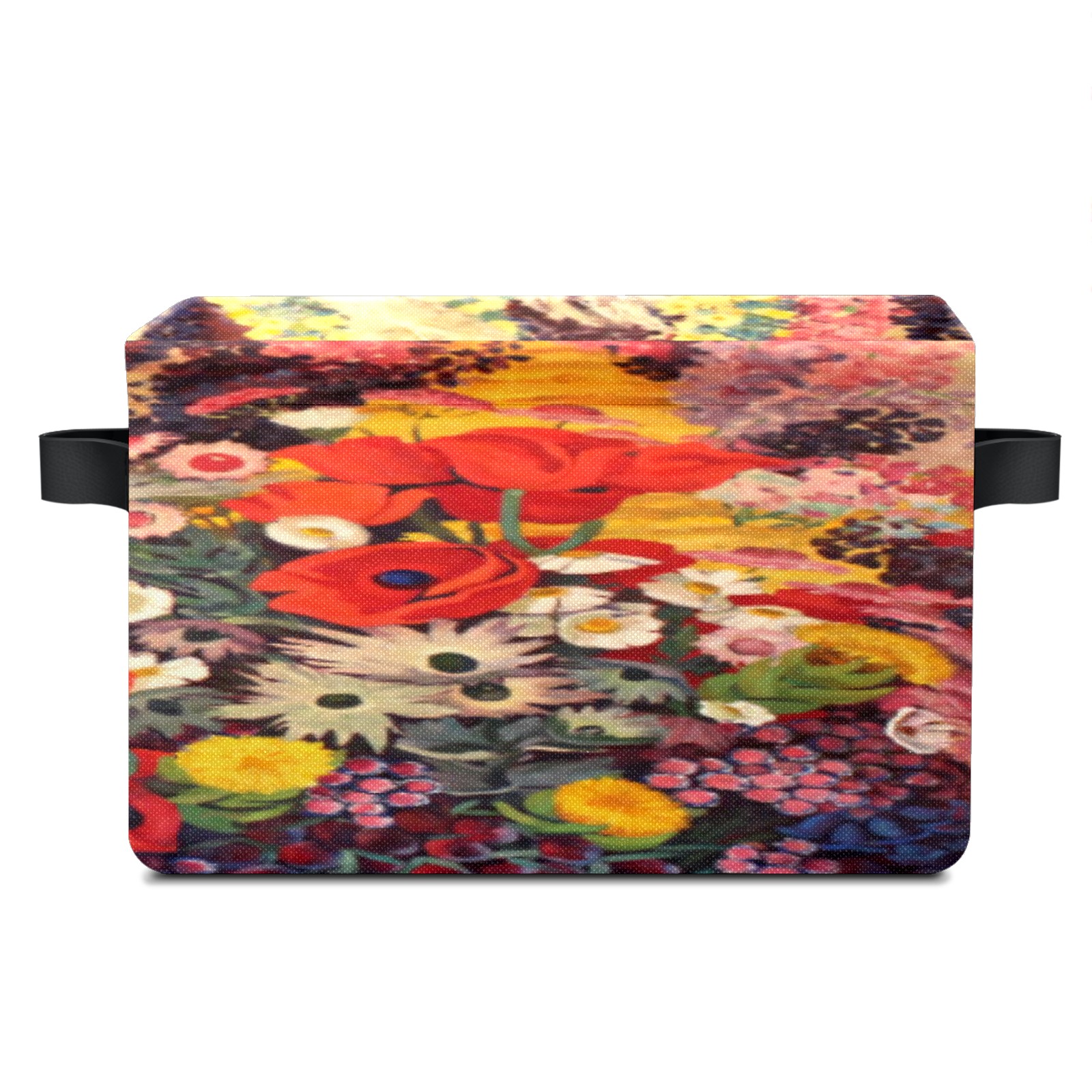 Collapsible 600D Oxford Storage Basket with Summer Garden - Metal Frame 10"x14"x8" Reinforced Handles, Multi-Purpose Organizer