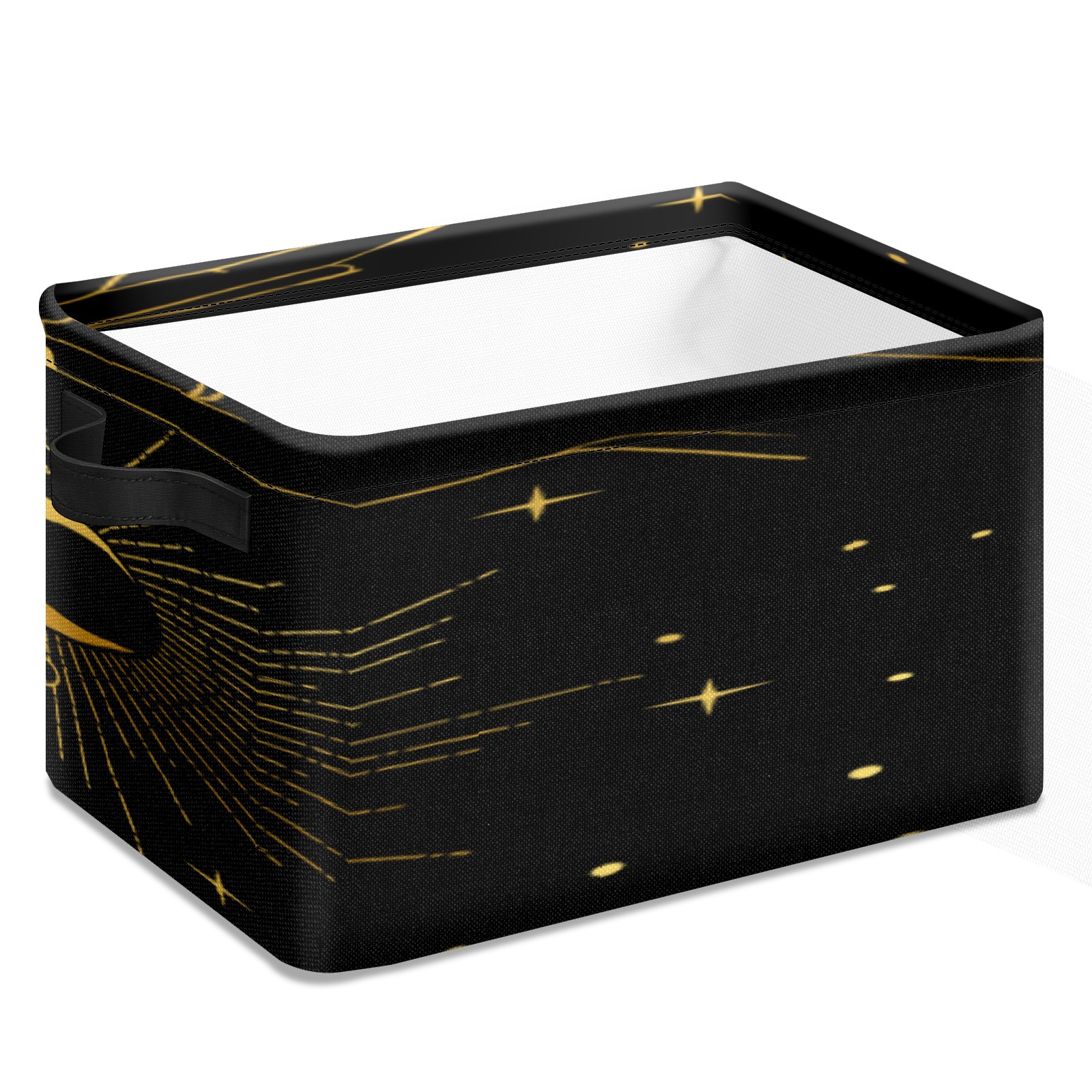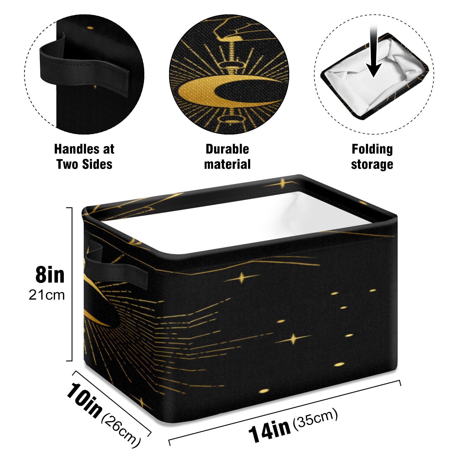Collapsible 600D Oxford Storage Basket with Hand Holding Crescent Moon - Metal Frame 10"x14"x8" Reinforced Handles, Multi-Purpose Organizer