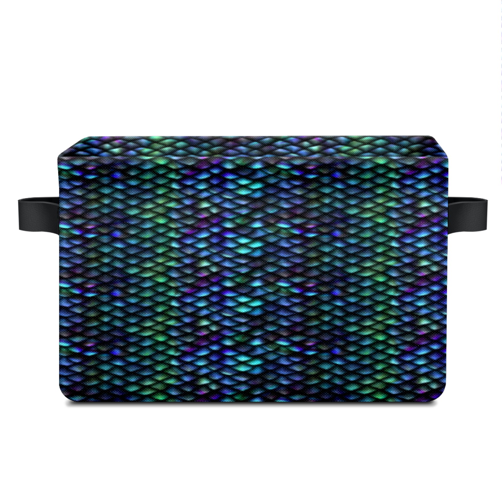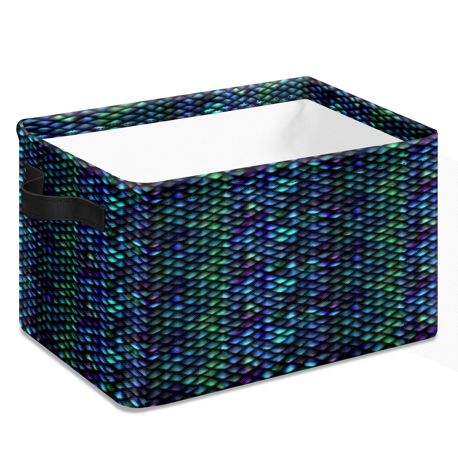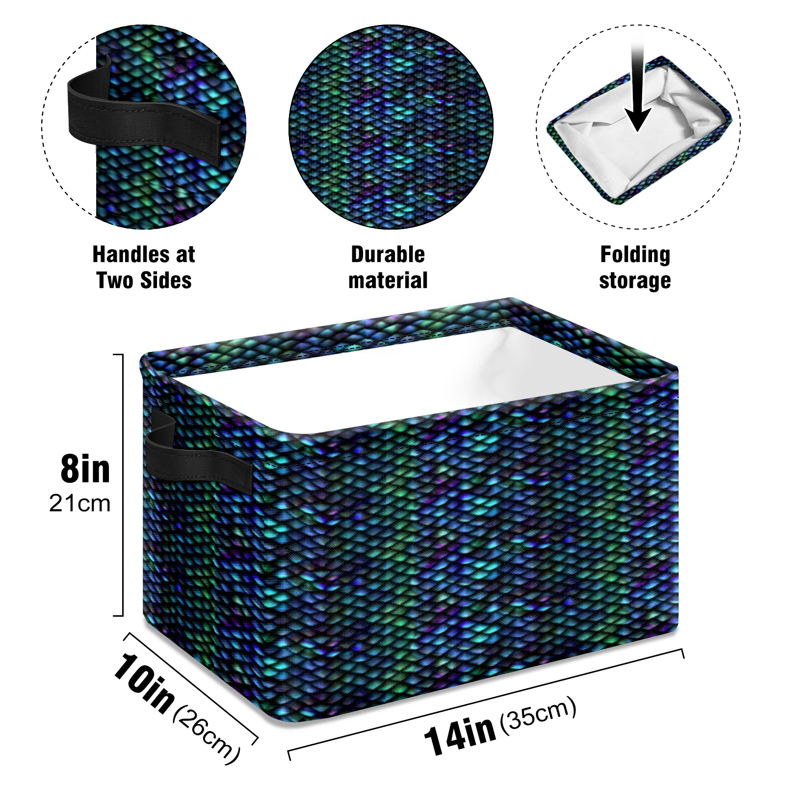 Collapsible 600D Oxford Storage Basket with 3D Blue Green Dragon Scales - Metal Frame 10"x14"x8" Reinforced Handles, Multi-Purpose Organizer