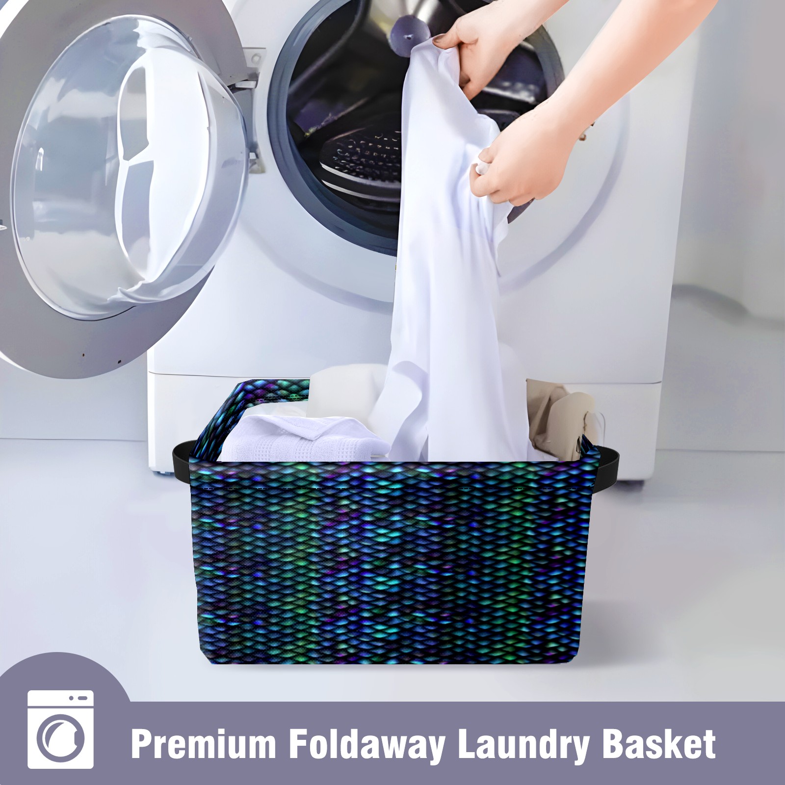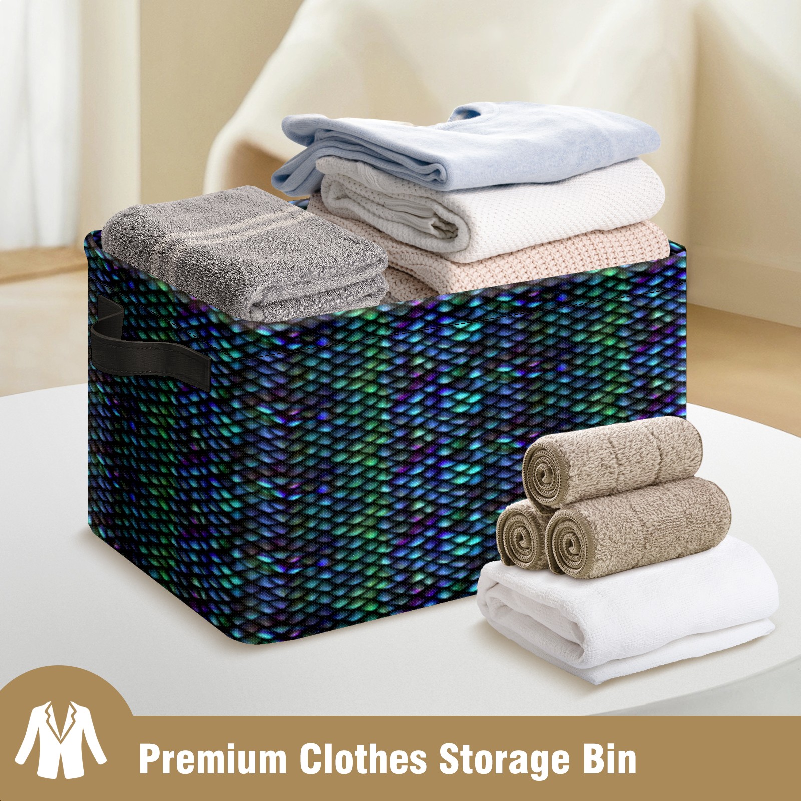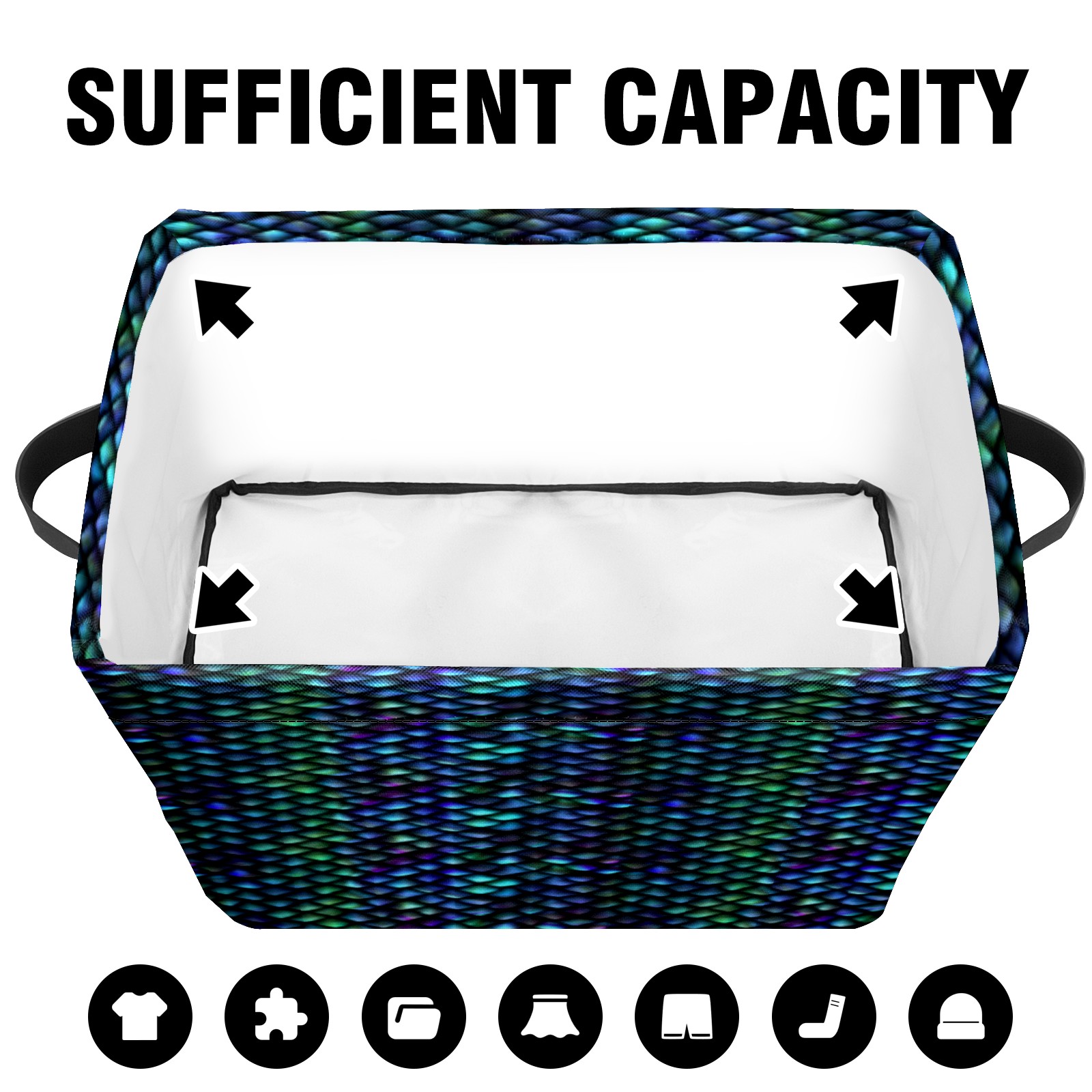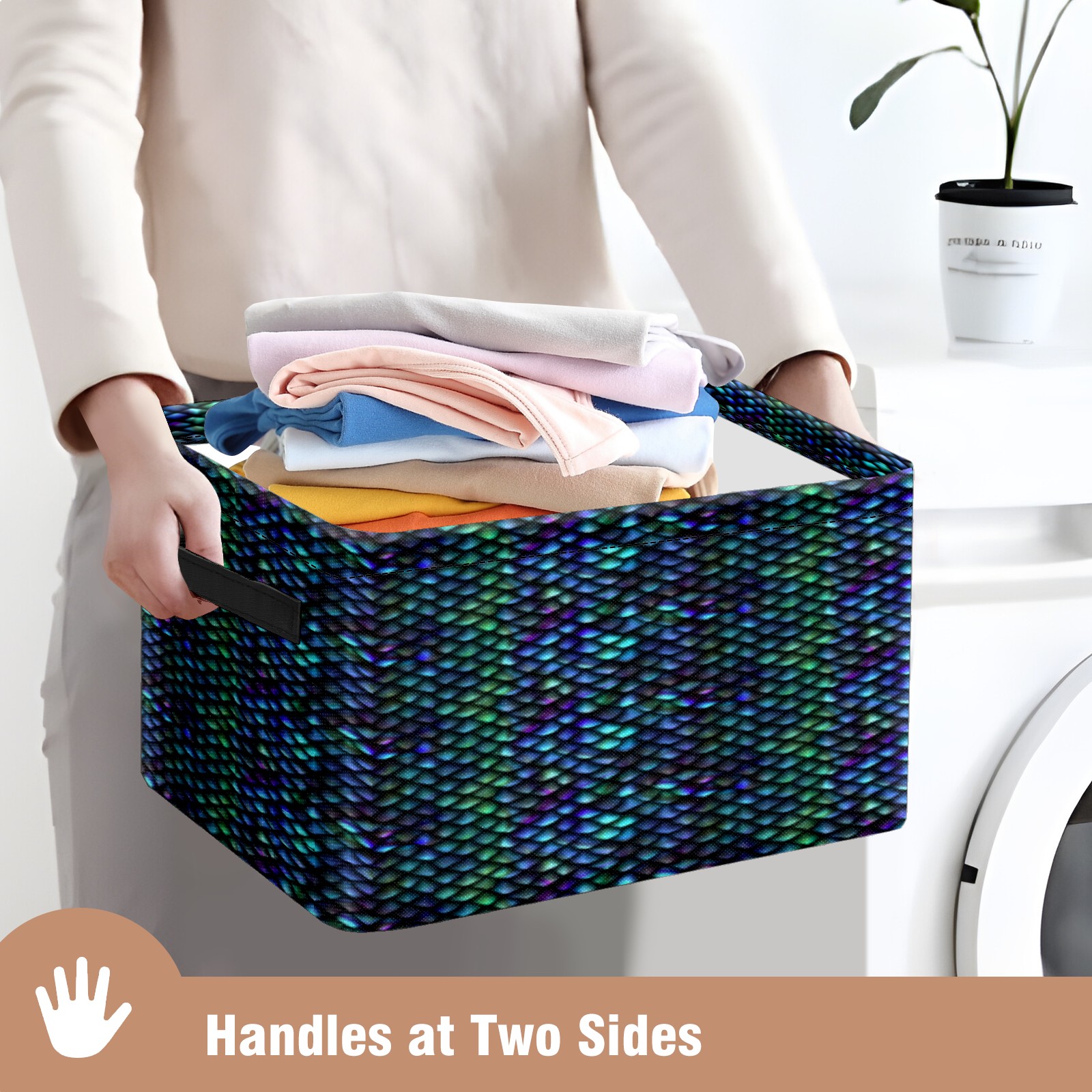 Collapsible 600D Oxford Storage Basket with 3D Blue Green Dragon Scales - Metal Frame 10"x14"x8" Reinforced Handles, Multi-Purpose Organizer