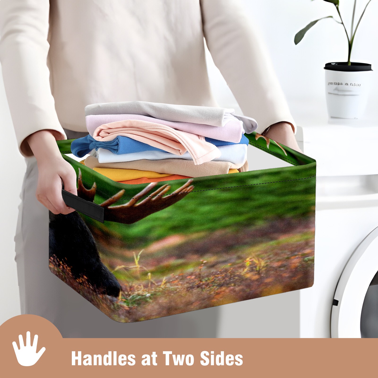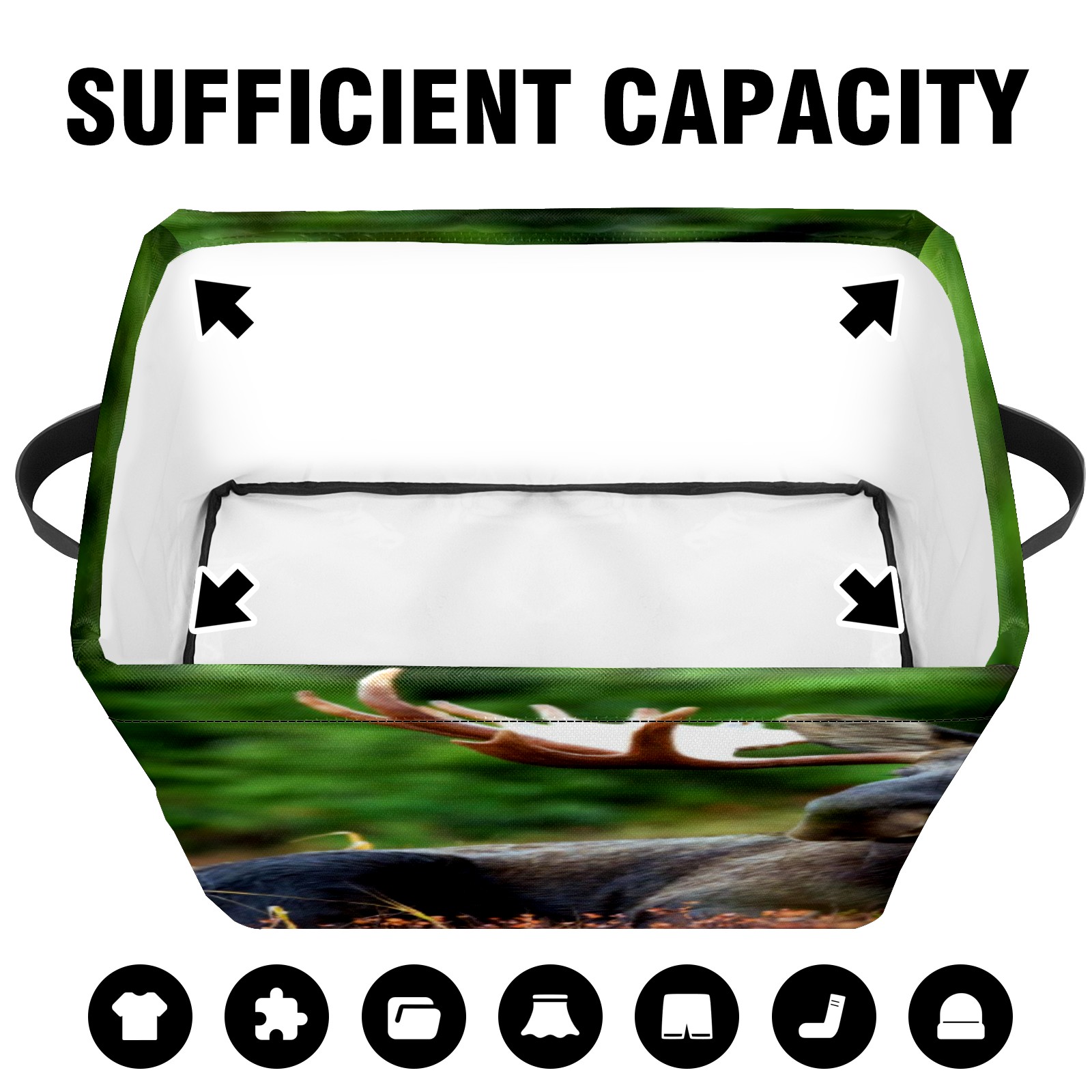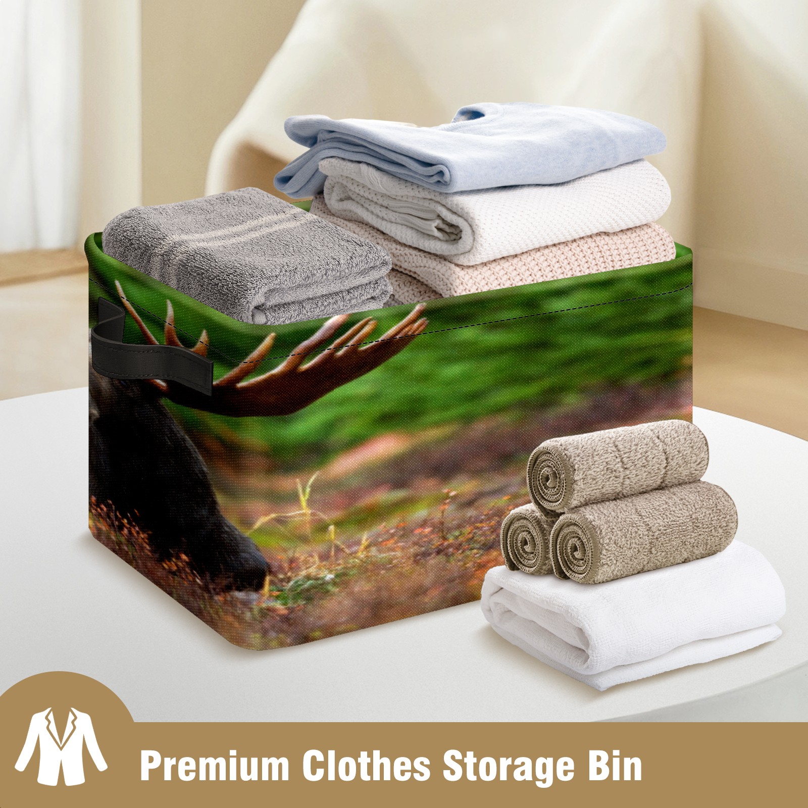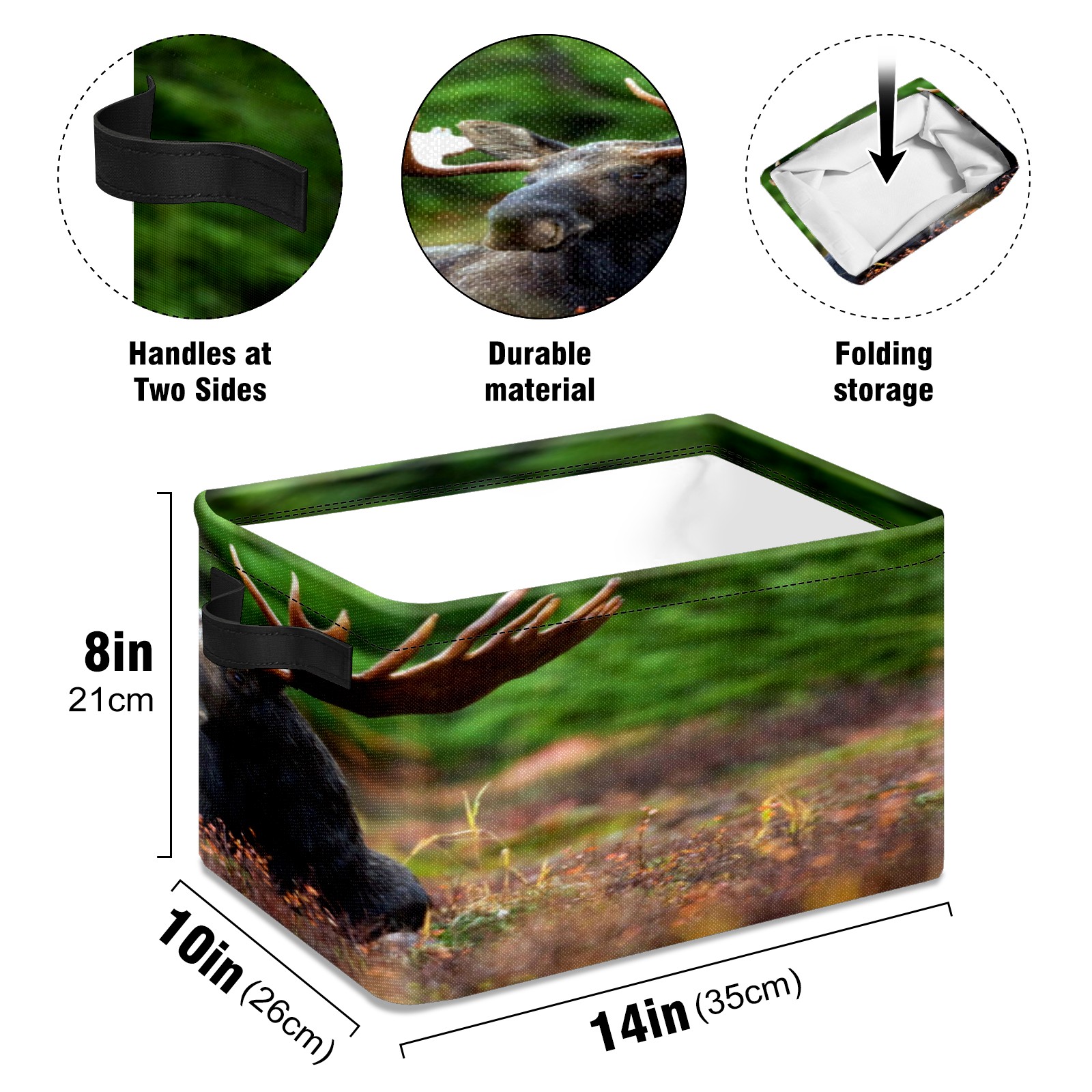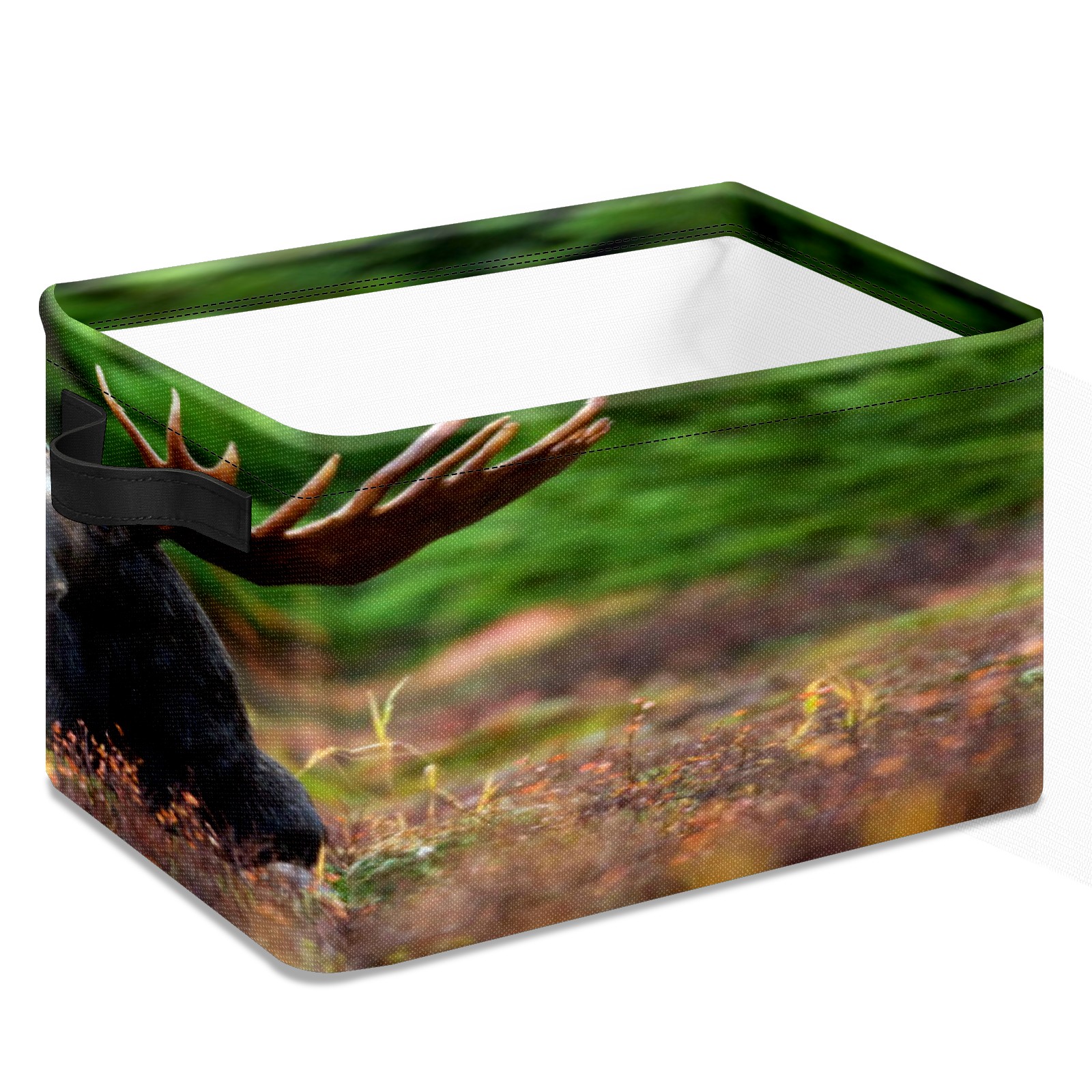 Collapsible 600D Oxford Storage Basket with Black Moose Lying On Ground - Metal Frame 10"x14"x8" Reinforced Handles, Multi-Purpose Organizer