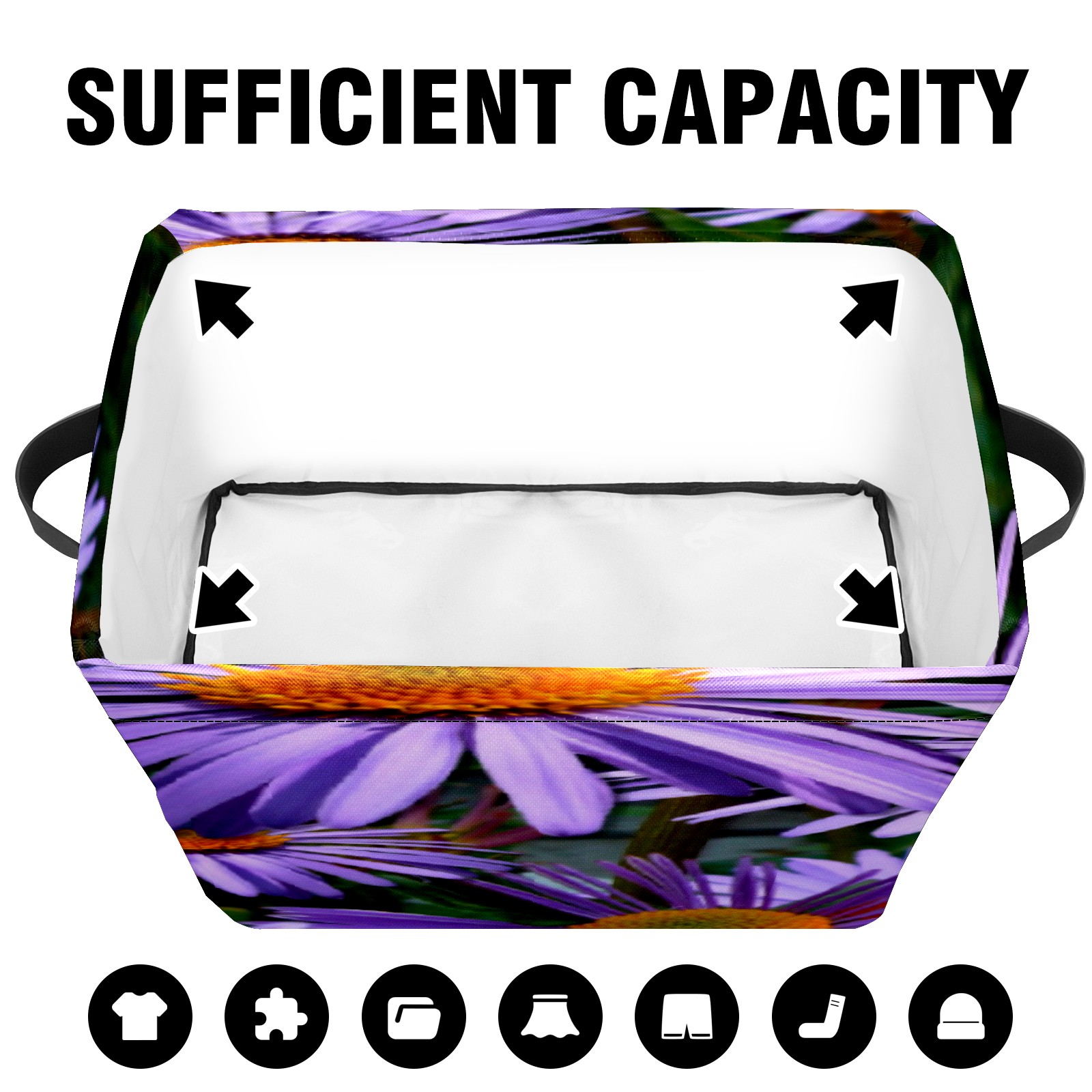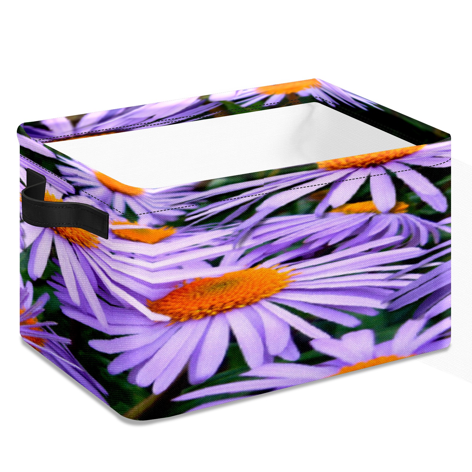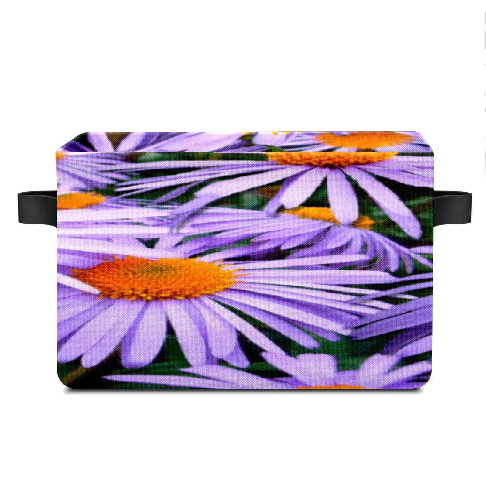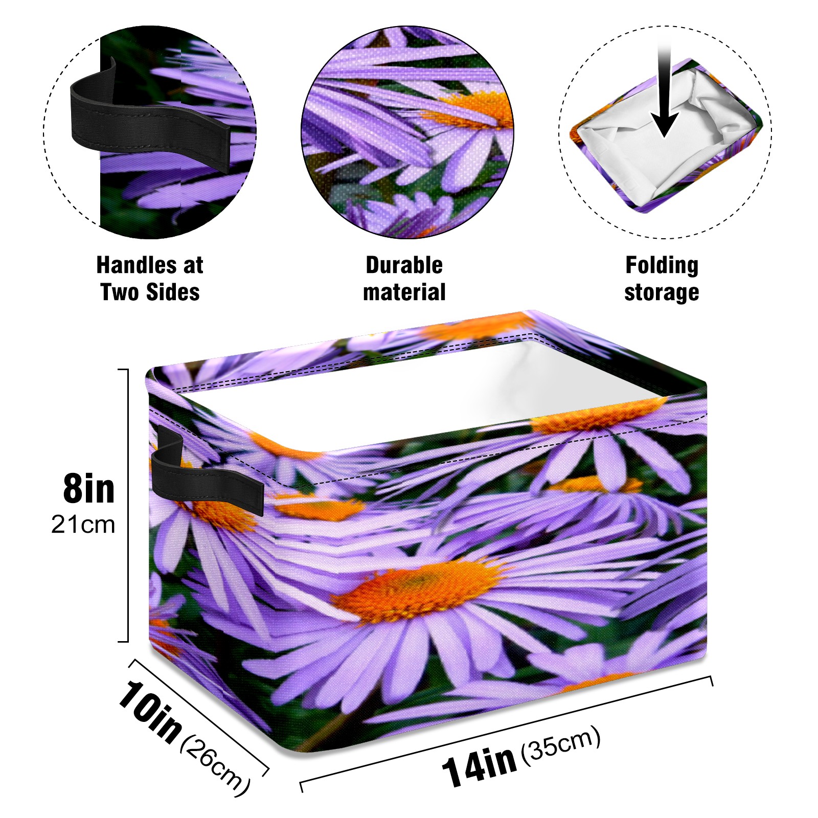 Collapsible 600D Oxford Storage Basket with Flowers - Metal Frame 10"x14"x8" Reinforced Handles, Multi-Purpose Organizer