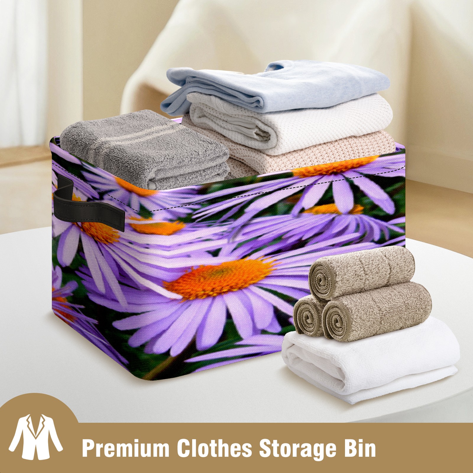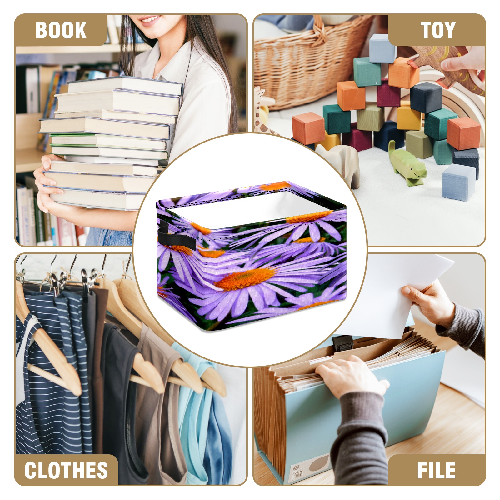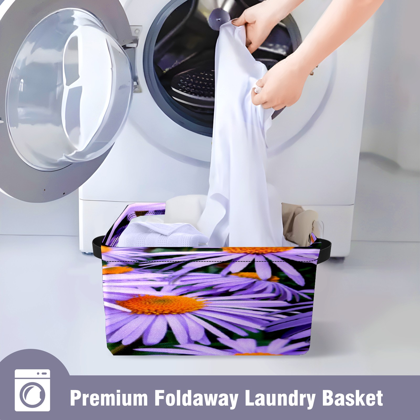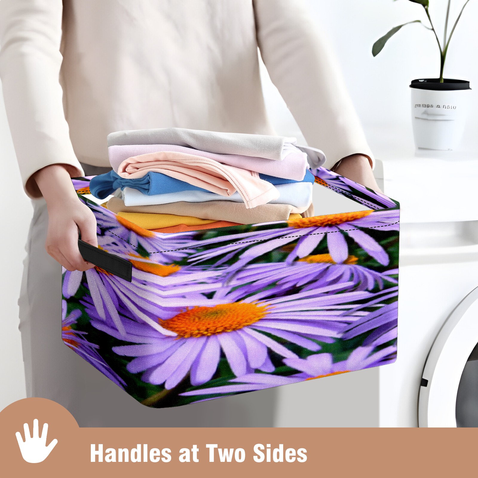 Collapsible 600D Oxford Storage Basket with Flowers - Metal Frame 10"x14"x8" Reinforced Handles, Multi-Purpose Organizer
