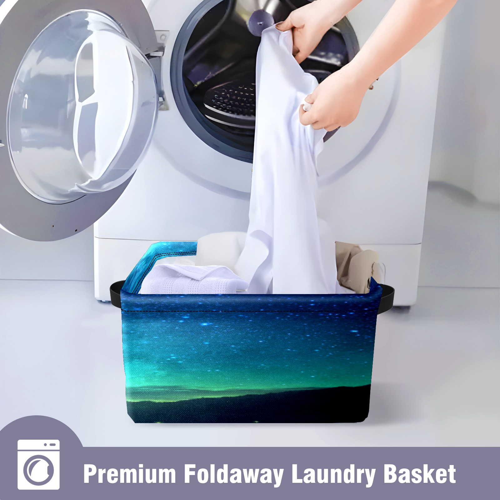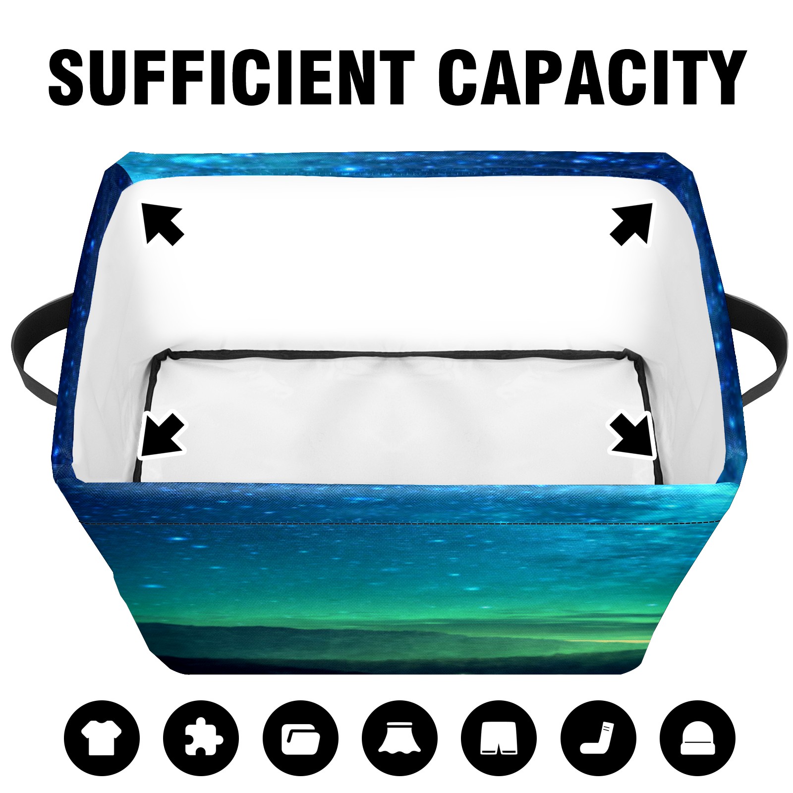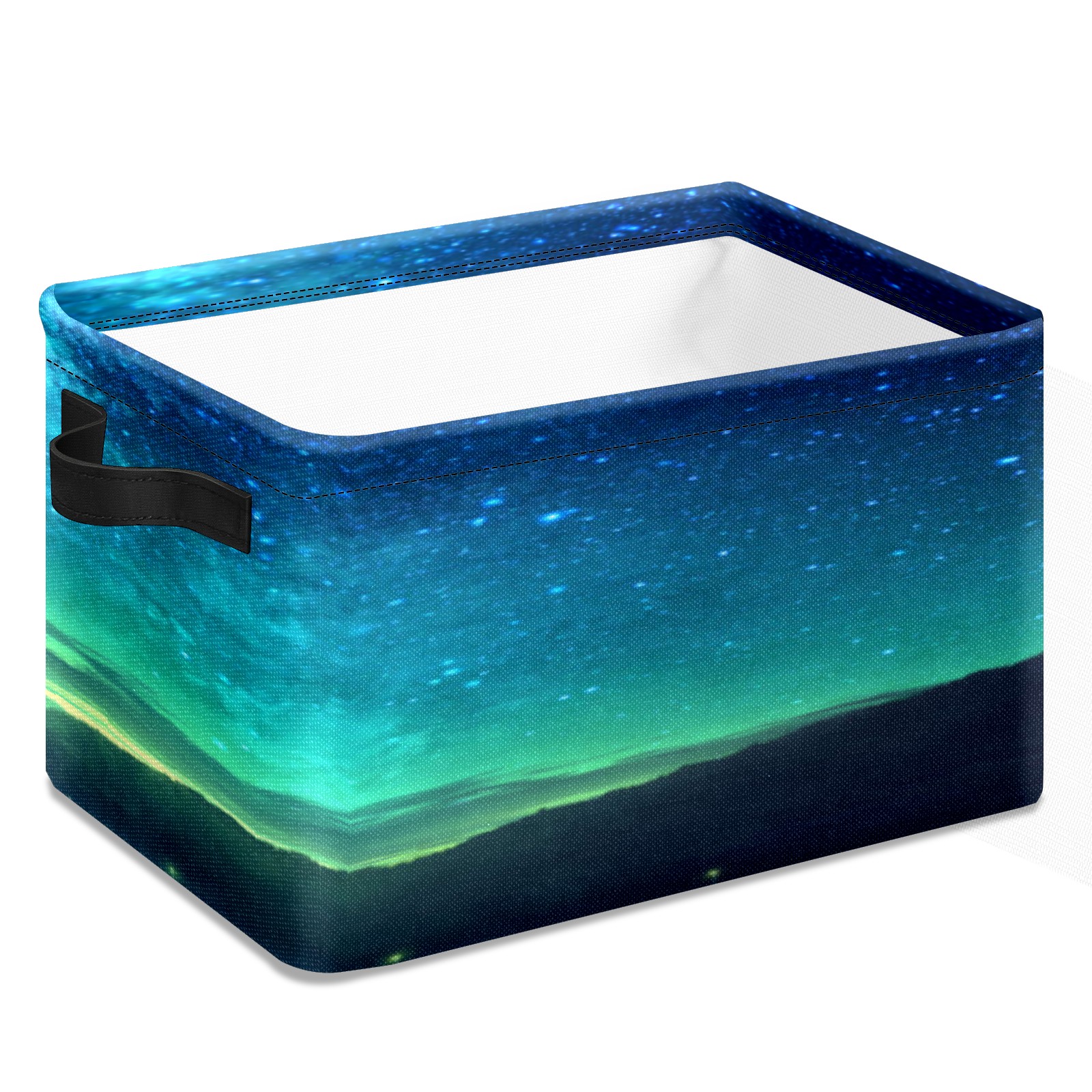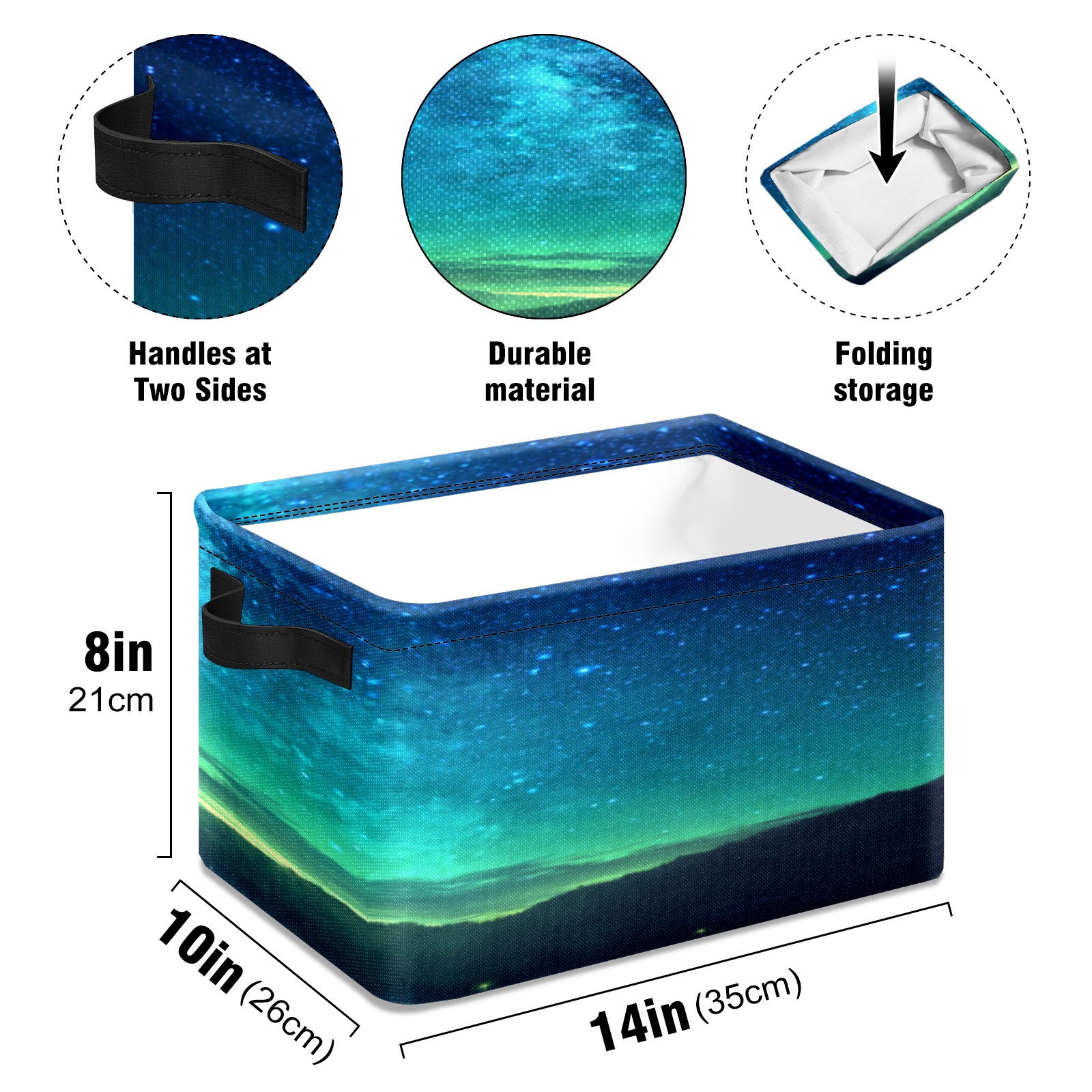 Collapsible 600D Oxford Storage Basket with Starry Sky - Metal Frame 10"x14"x8" Reinforced Handles, Multi-Purpose Organizer