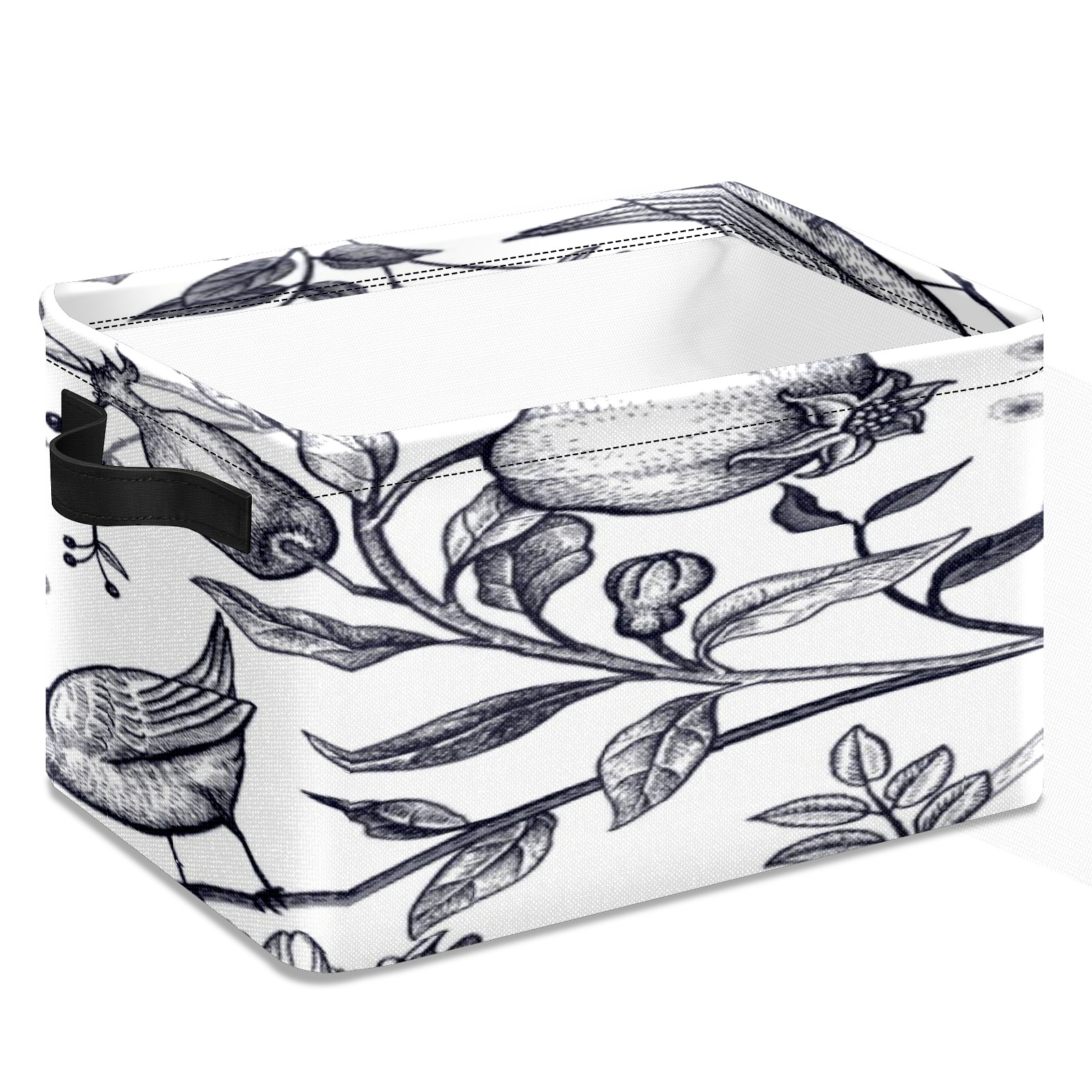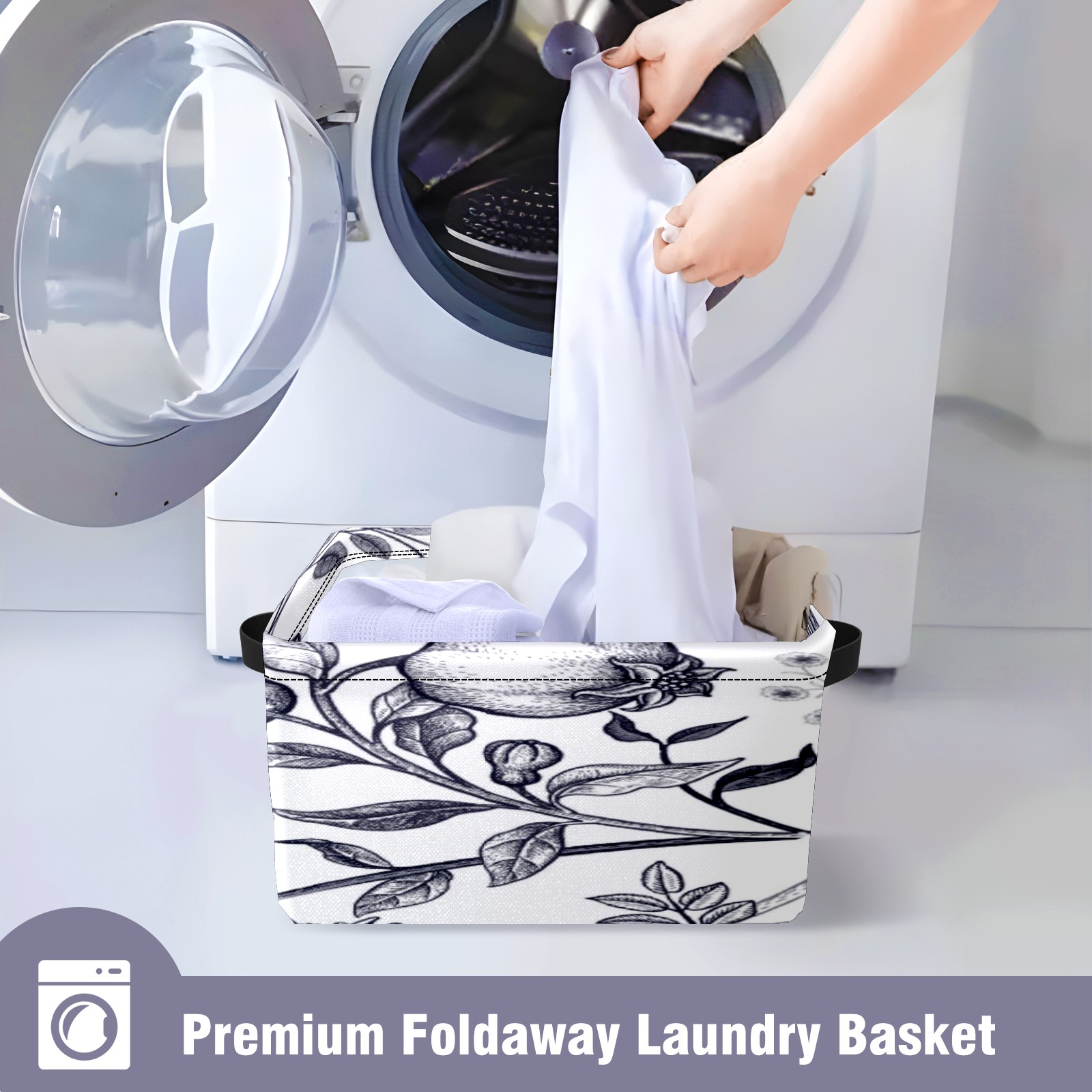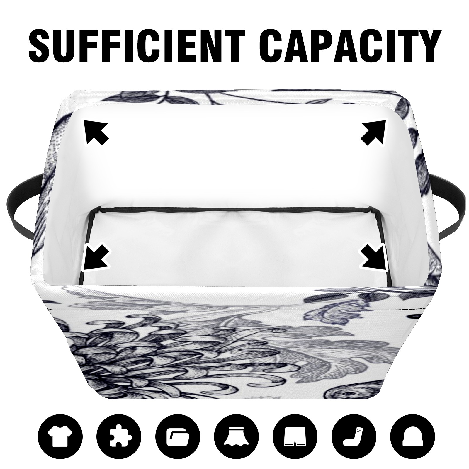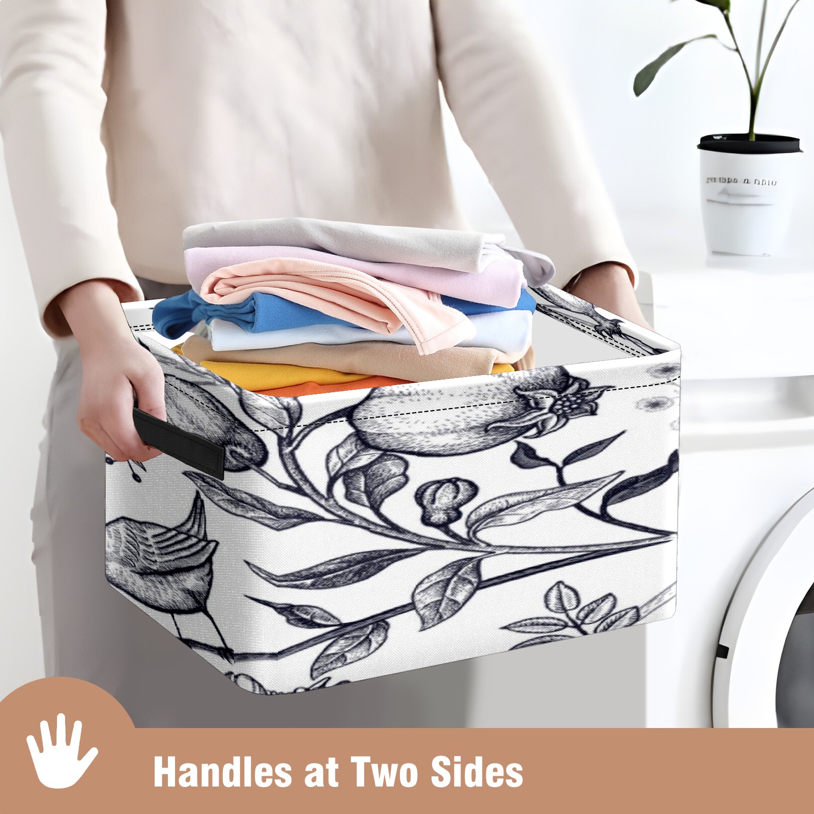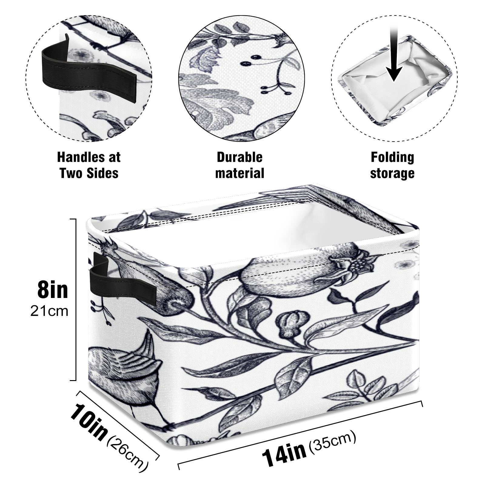Collapsible 600D Oxford Storage Basket with Rose Flower - Metal Frame 10"x14"x8" Reinforced Handles, Multi-Purpose Organizer