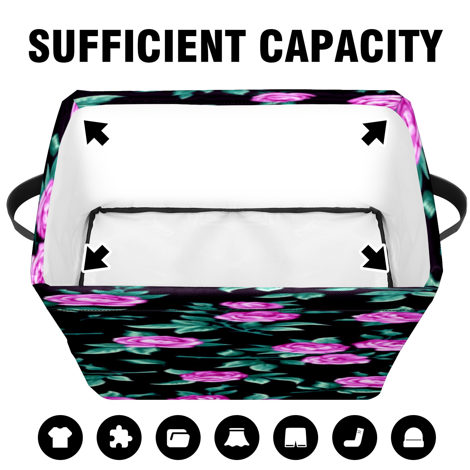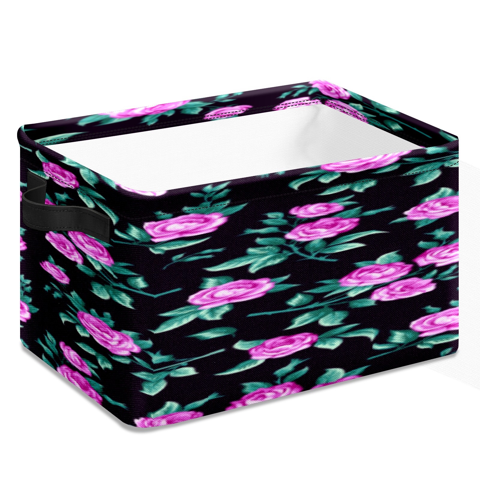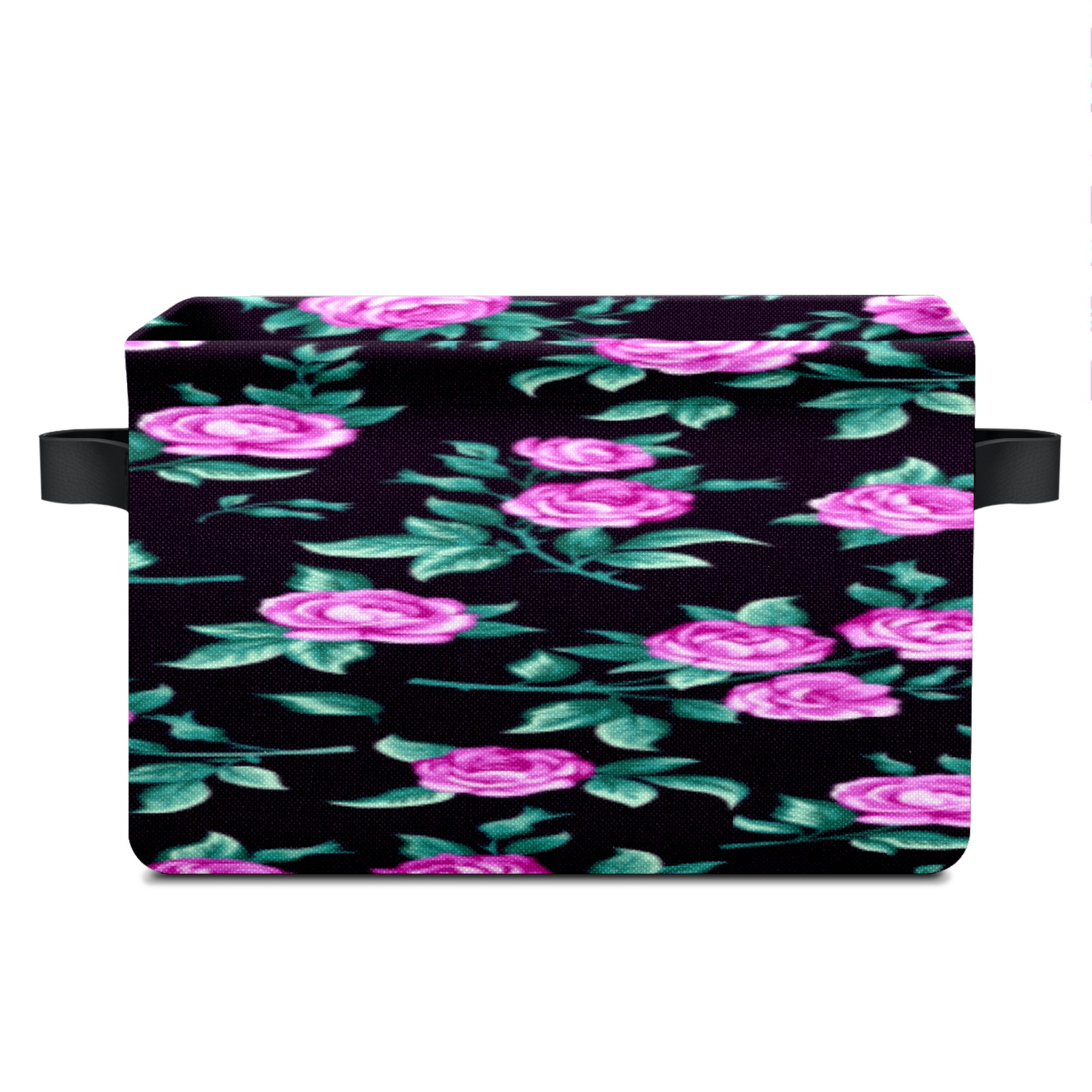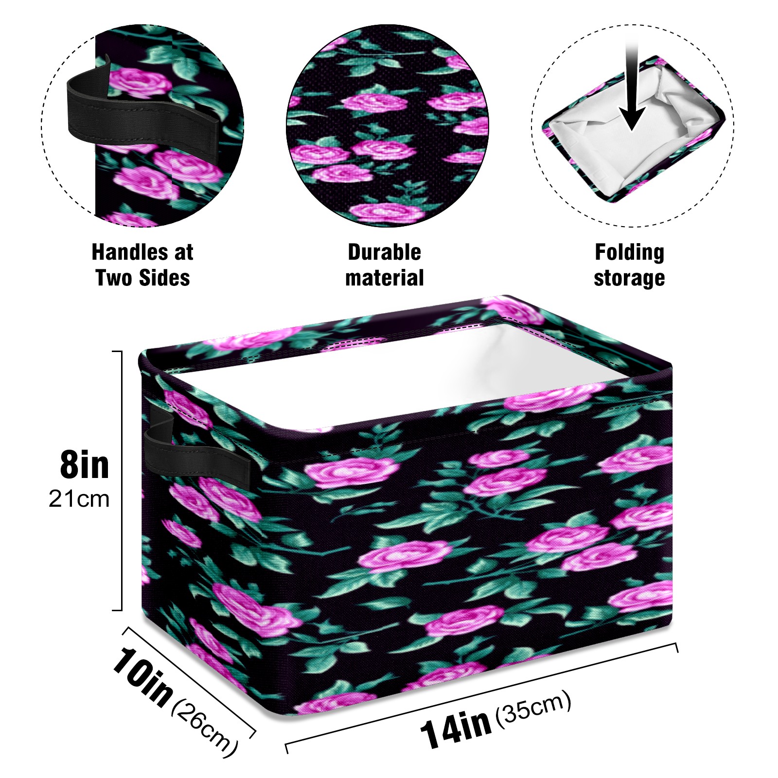 Collapsible 600D Oxford Storage Basket with Floral - Metal Frame 10"x14"x8" Reinforced Handles, Multi-Purpose Organizer