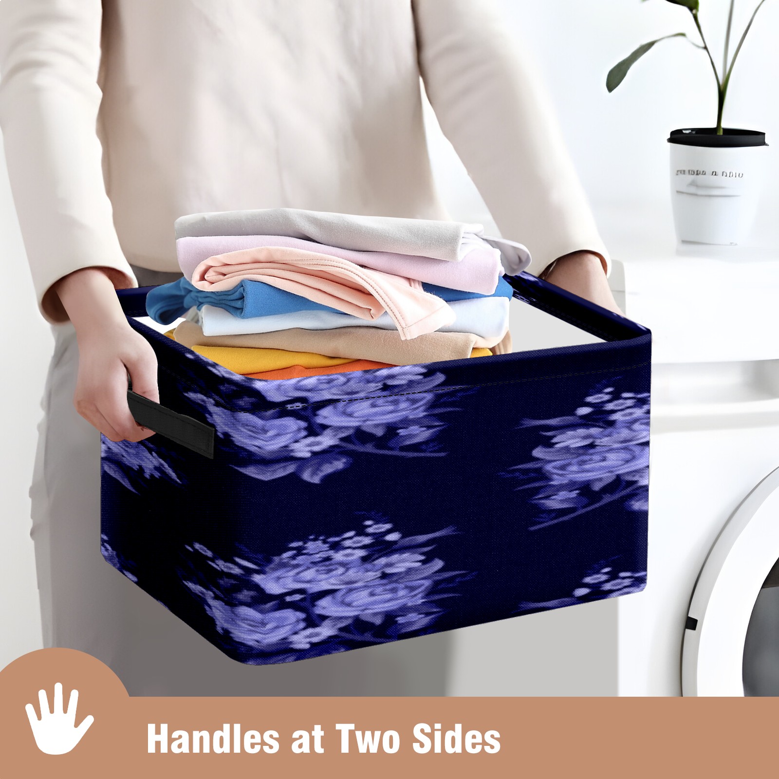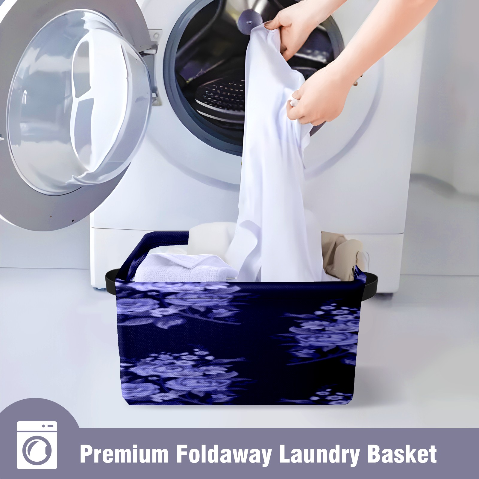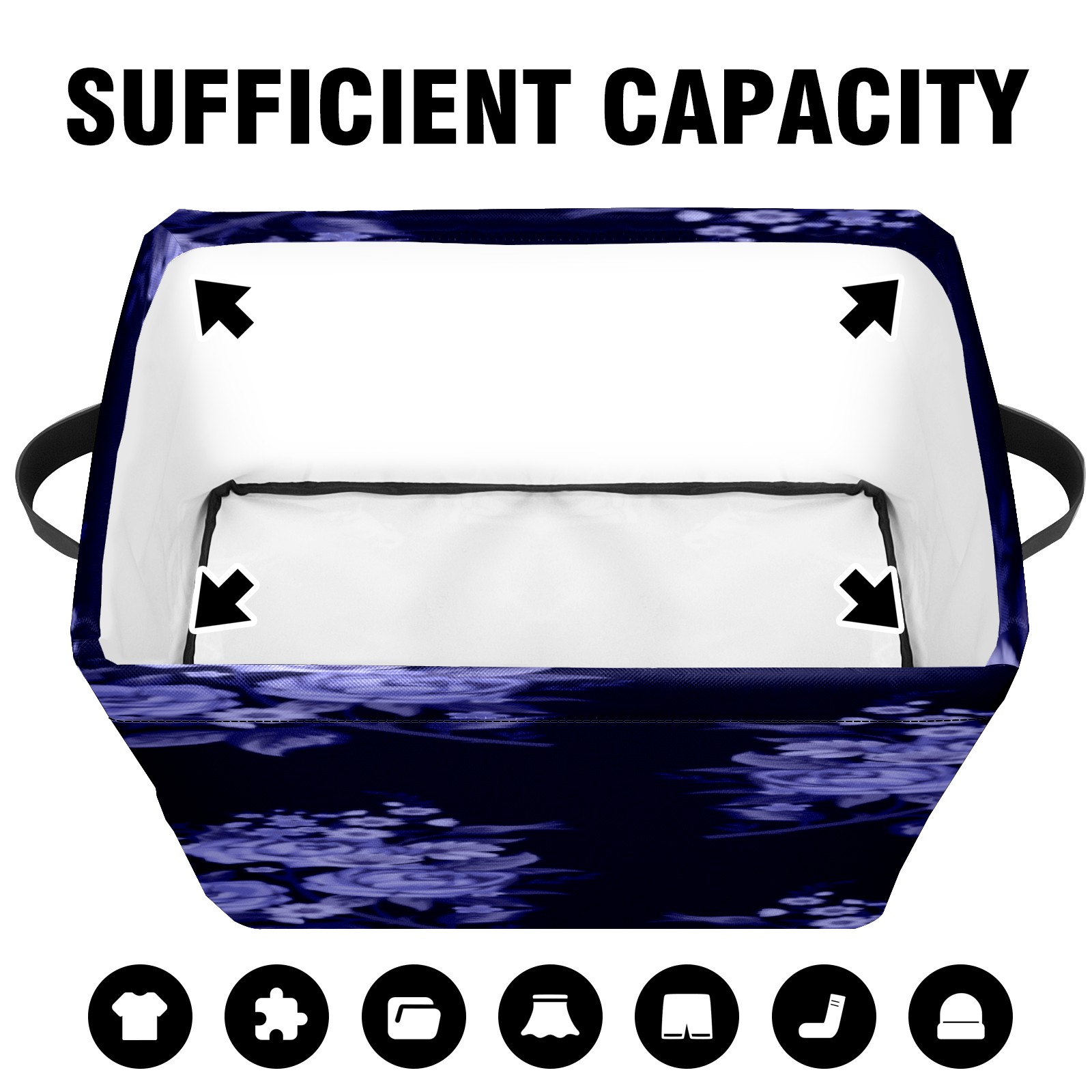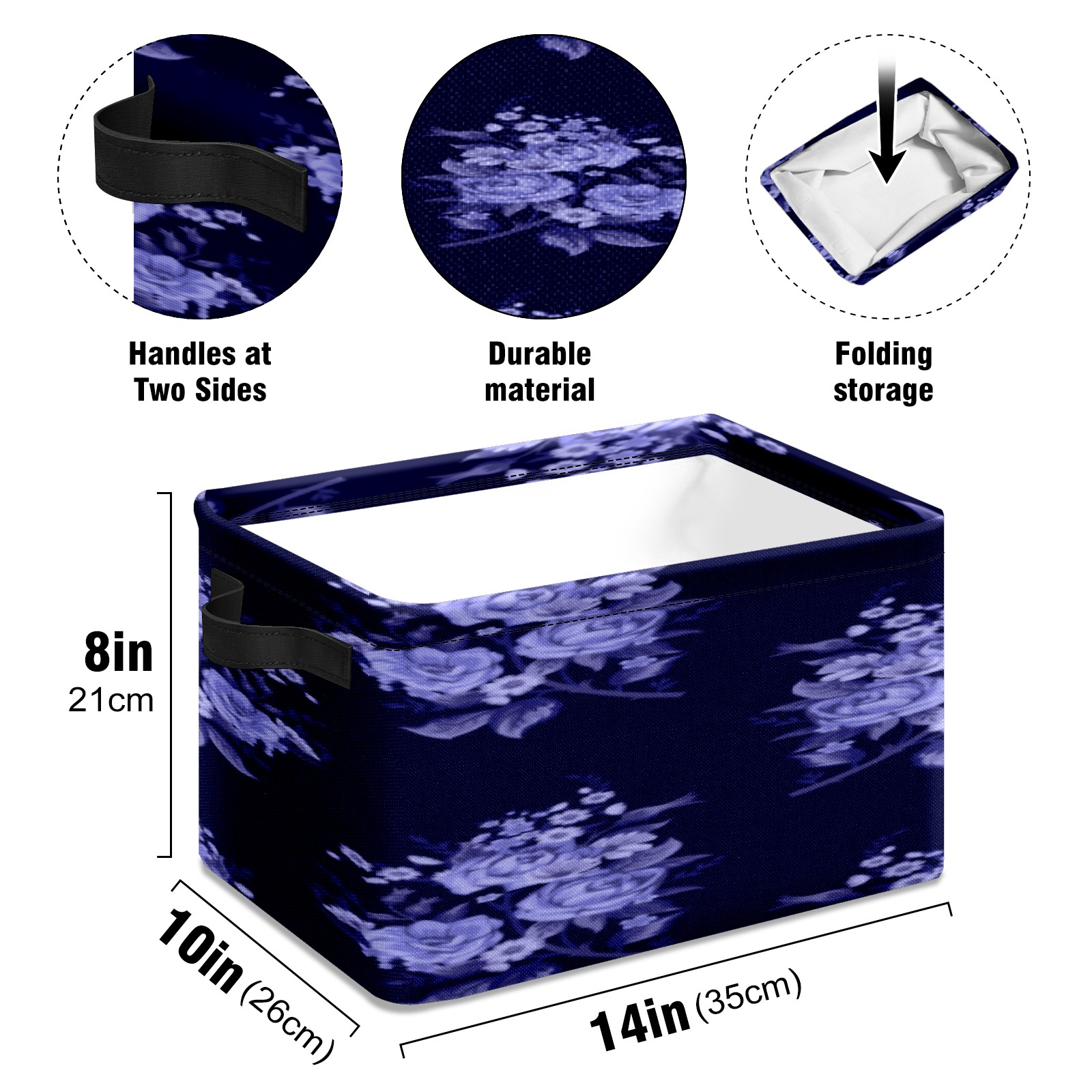 Collapsible 600D Oxford Storage Basket with Purple Background - Metal Frame 10"x14"x8" Reinforced Handles, Multi-Purpose Organizer