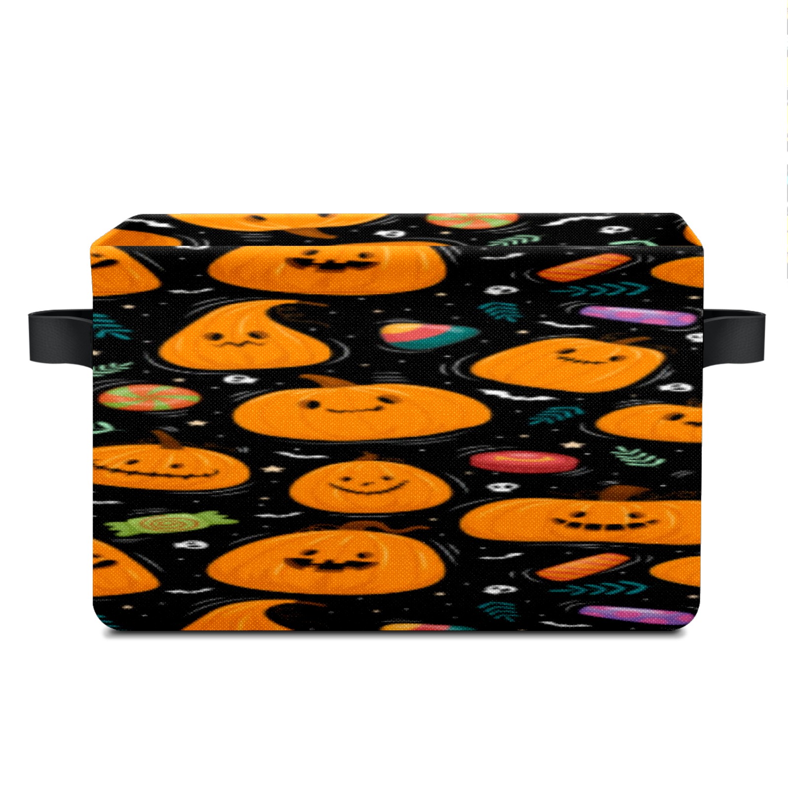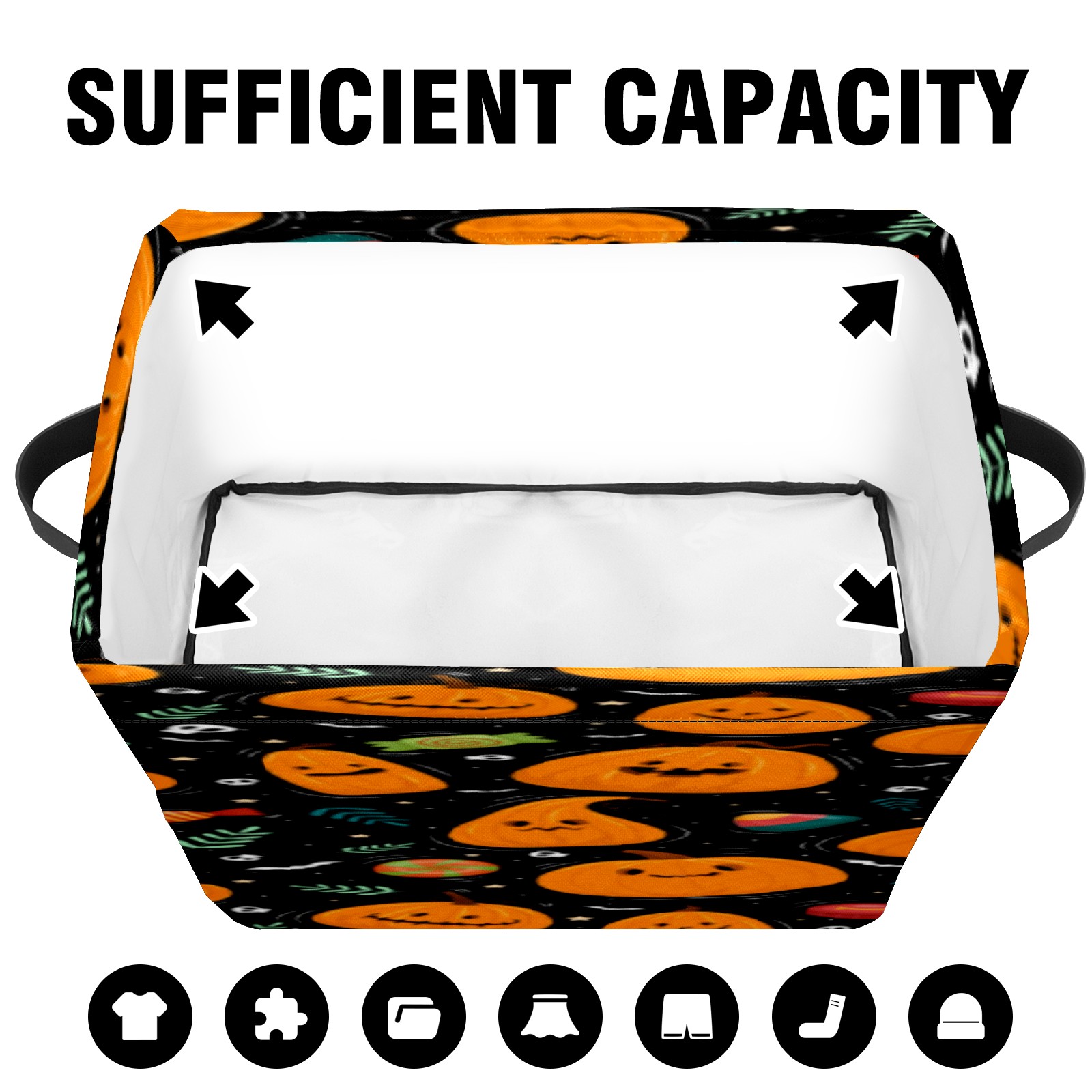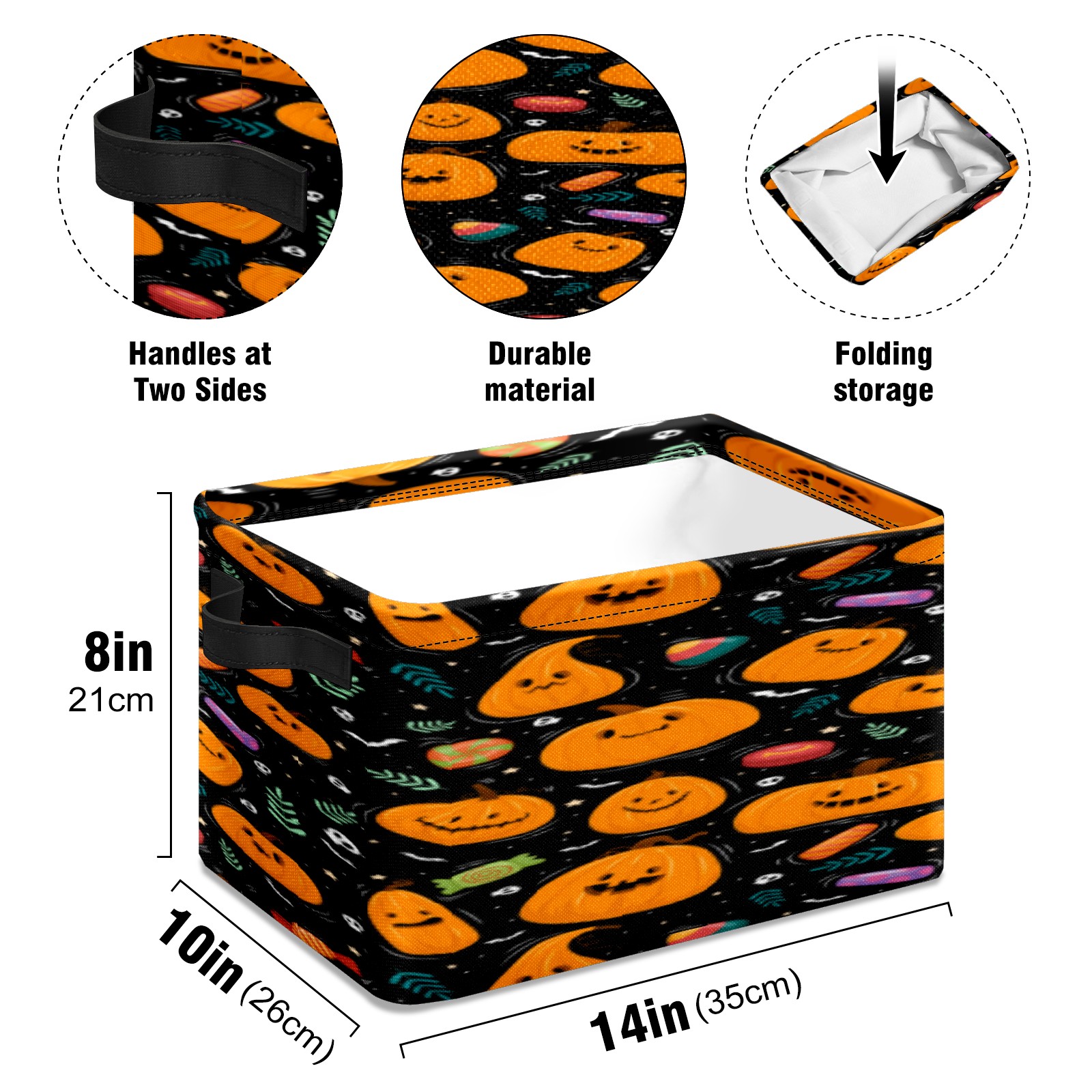 Collapsible 600D Oxford Storage Basket with Pumpkin - Metal Frame 10"x14"x8" Reinforced Handles, Multi-Purpose Organizer
