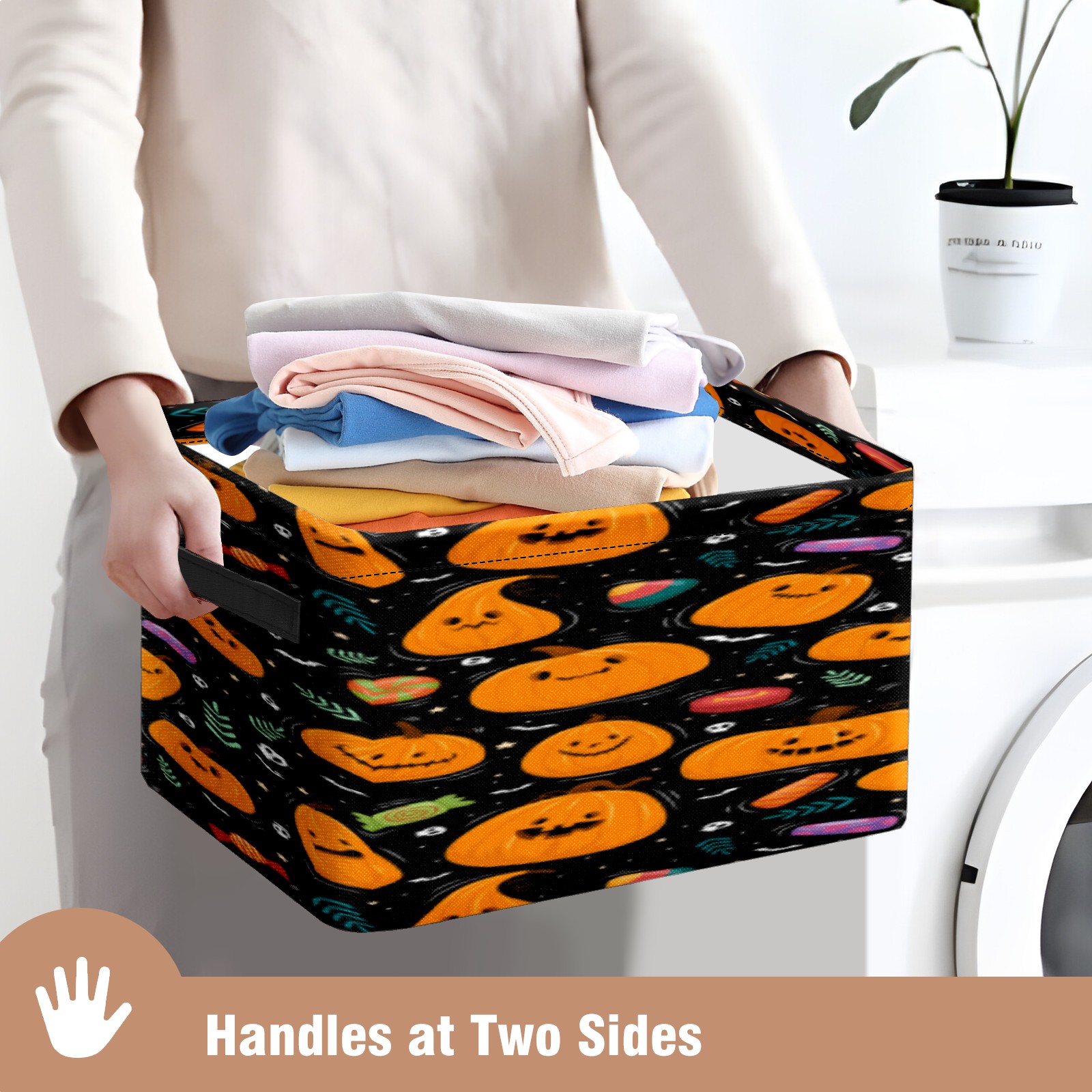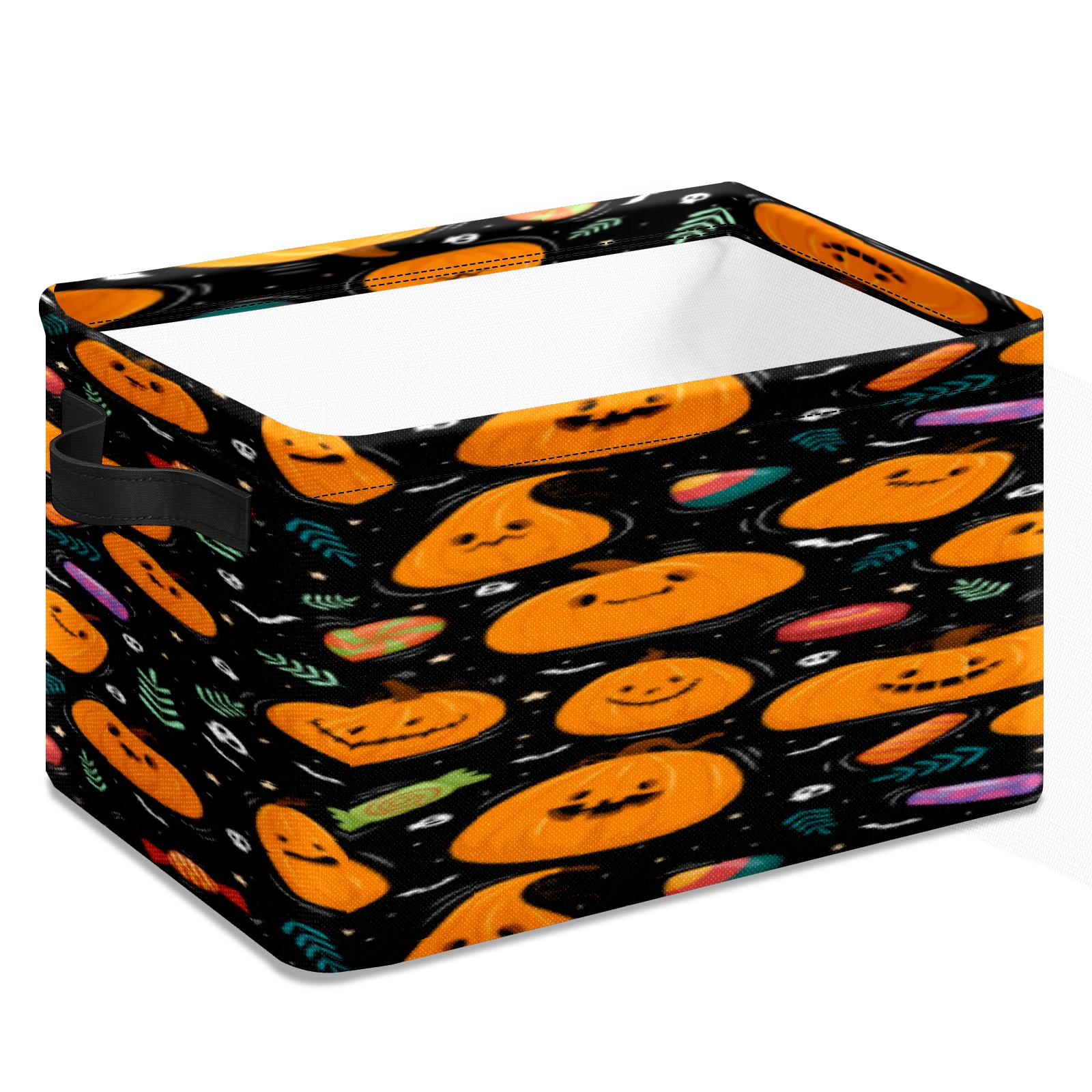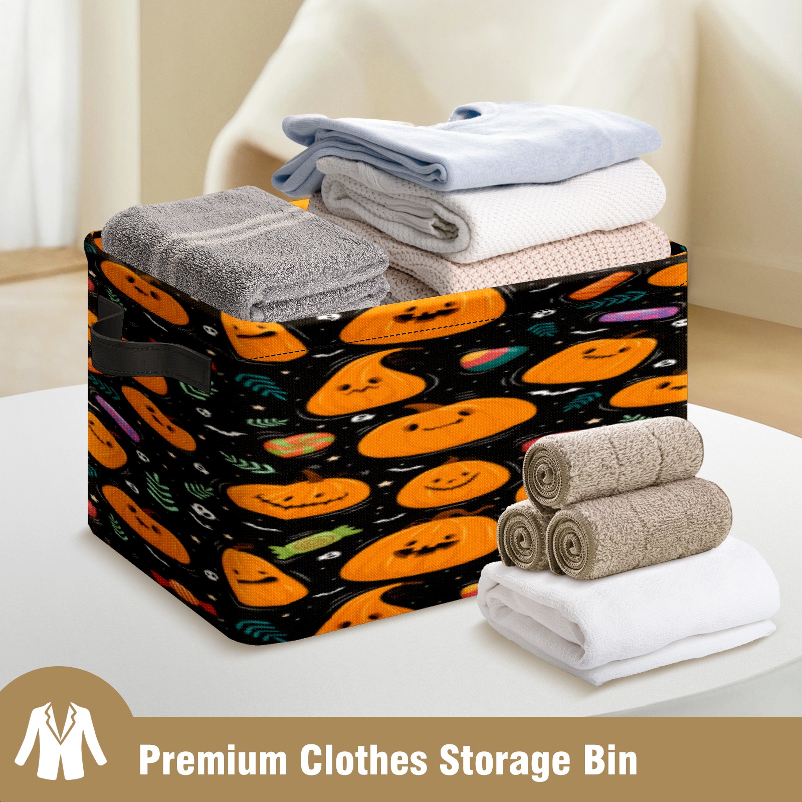 Collapsible 600D Oxford Storage Basket with Pumpkin - Metal Frame 10"x14"x8" Reinforced Handles, Multi-Purpose Organizer