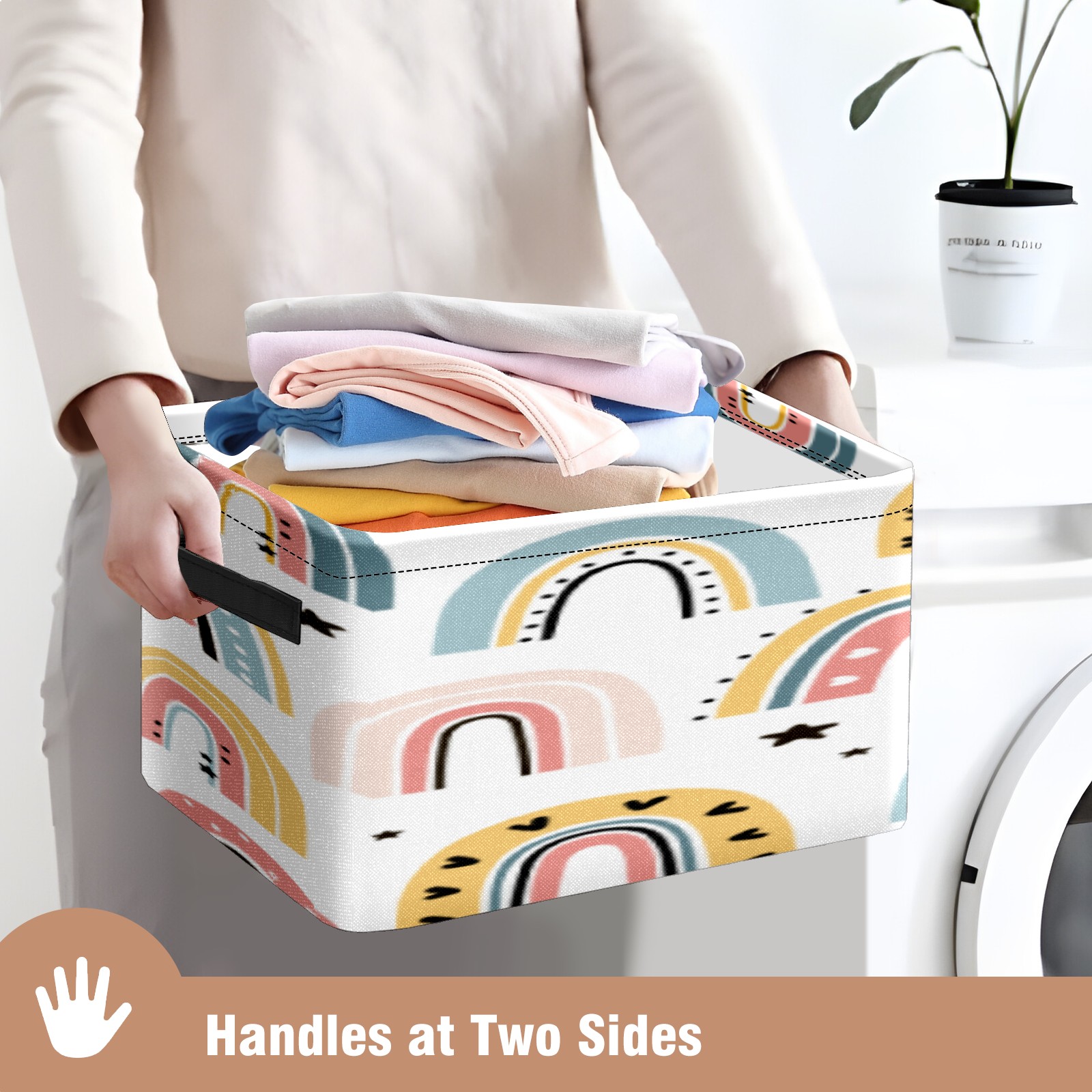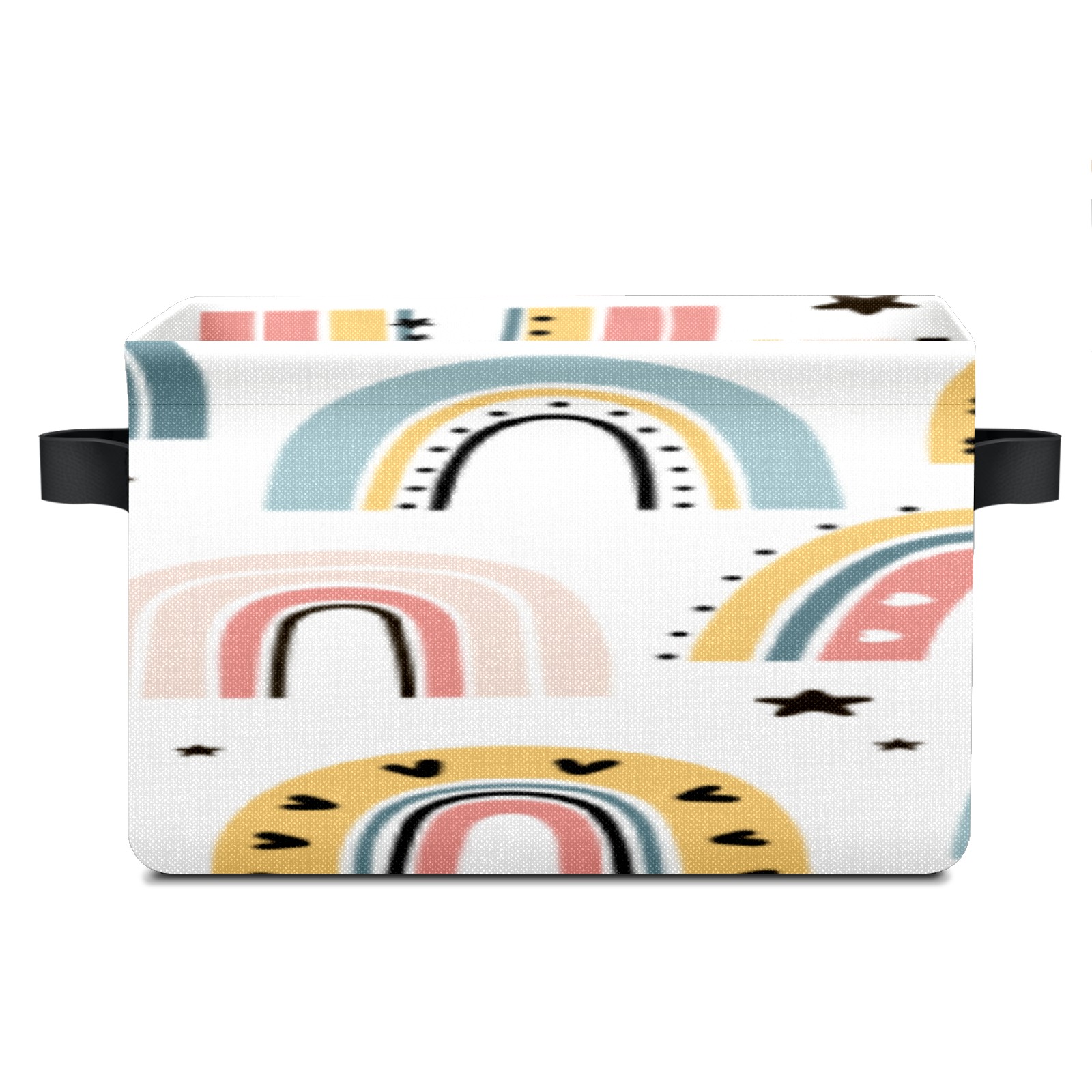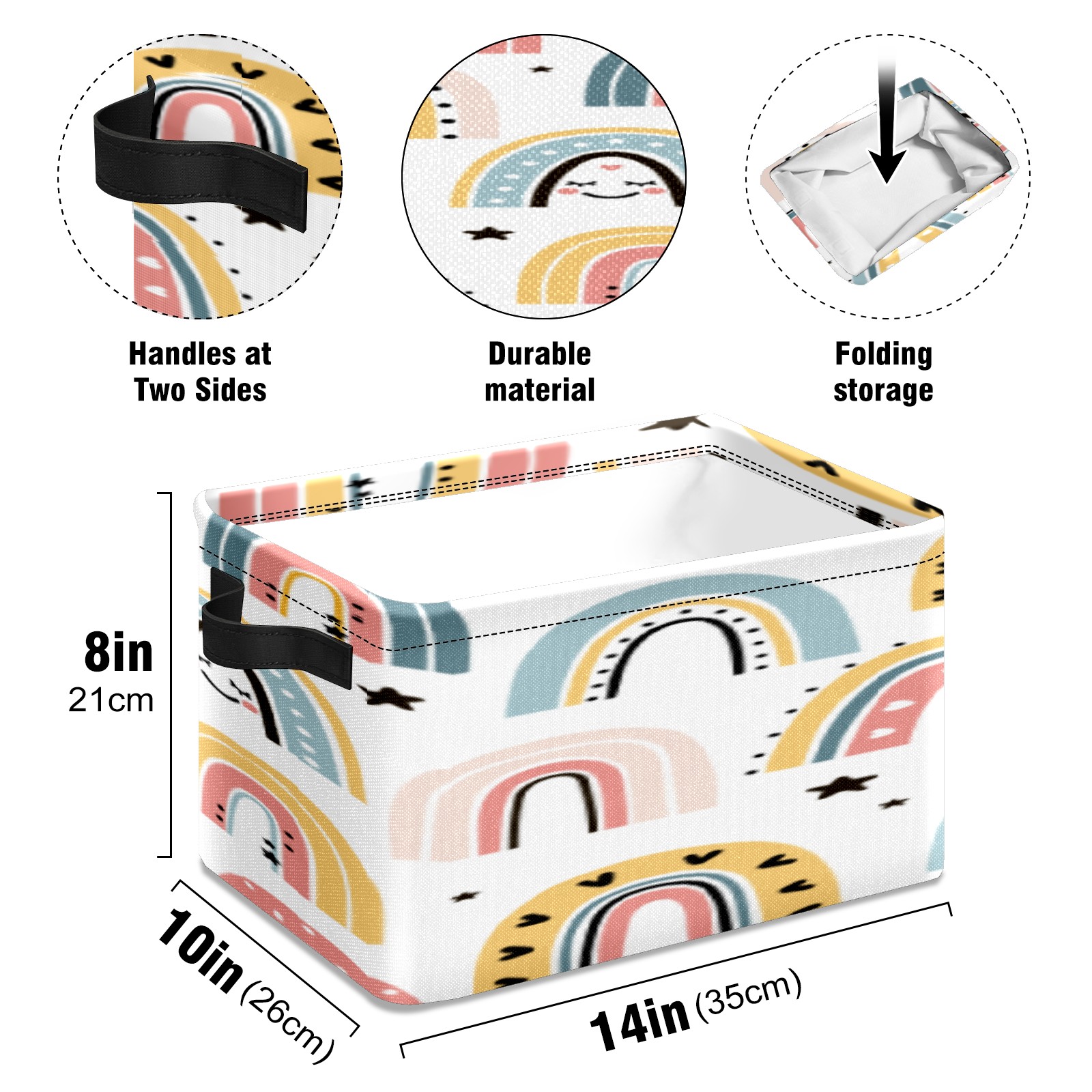 Collapsible 600D Oxford Storage Basket with Boho Rainbow - Metal Frame 10"x14"x8" Reinforced Handles, Multi-Purpose Organizer