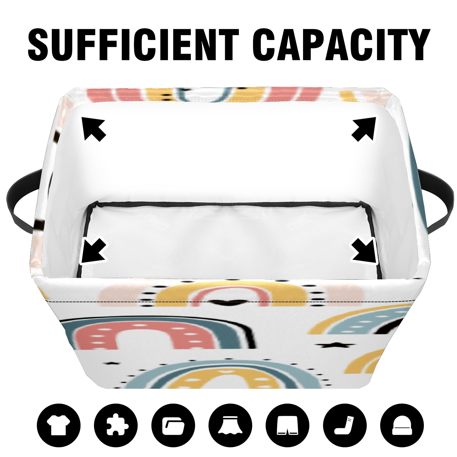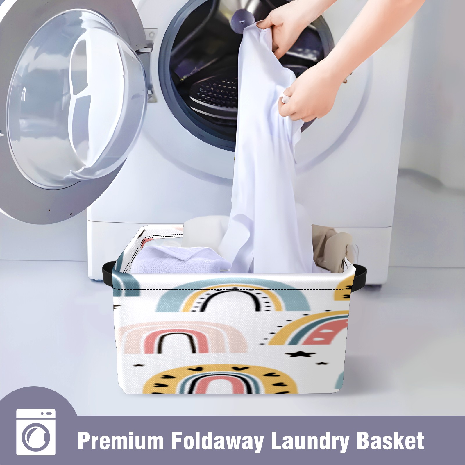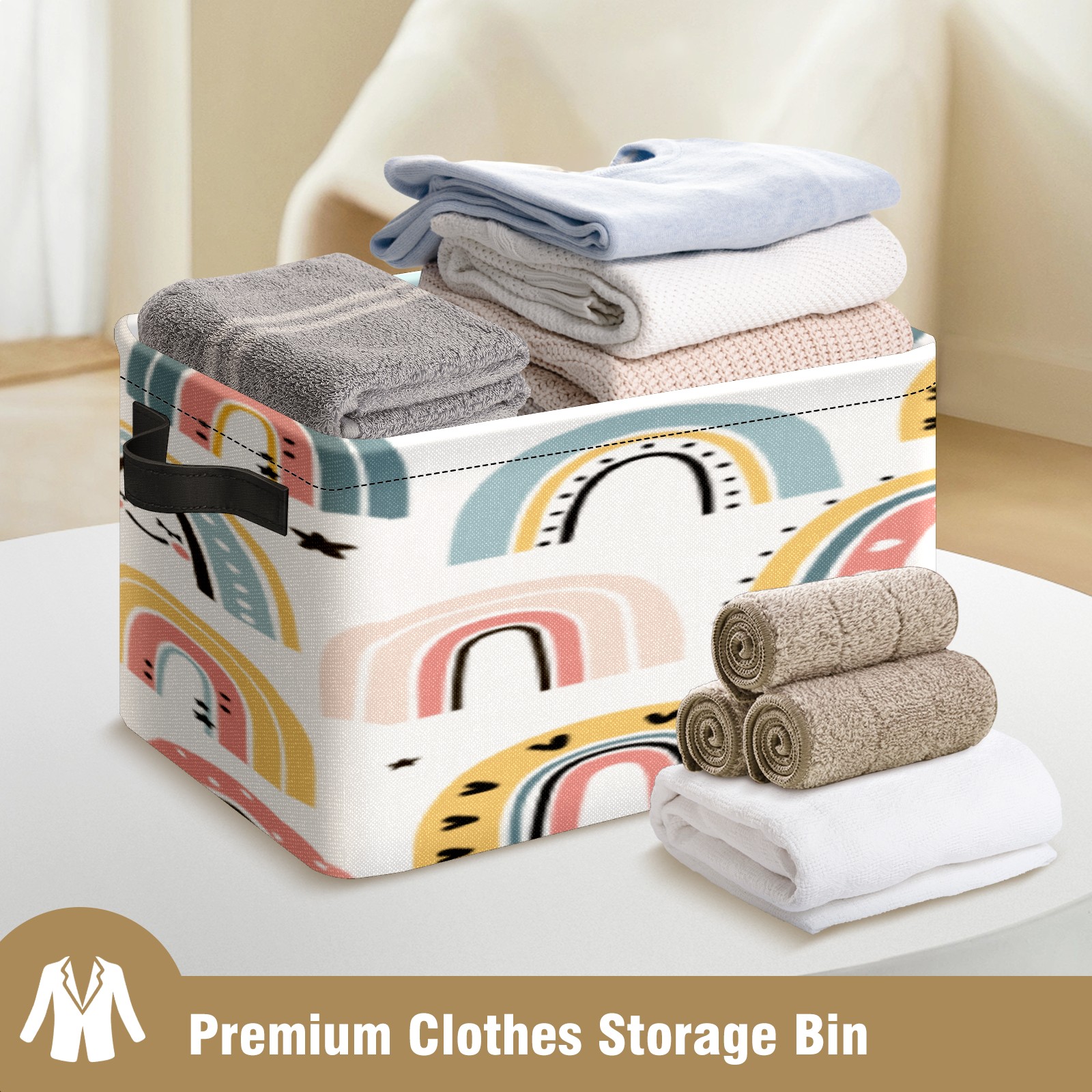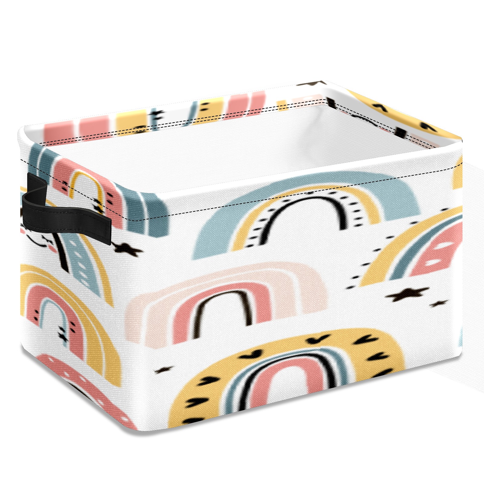 Collapsible 600D Oxford Storage Basket with Boho Rainbow - Metal Frame 10"x14"x8" Reinforced Handles, Multi-Purpose Organizer