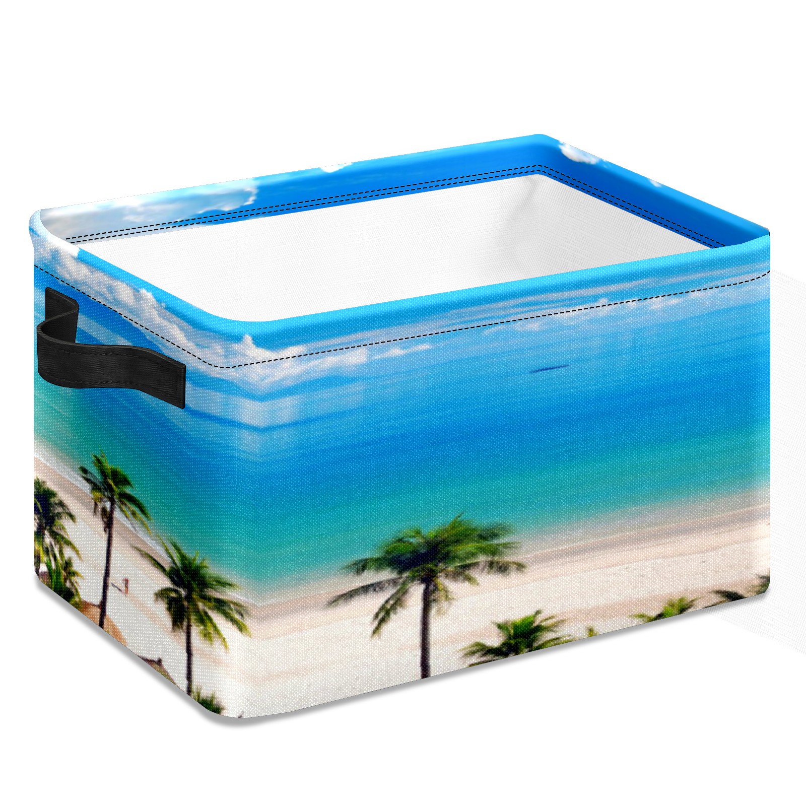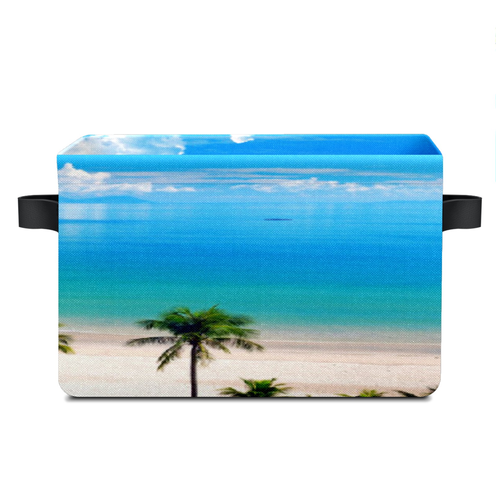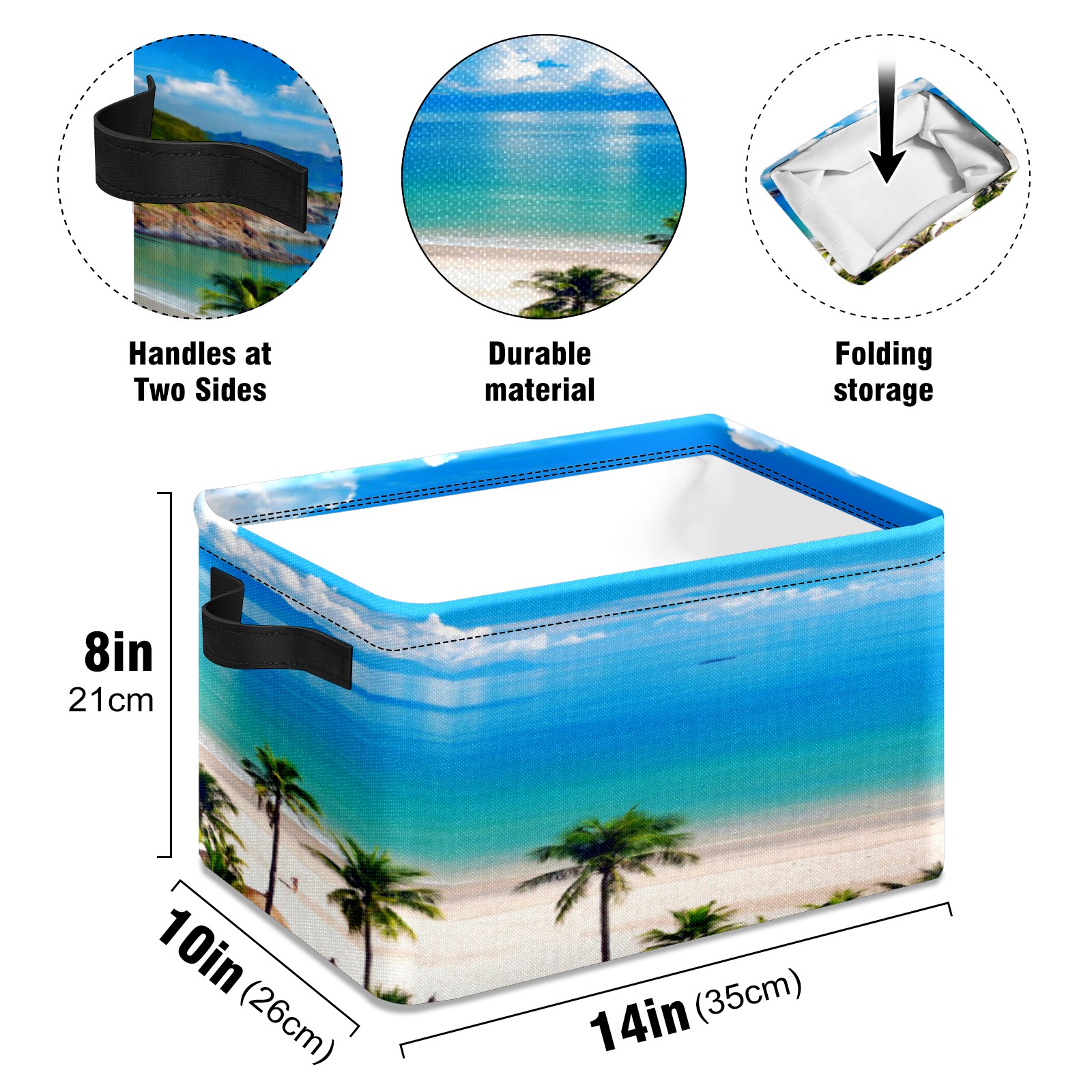 Collapsible 600D Oxford Storage Basket with Tropical Beach Blue Sea - Metal Frame 10"x14"x8" Reinforced Handles, Multi-Purpose Organizer