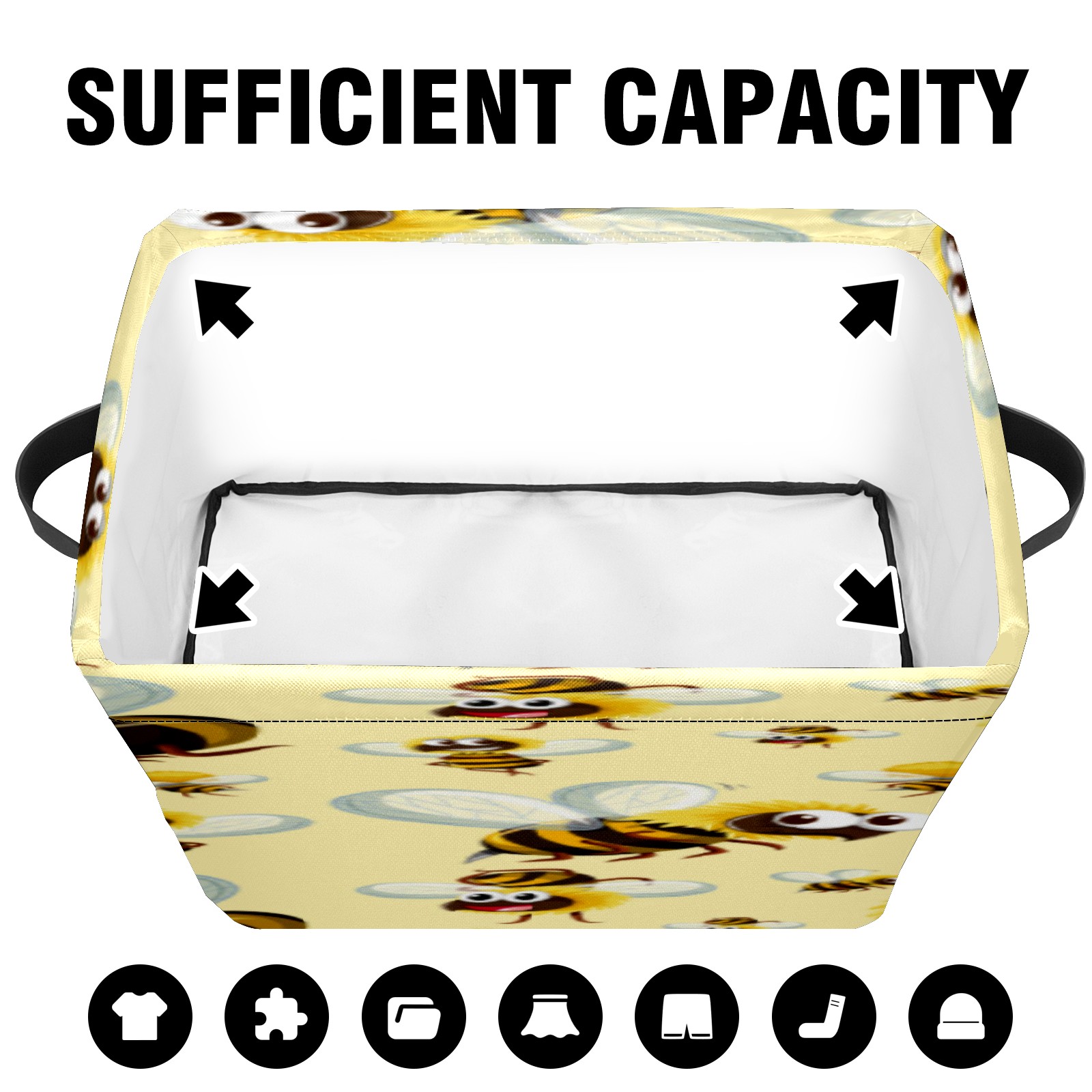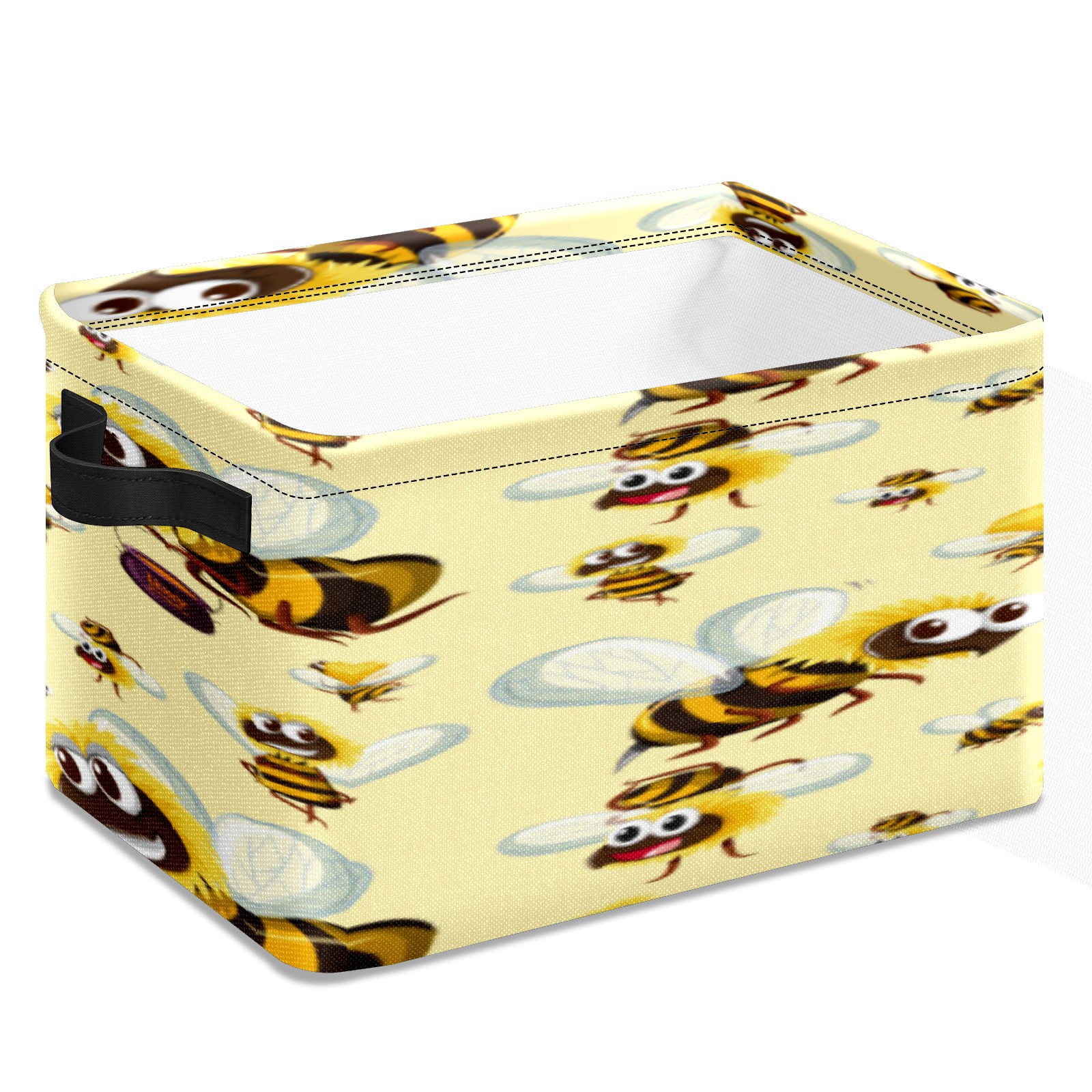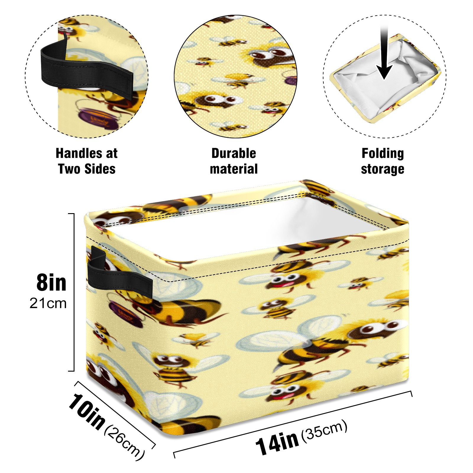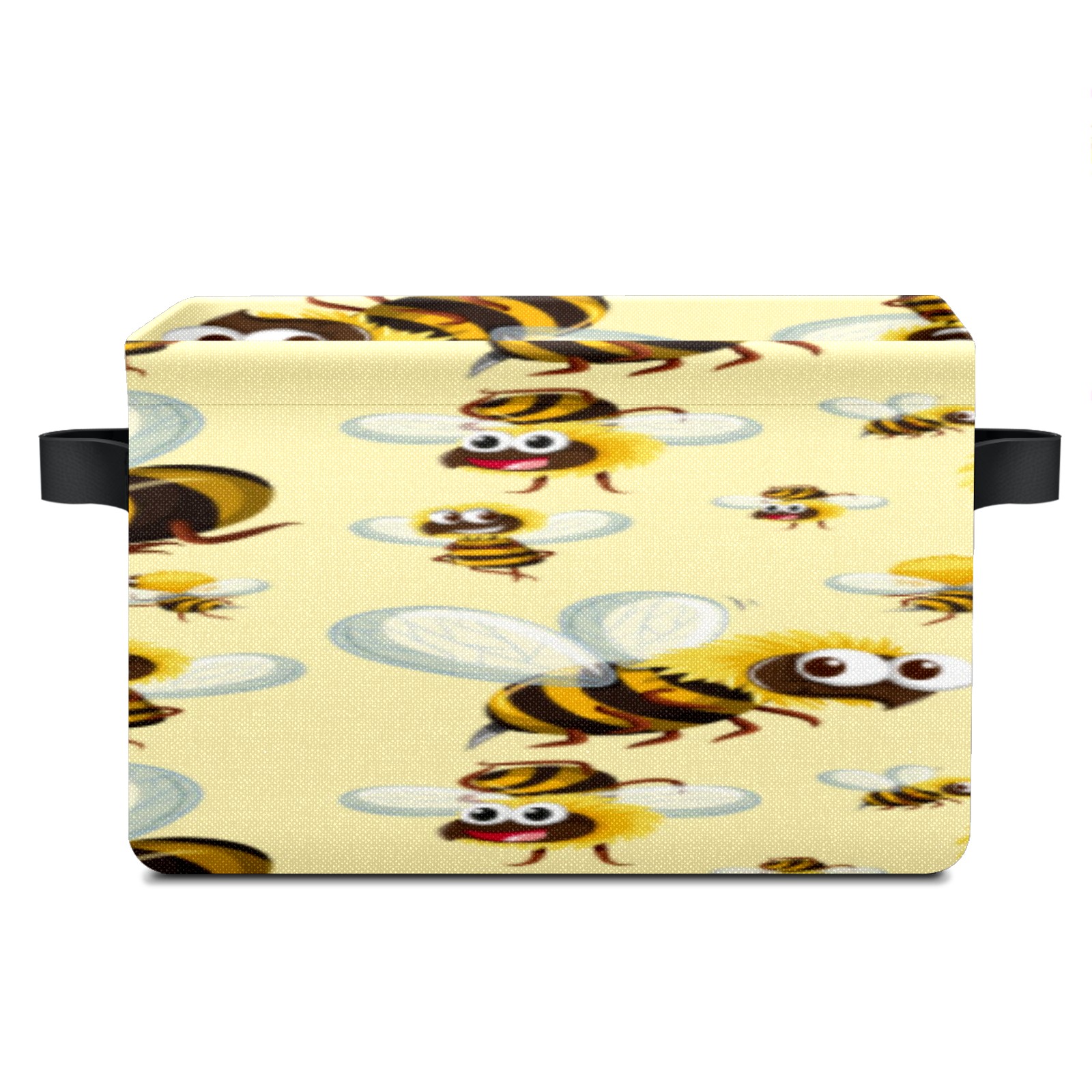 Collapsible 600D Oxford Storage Basket with Busy Funny Big Head Yellow Bees - Metal Frame 10"x14"x8" Reinforced Handles, Multi-Purpose Organizer