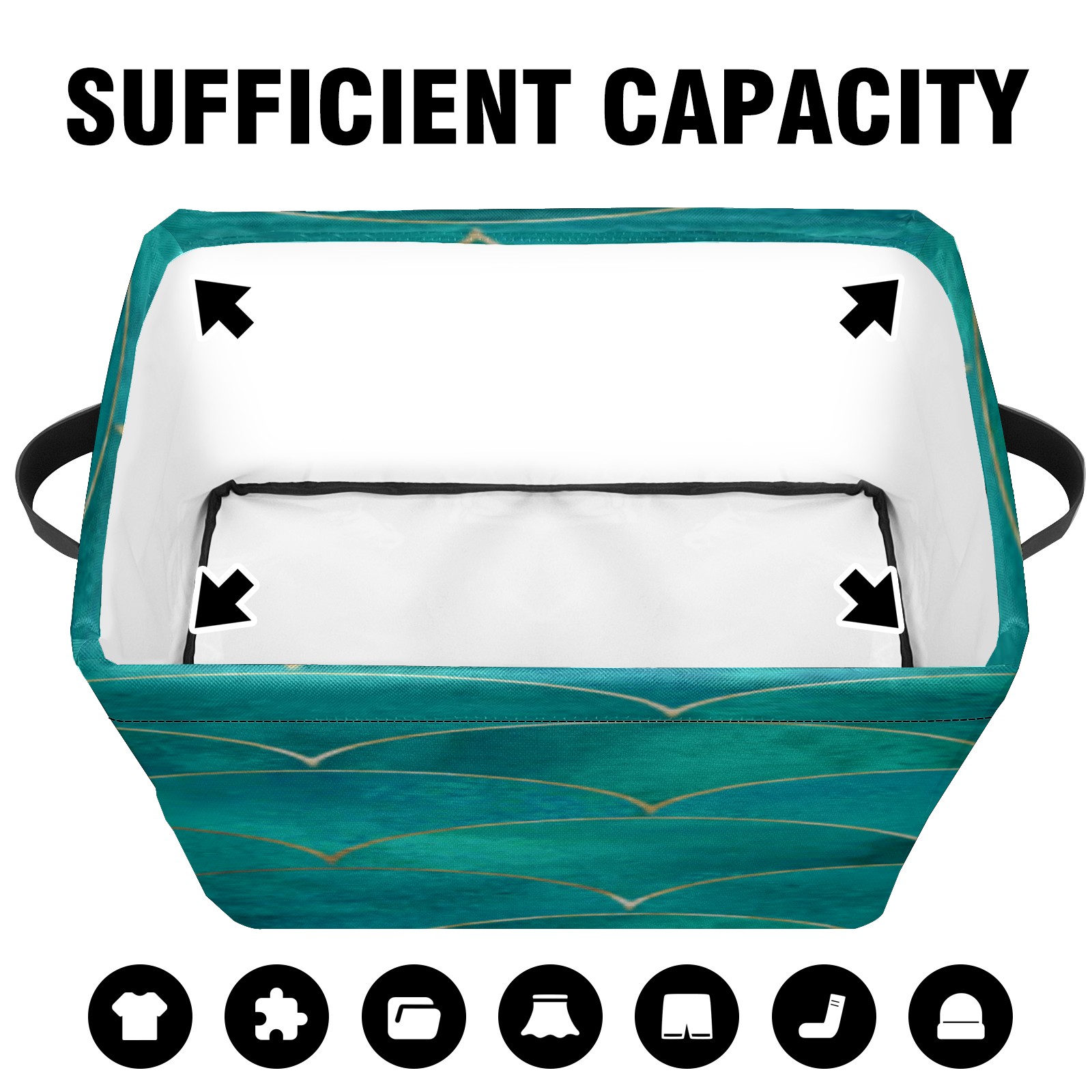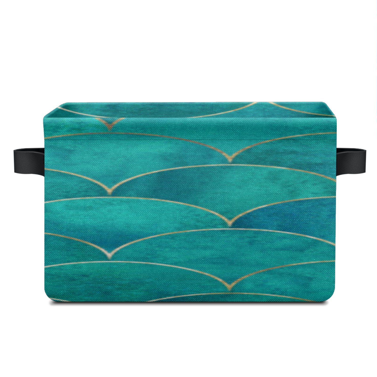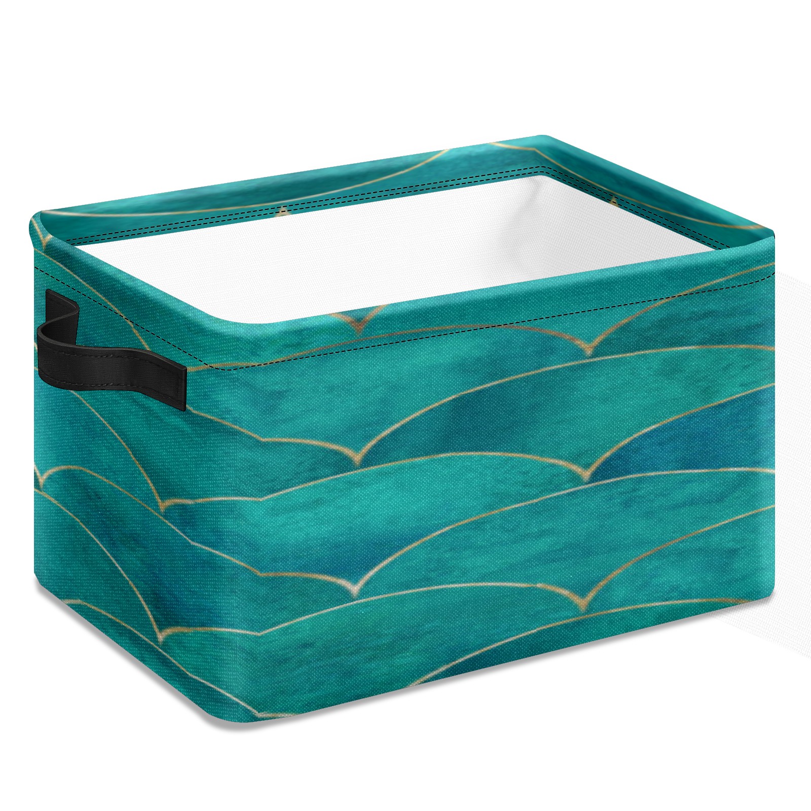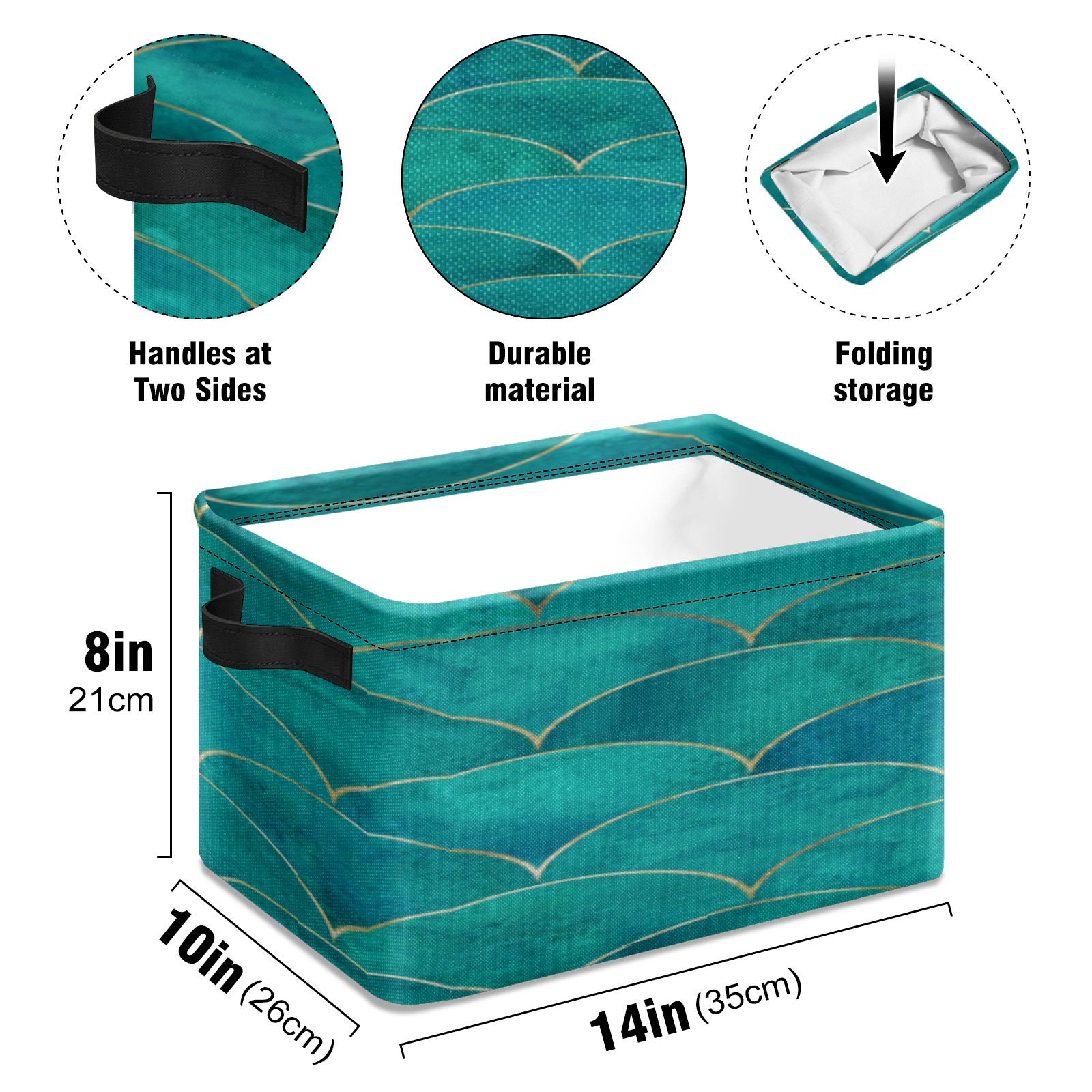 Collapsible 600D Oxford Storage Basket with Teal Turquoise Mermaid Fish Scale Wave - Metal Frame 10"x14"x8" Reinforced Handles, Multi-Purpose Organizer