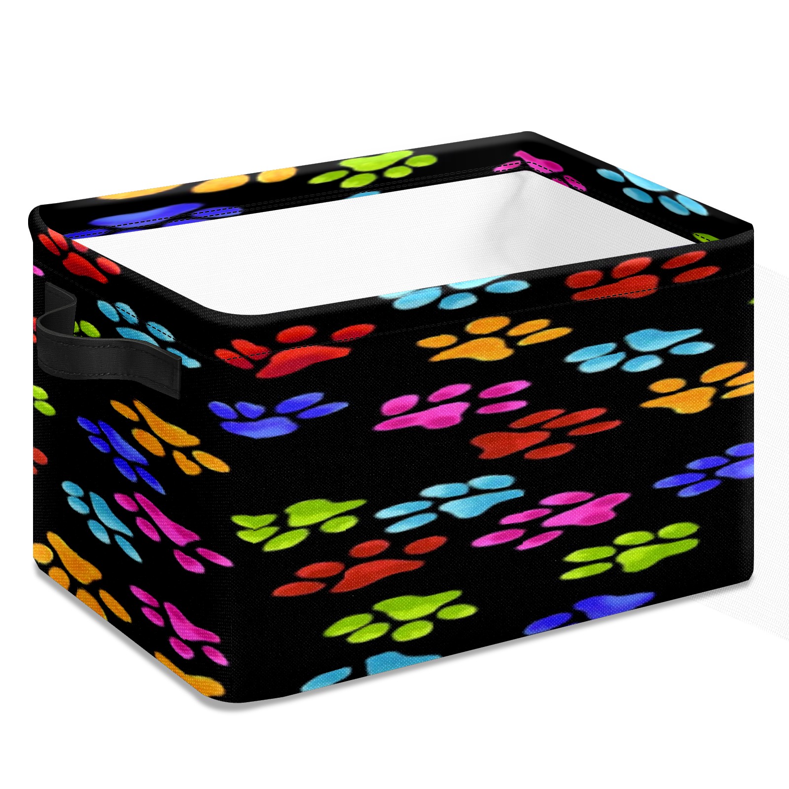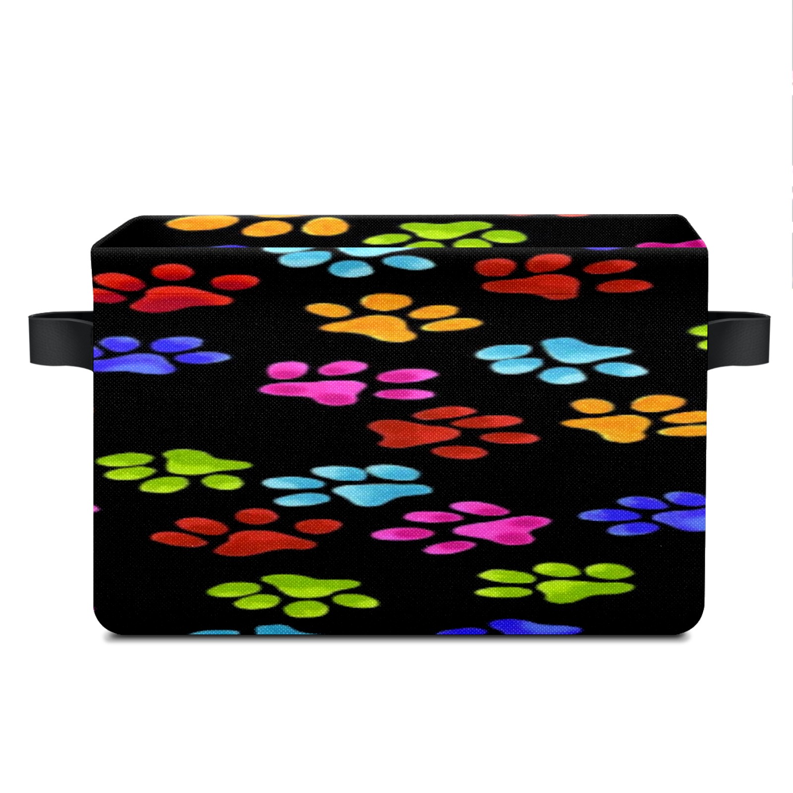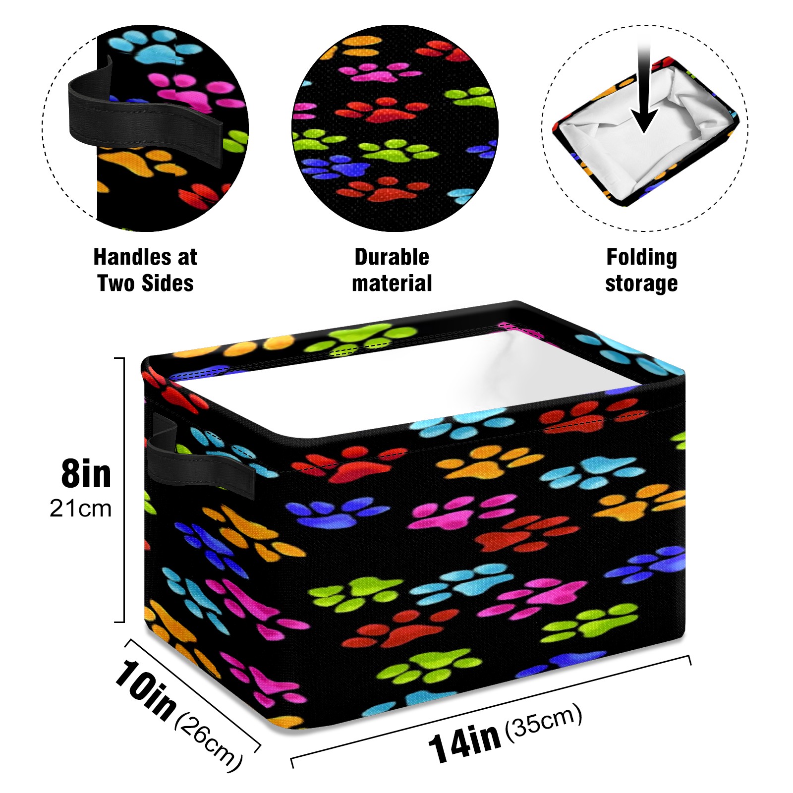 Collapsible 600D Oxford Storage Basket with Colorful Dog Footprints - Metal Frame 10"x14"x8" Reinforced Handles, Multi-Purpose Organizer