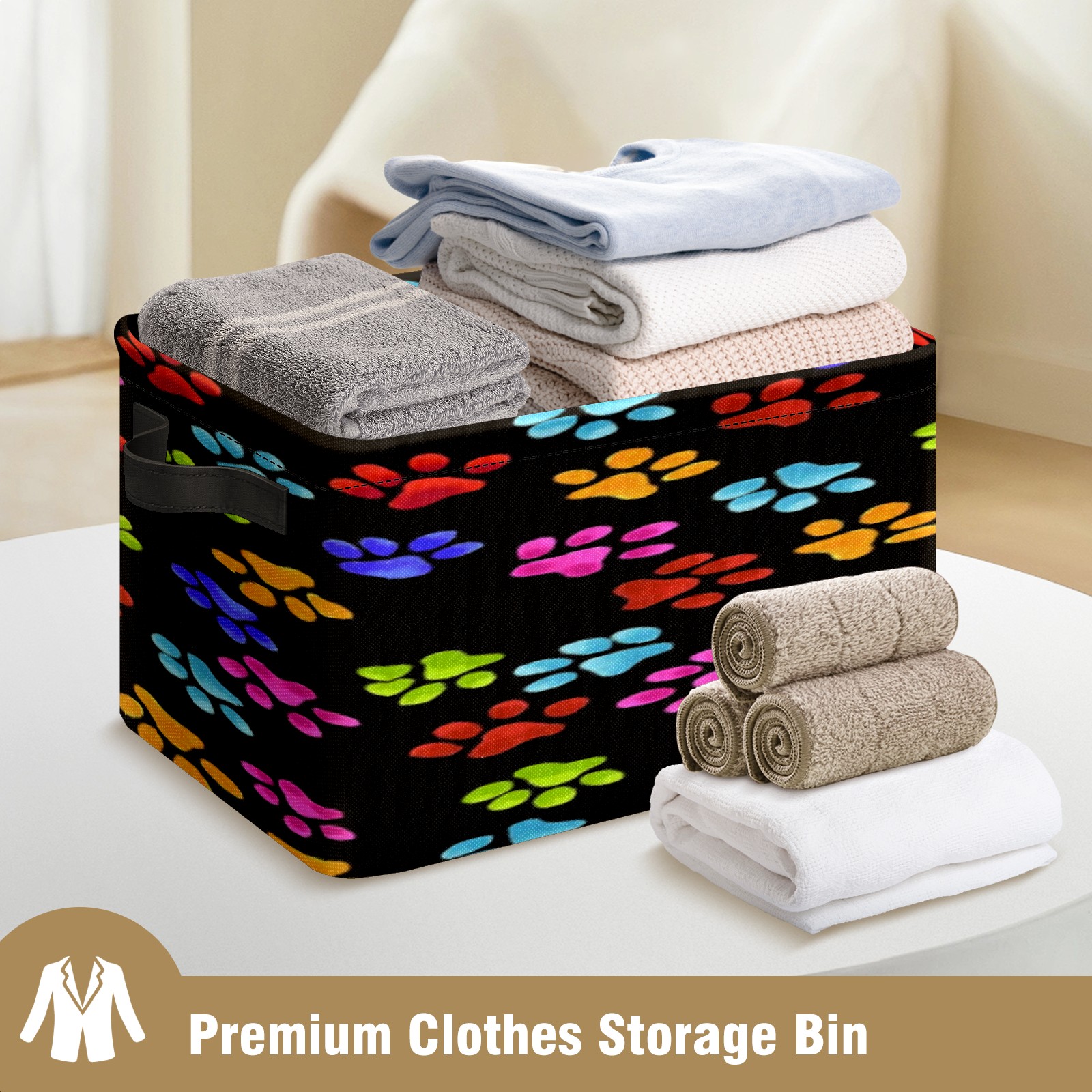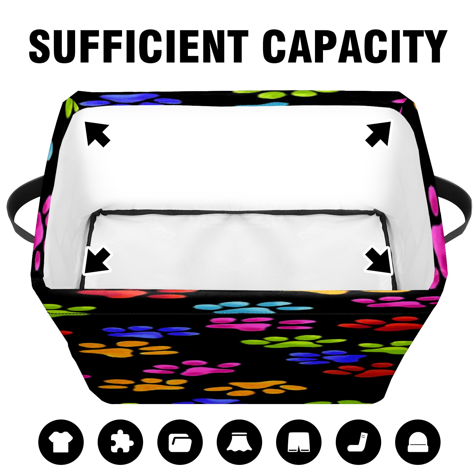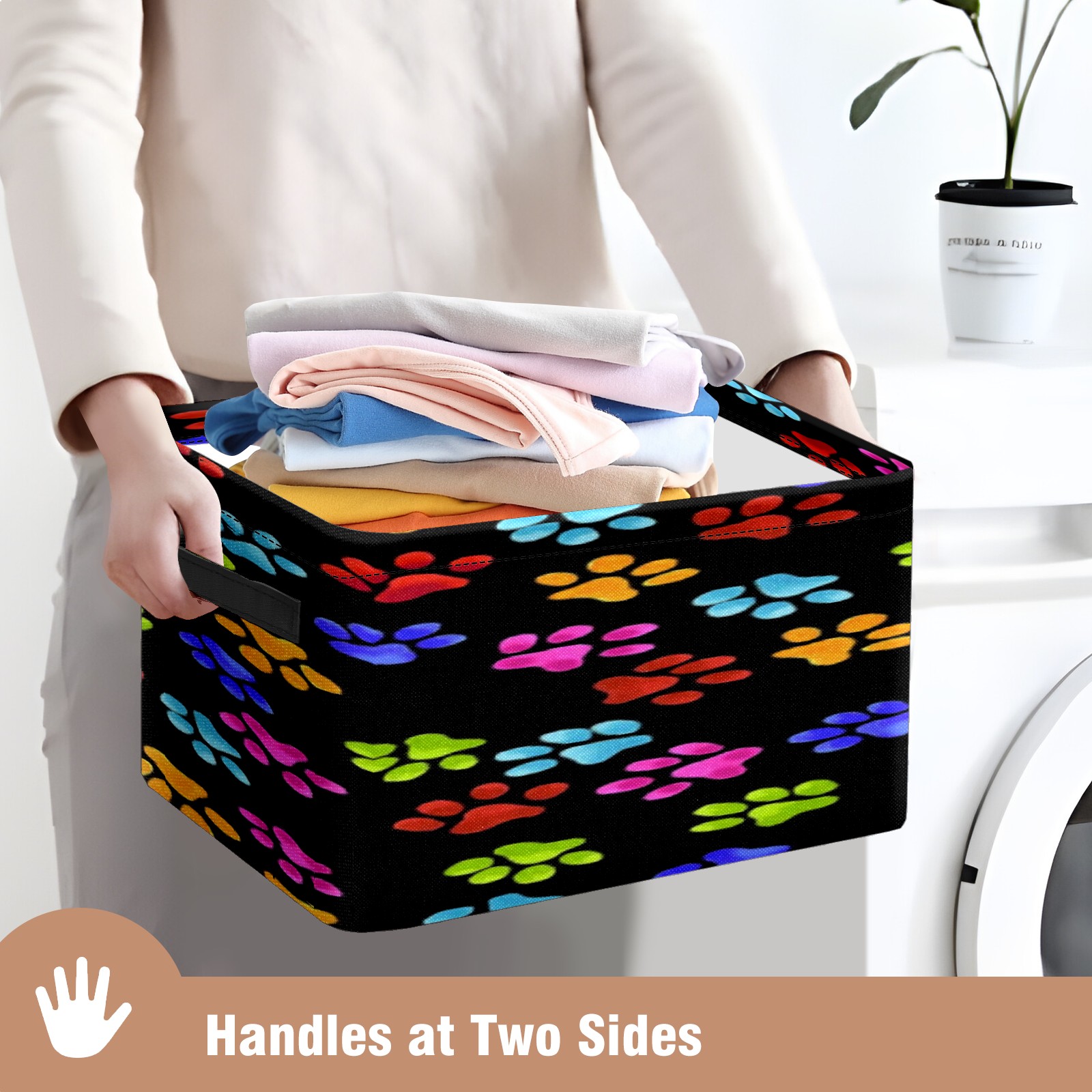 Collapsible 600D Oxford Storage Basket with Colorful Dog Footprints - Metal Frame 10"x14"x8" Reinforced Handles, Multi-Purpose Organizer