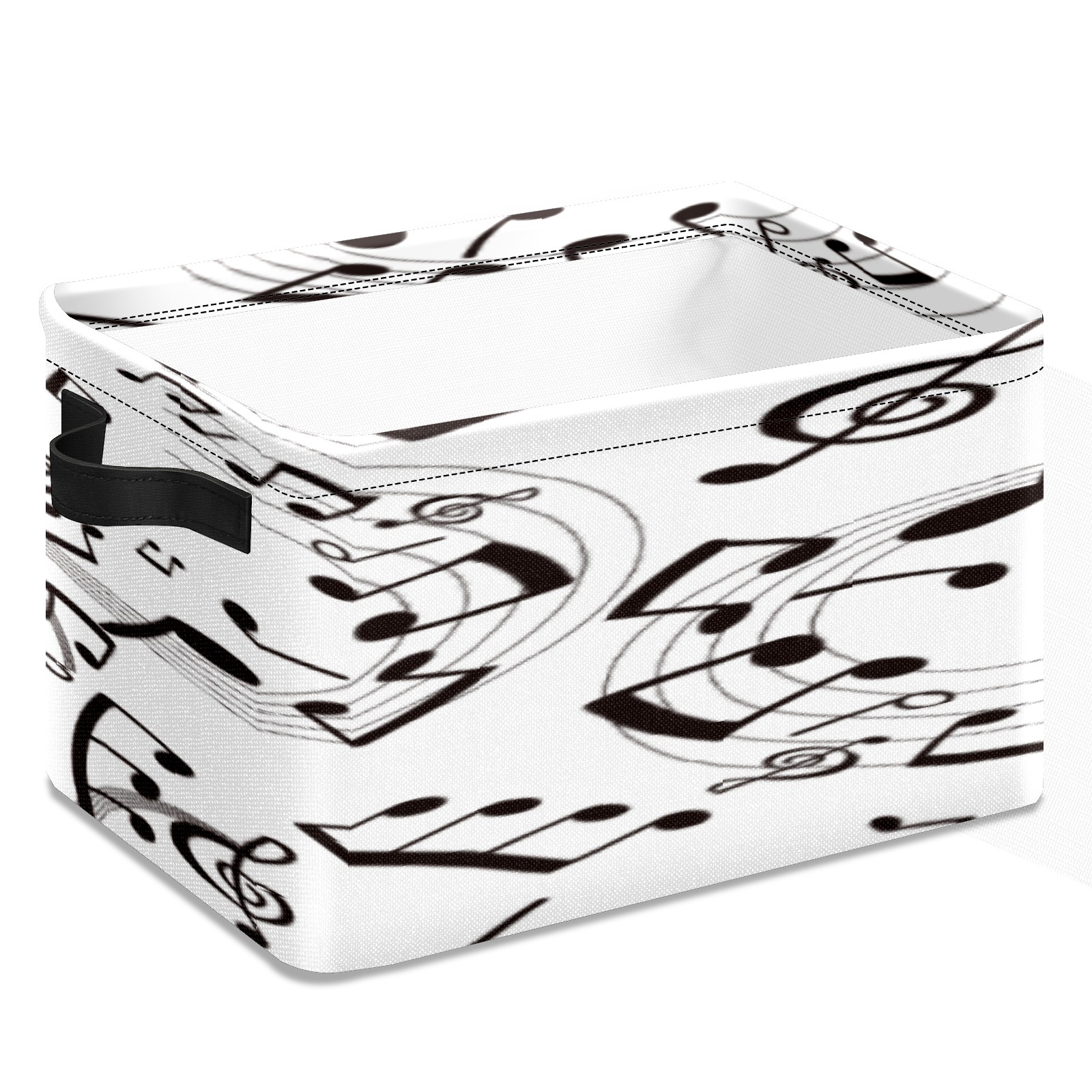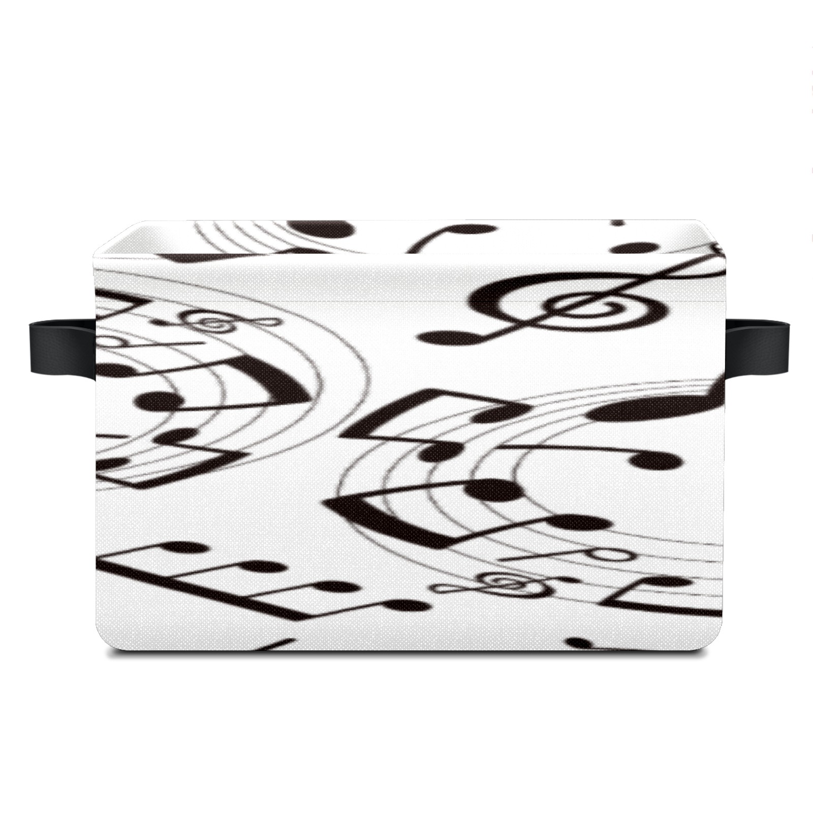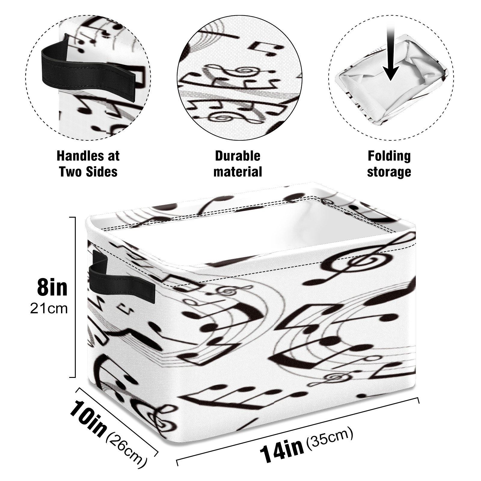 Collapsible 600D Oxford Storage Basket with Black And White Musical Note - Metal Frame 10"x14"x8" Reinforced Handles, Multi-Purpose Organizer