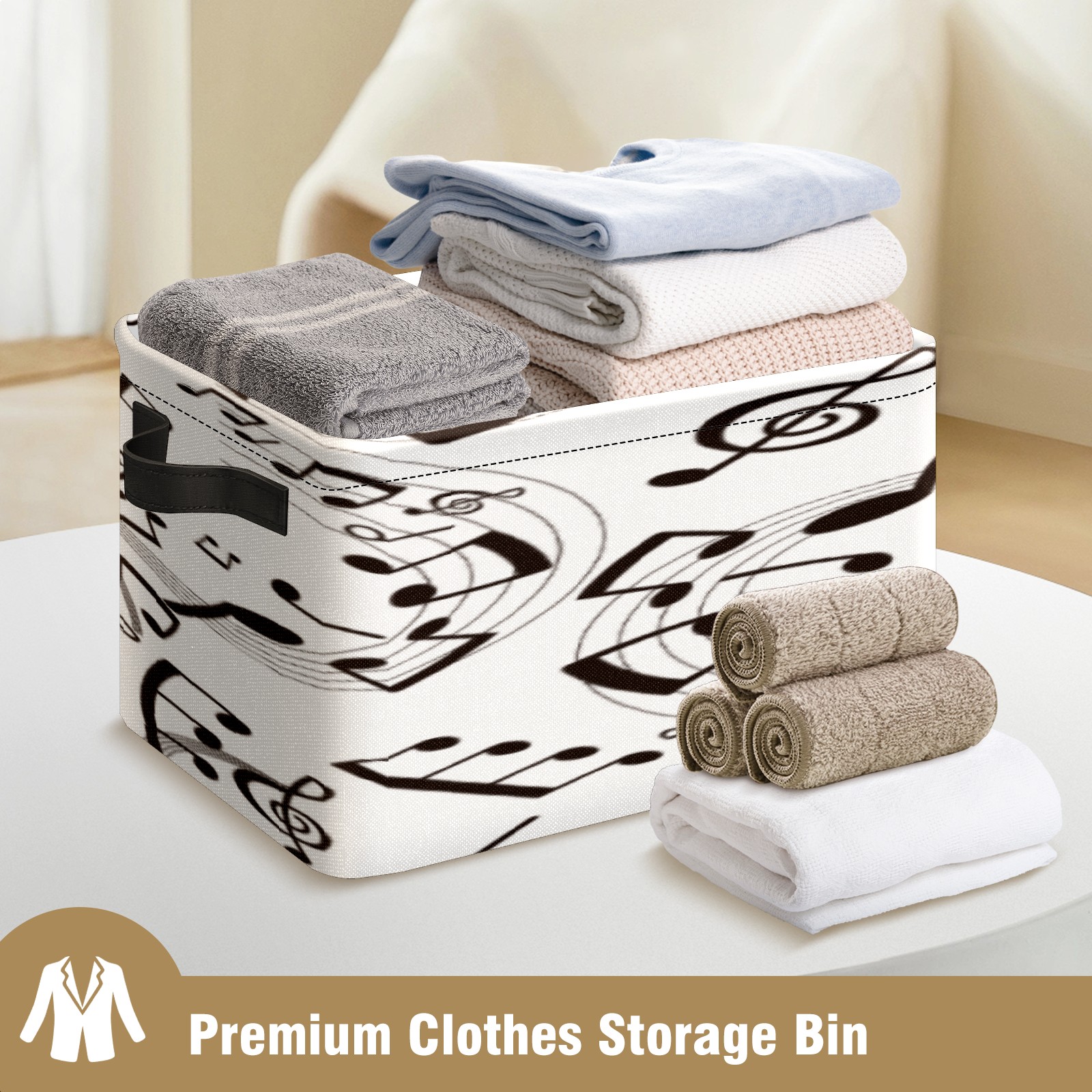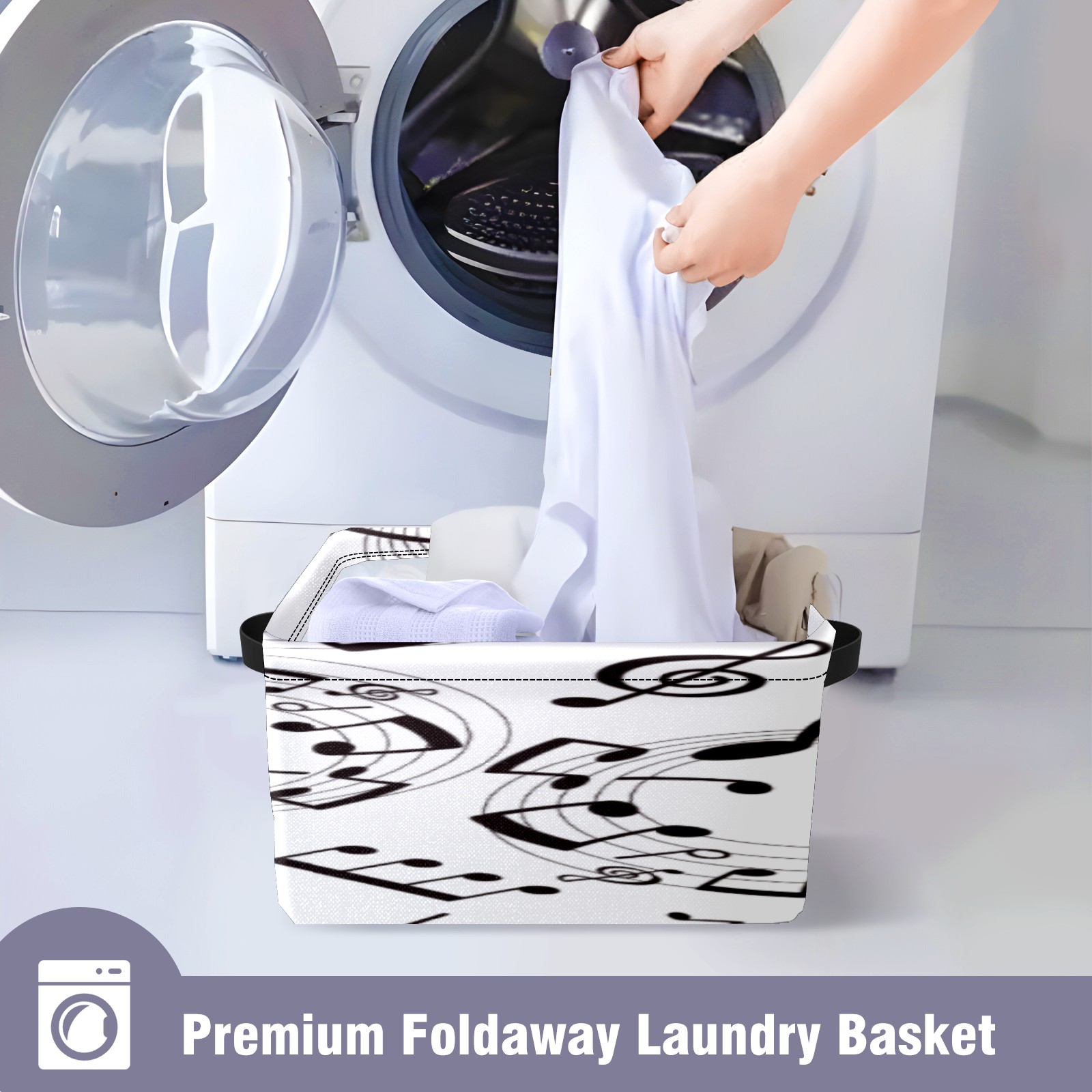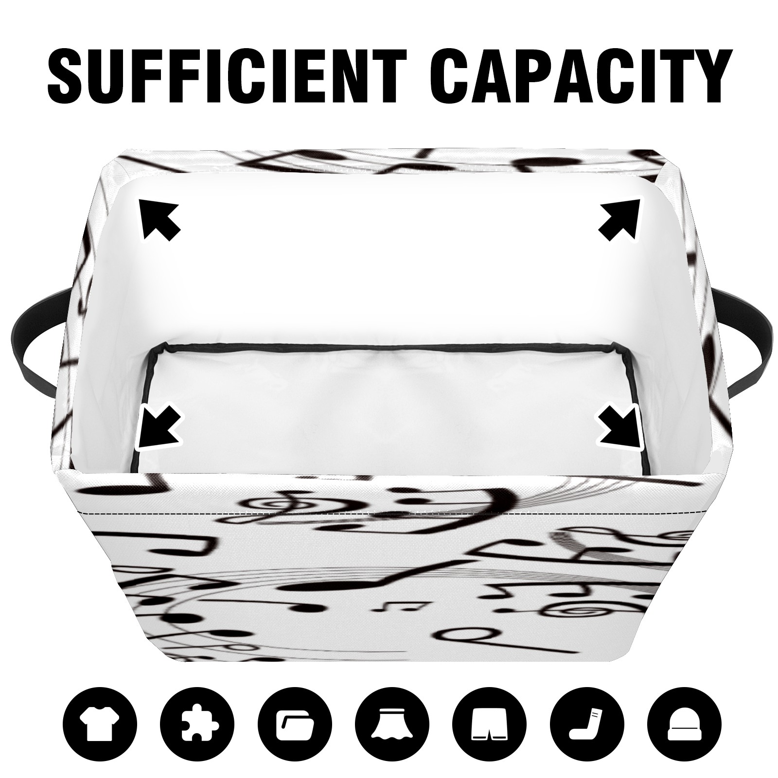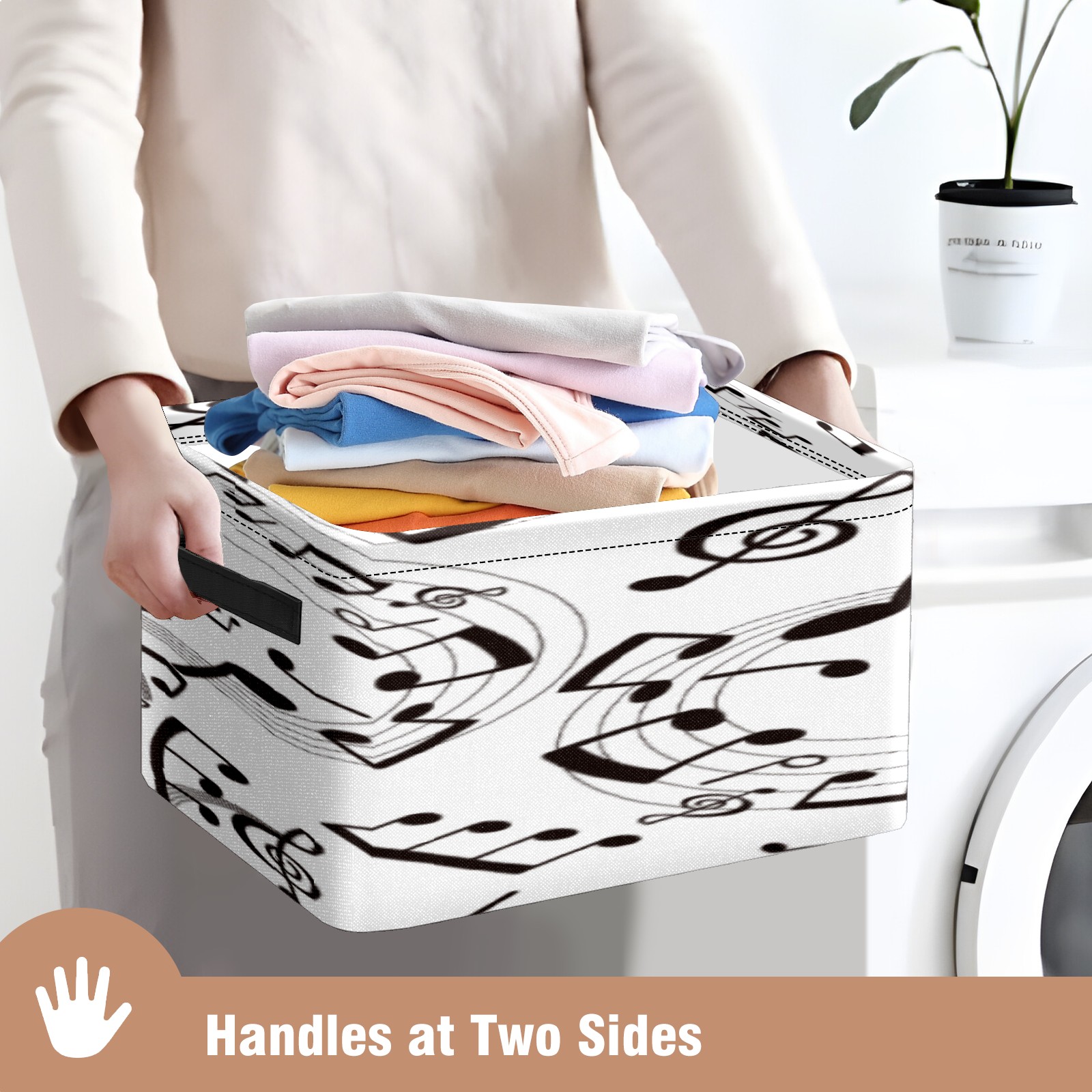 Collapsible 600D Oxford Storage Basket with Black And White Musical Note - Metal Frame 10"x14"x8" Reinforced Handles, Multi-Purpose Organizer