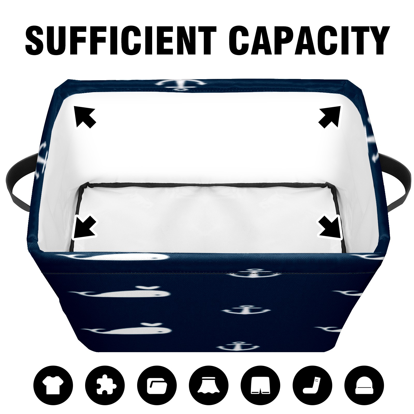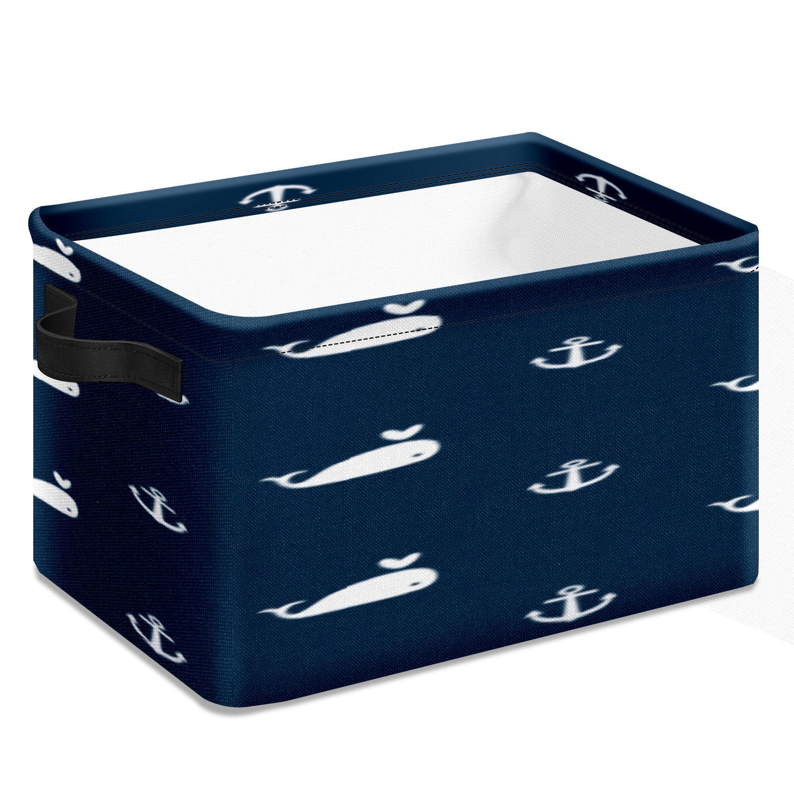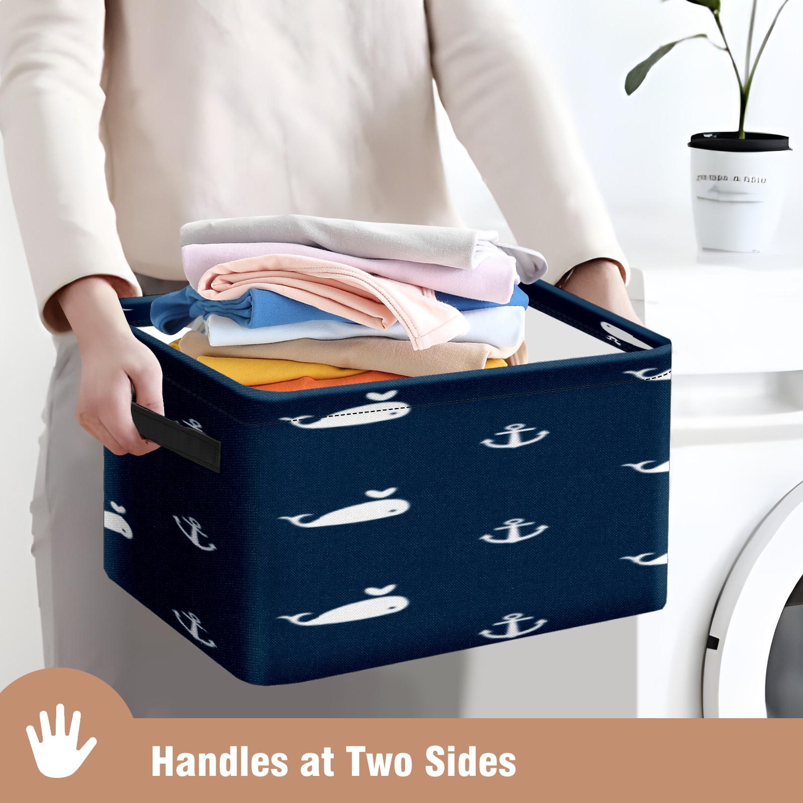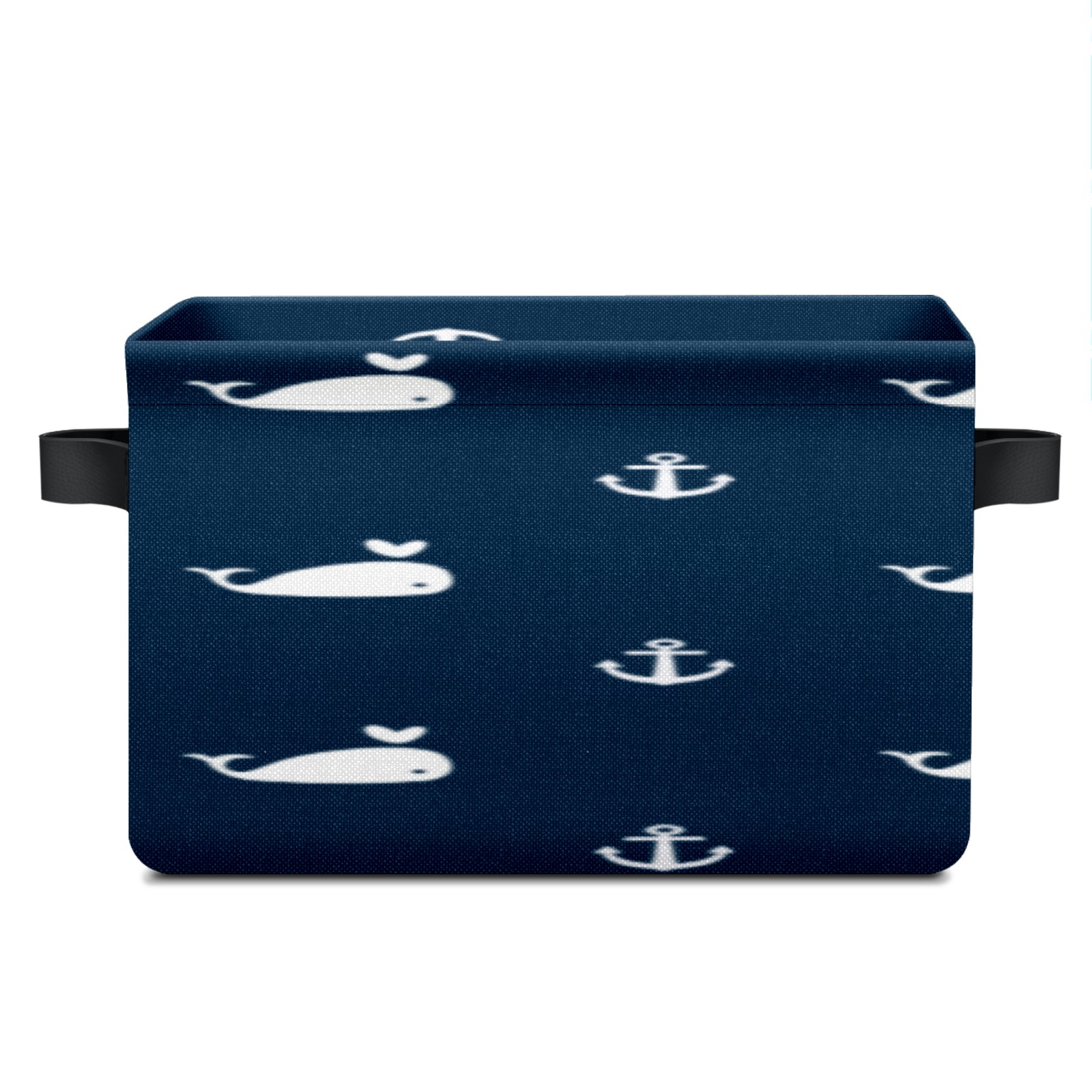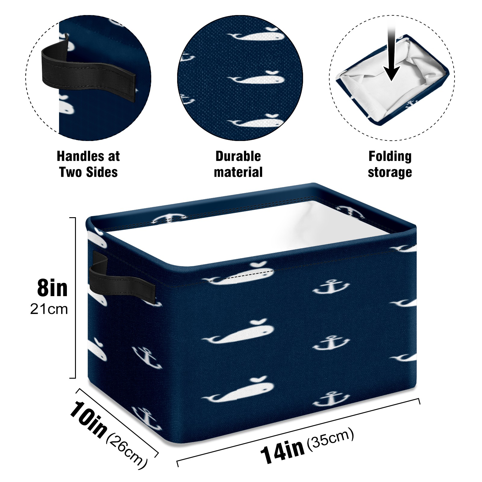 Collapsible 600D Oxford Storage Basket with Whale - Metal Frame 10"x14"x8" Reinforced Handles, Multi-Purpose Organizer