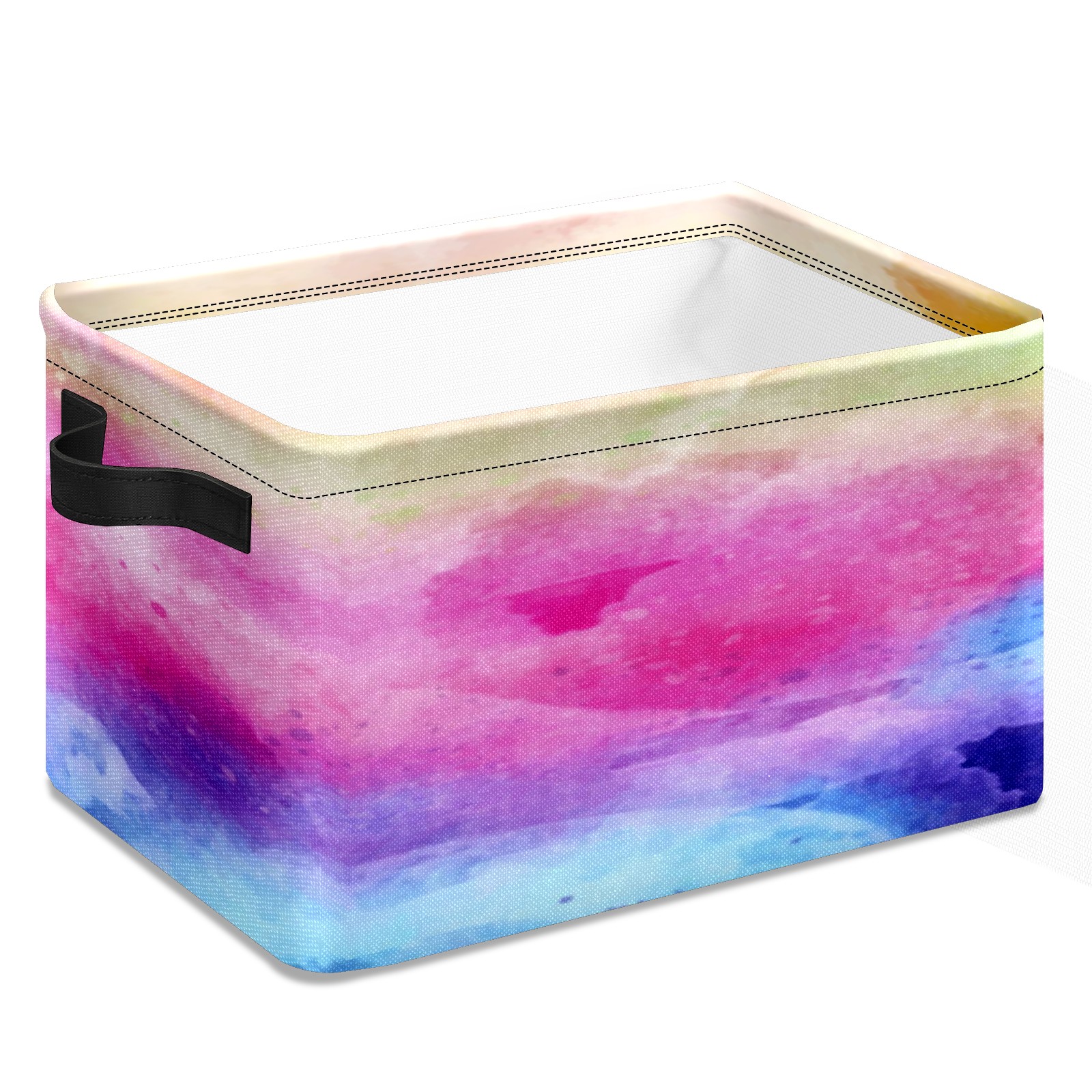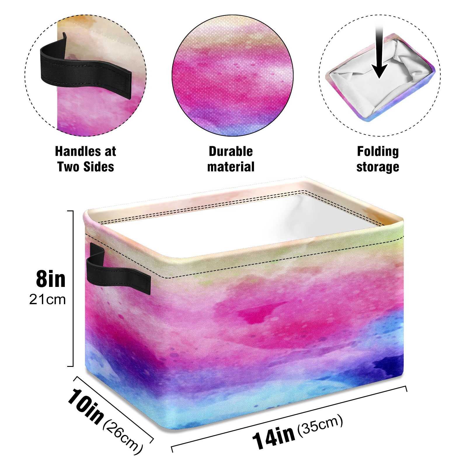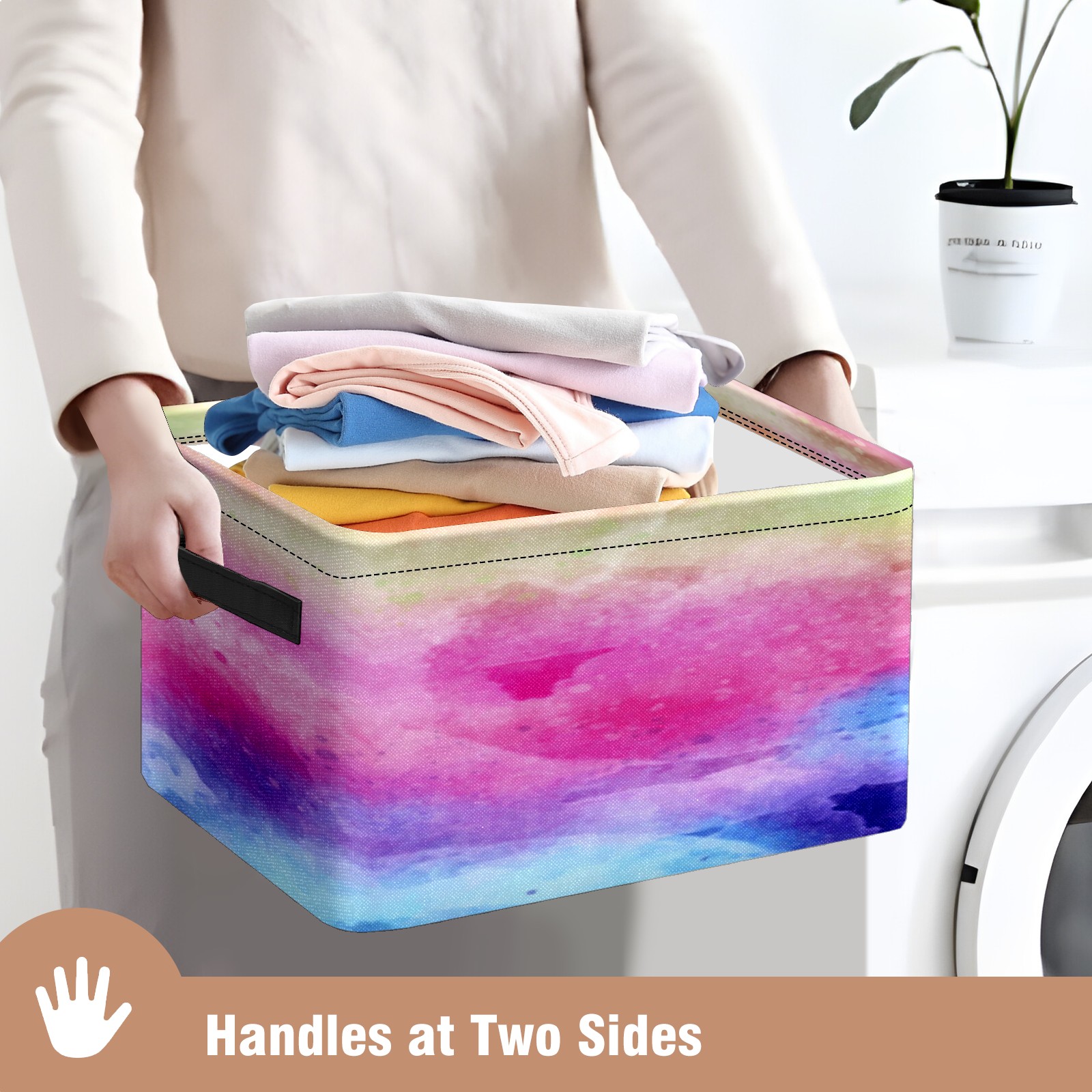 Collapsible 600D Oxford Storage Basket with Tie Dye Style - Metal Frame 10"x14"x8" Reinforced Handles, Multi-Purpose Organizer