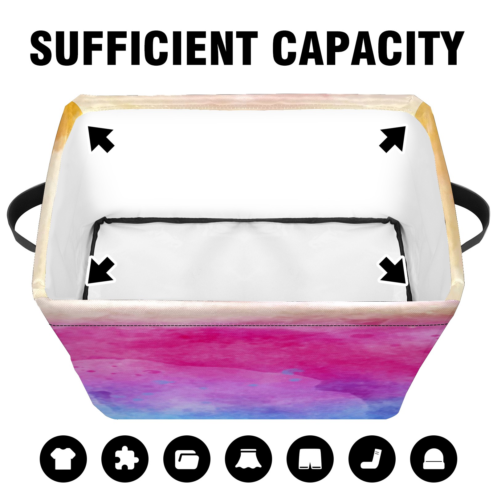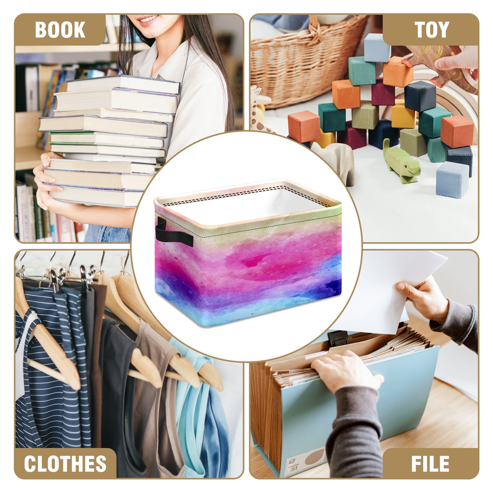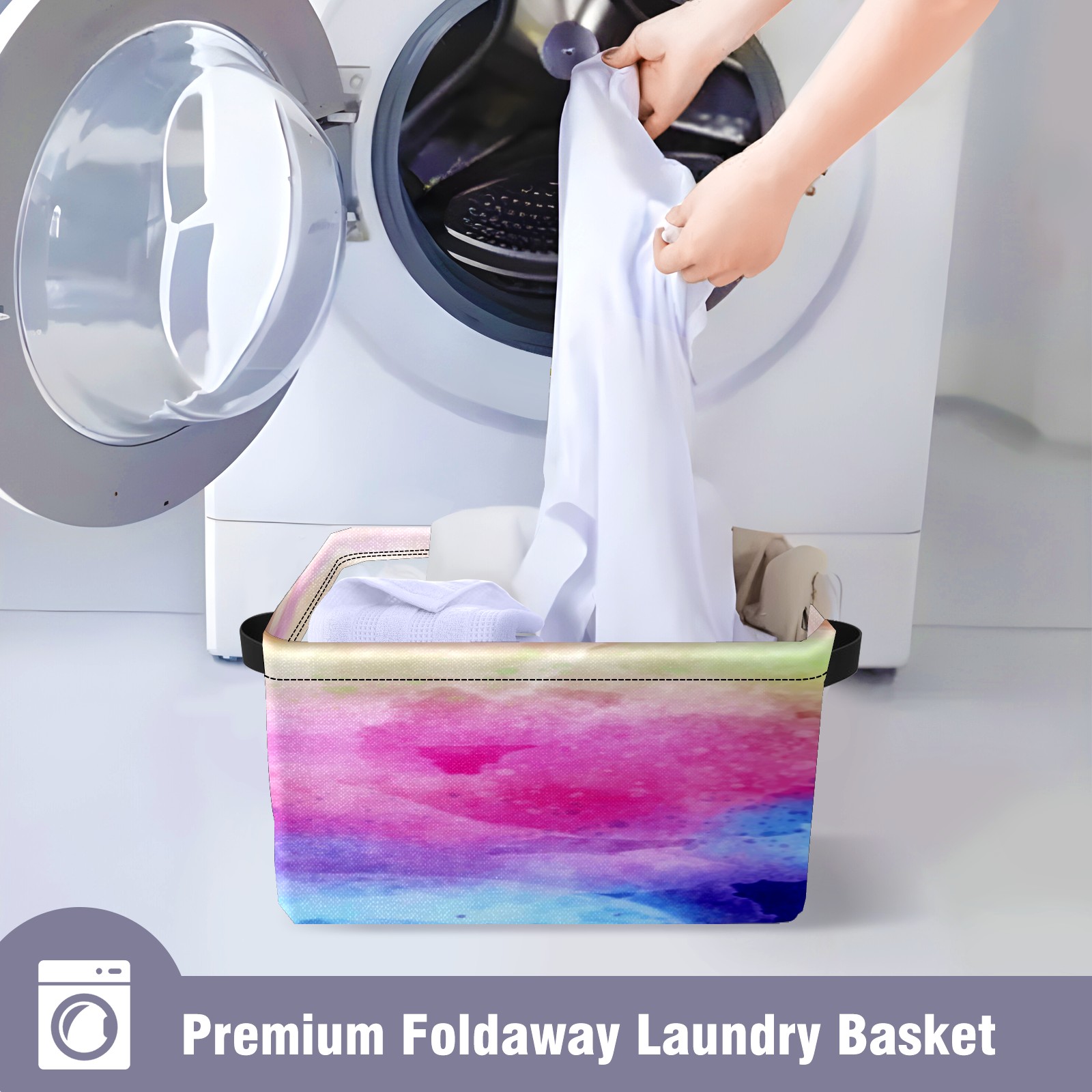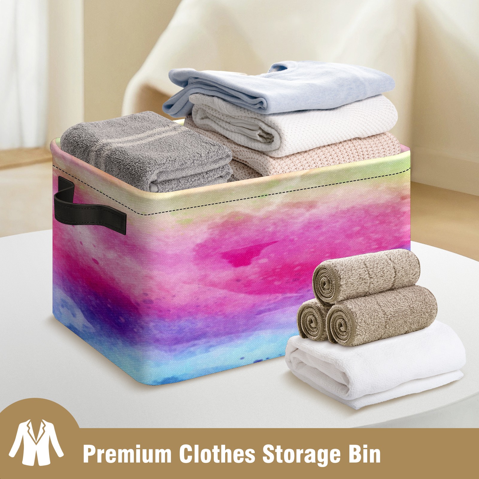 Collapsible 600D Oxford Storage Basket with Tie Dye Style - Metal Frame 10"x14"x8" Reinforced Handles, Multi-Purpose Organizer