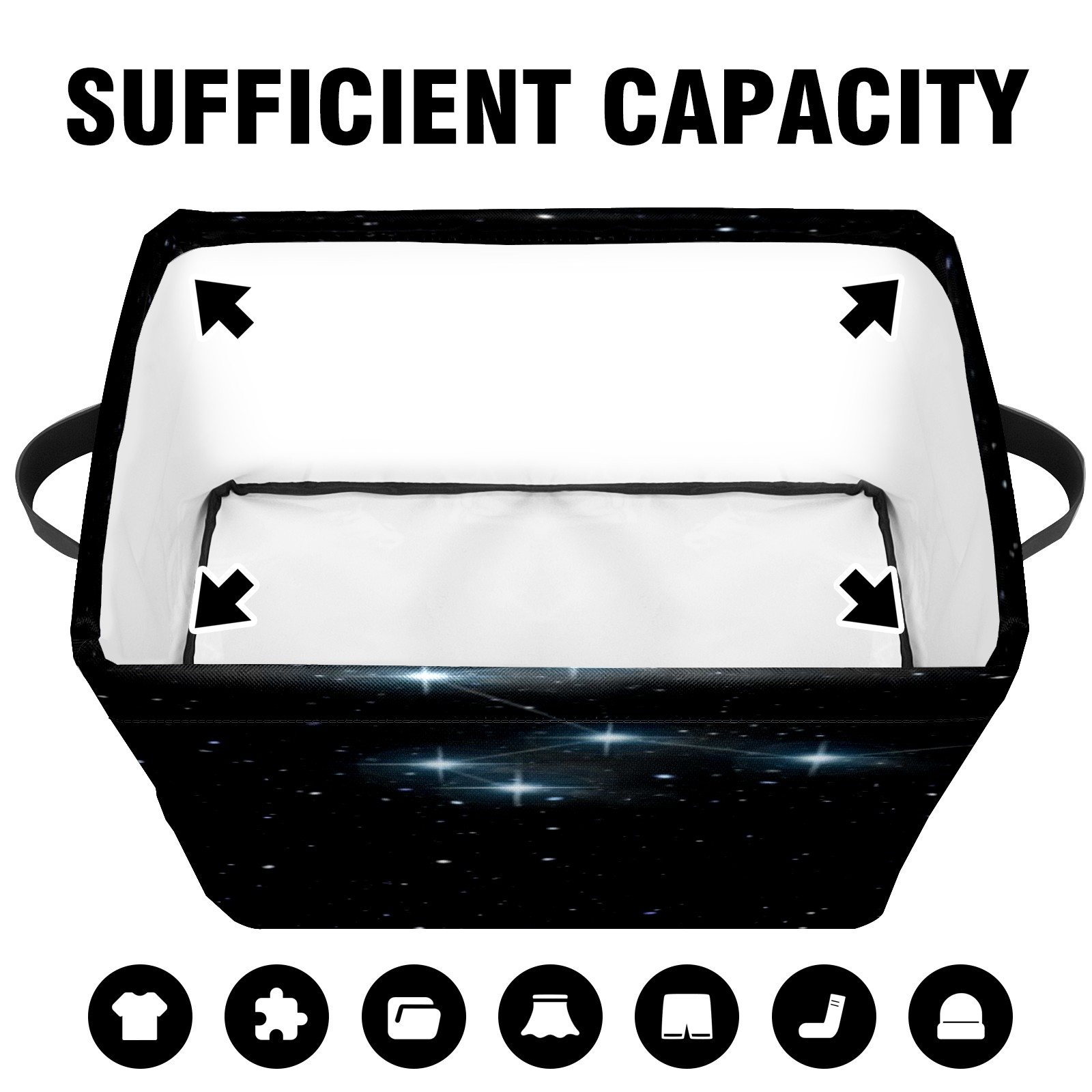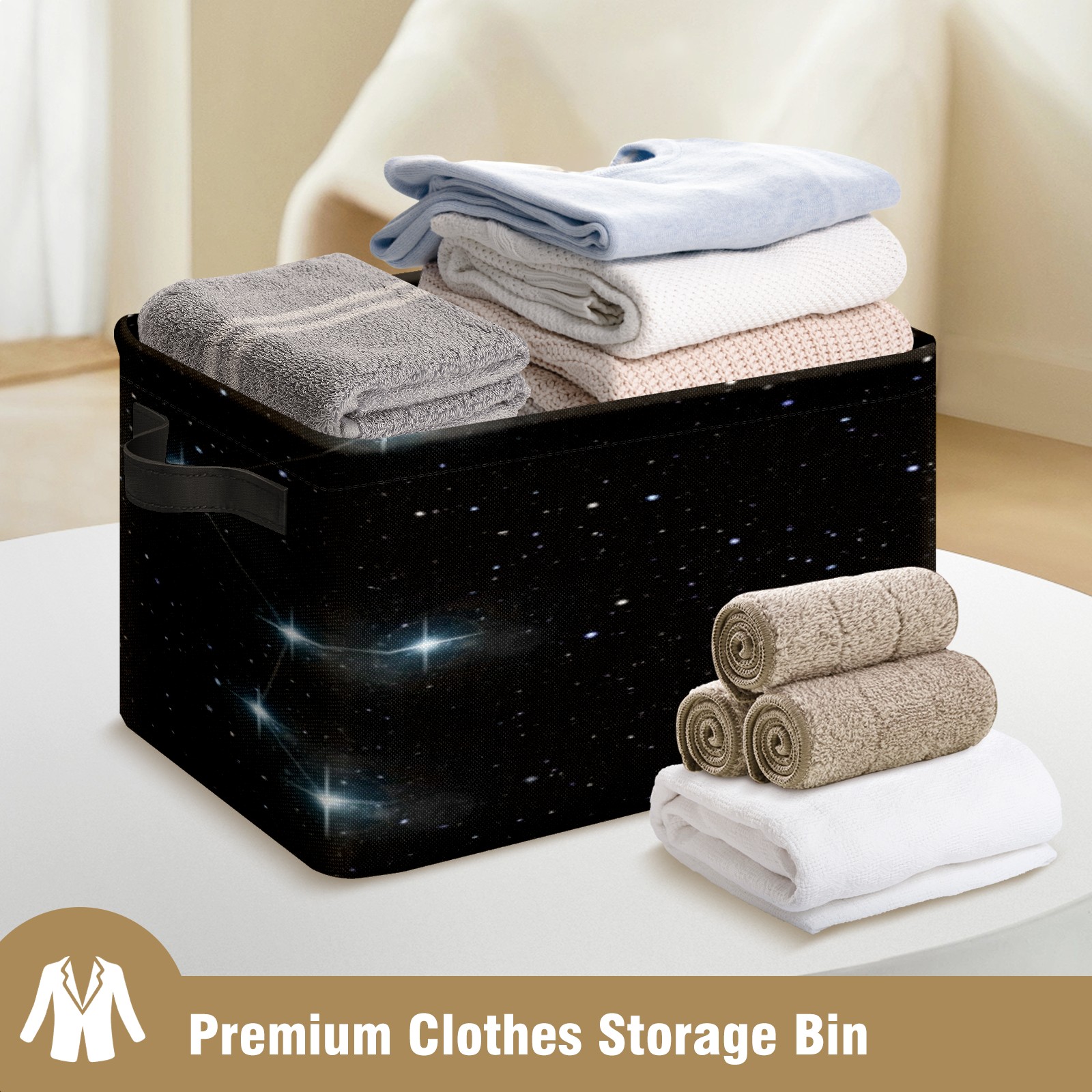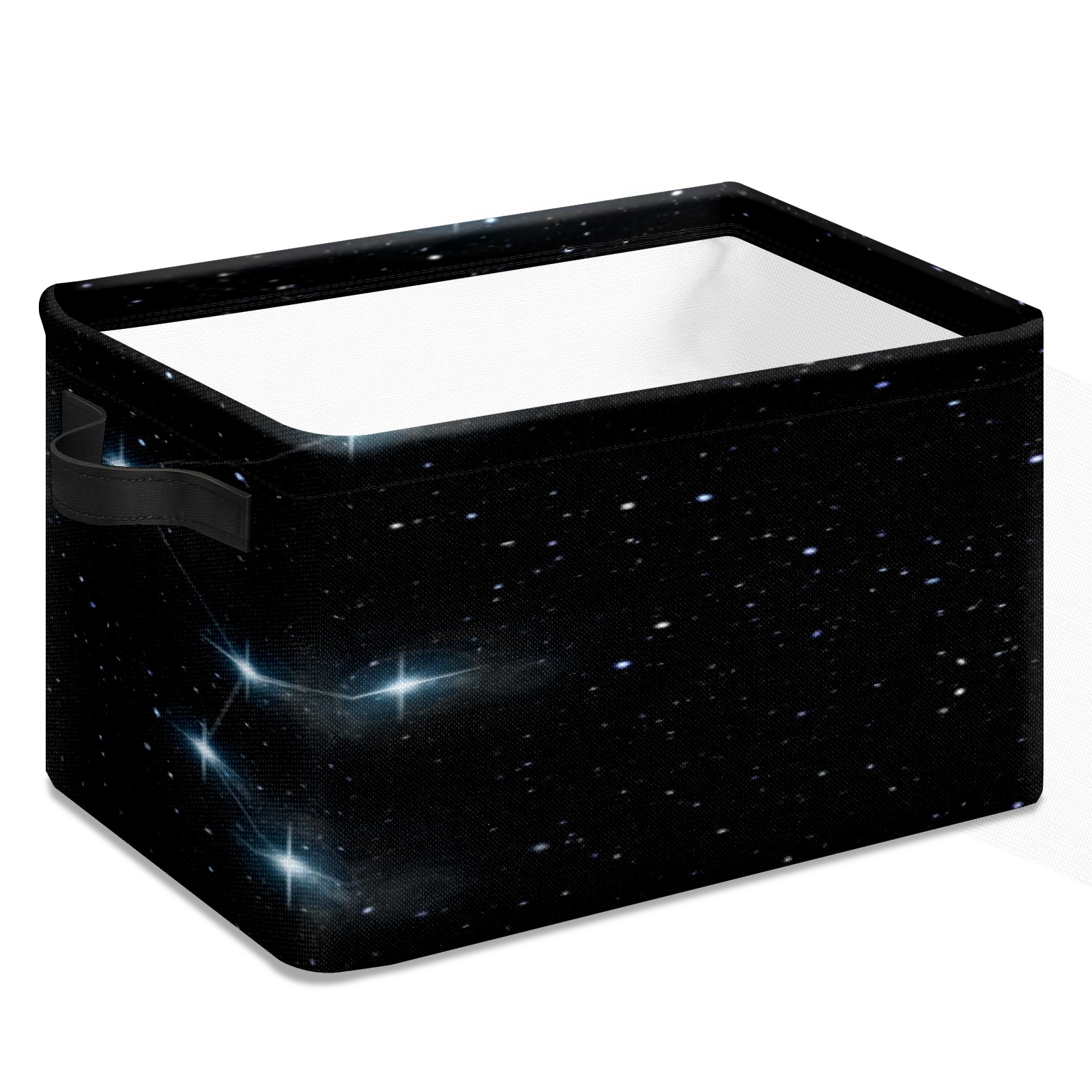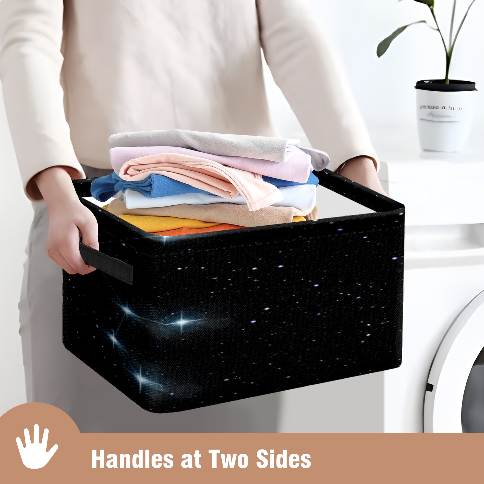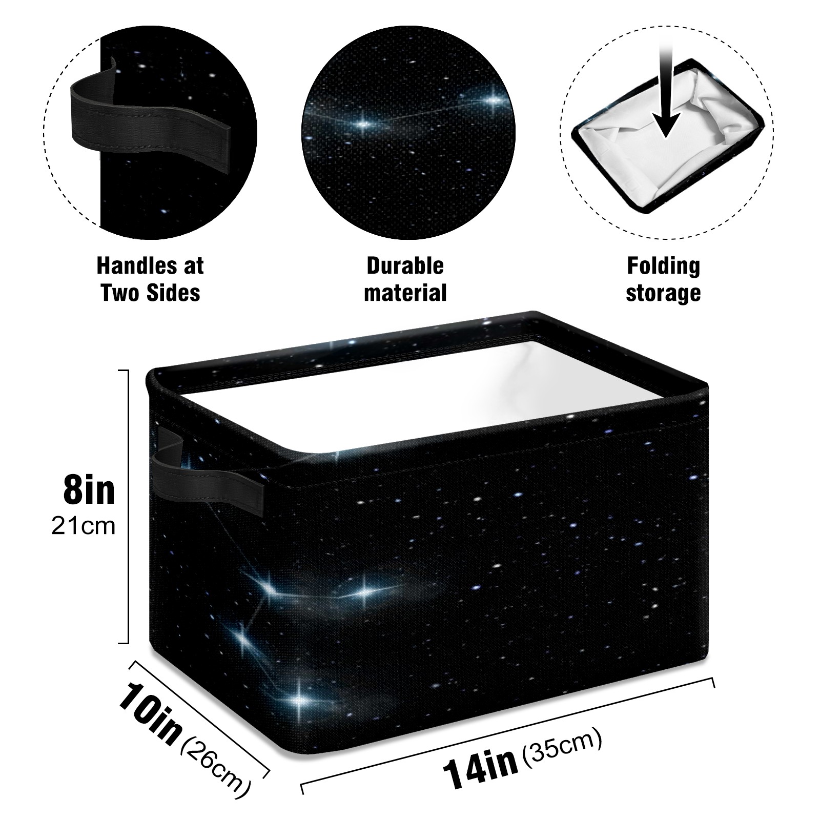 Collapsible 600D Oxford Storage Basket with Galaxy Universe Constellation Starry Sky - Metal Frame 10"x14"x8" Reinforced Handles, Multi-Purpose Organizer