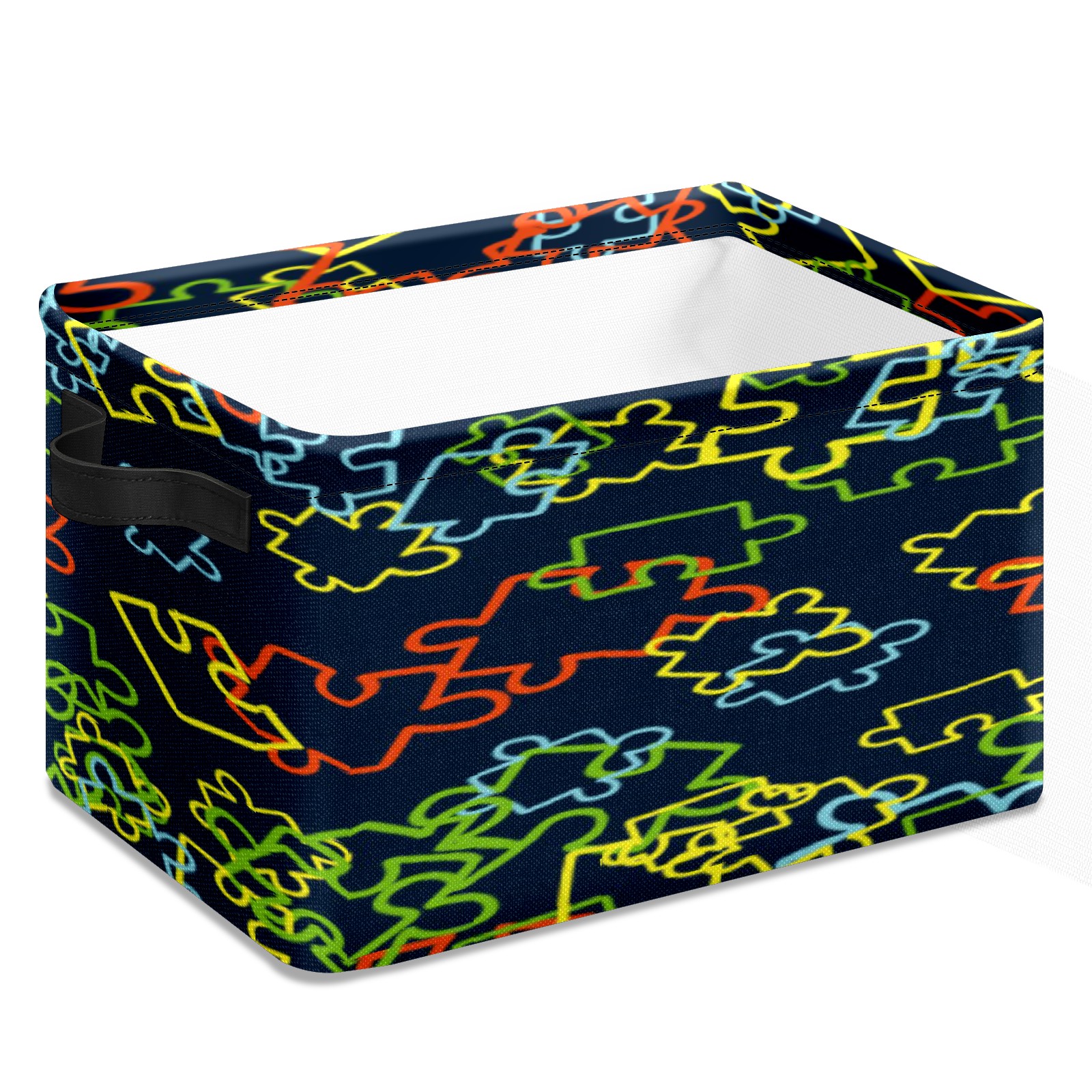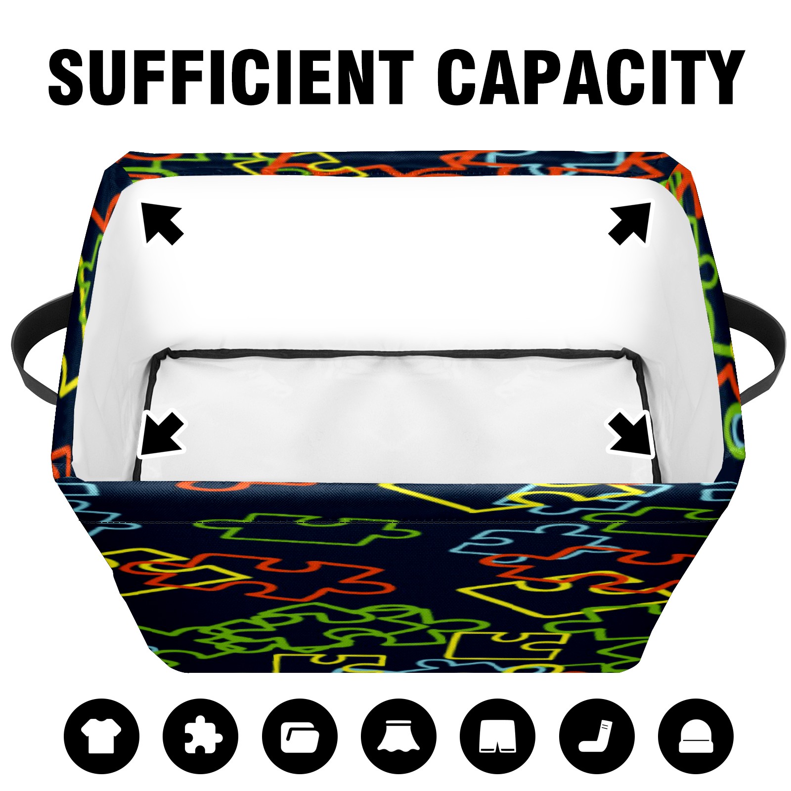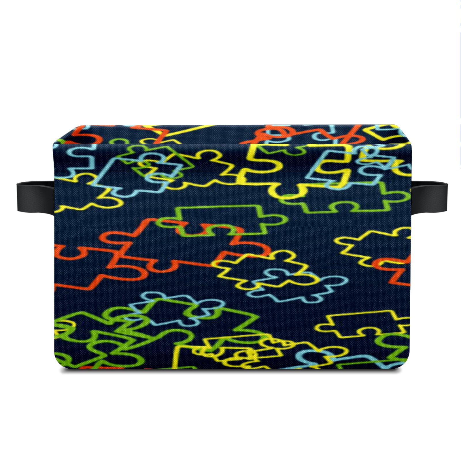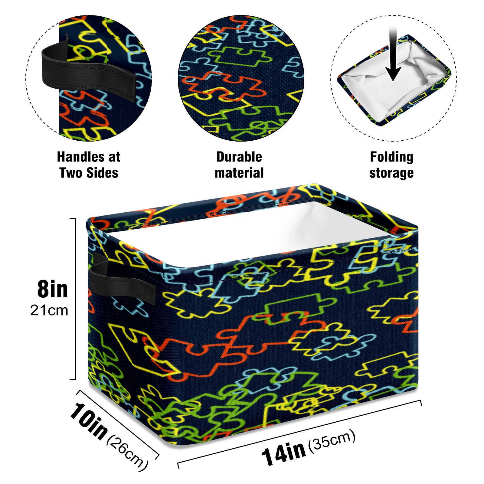 Collapsible 600D Oxford Storage Basket with Autism Day Poster - Metal Frame 10"x14"x8" Reinforced Handles, Multi-Purpose Organizer
